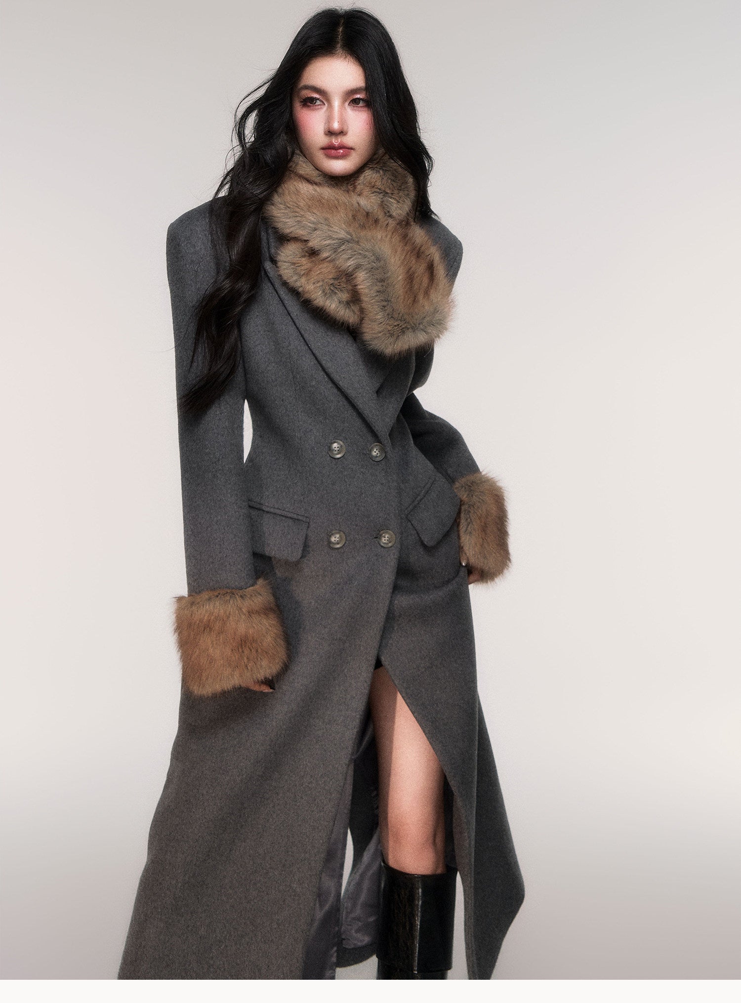・Material: 70% wool, 30% polyester / (Lining) rayon / (fur) 100% polyester