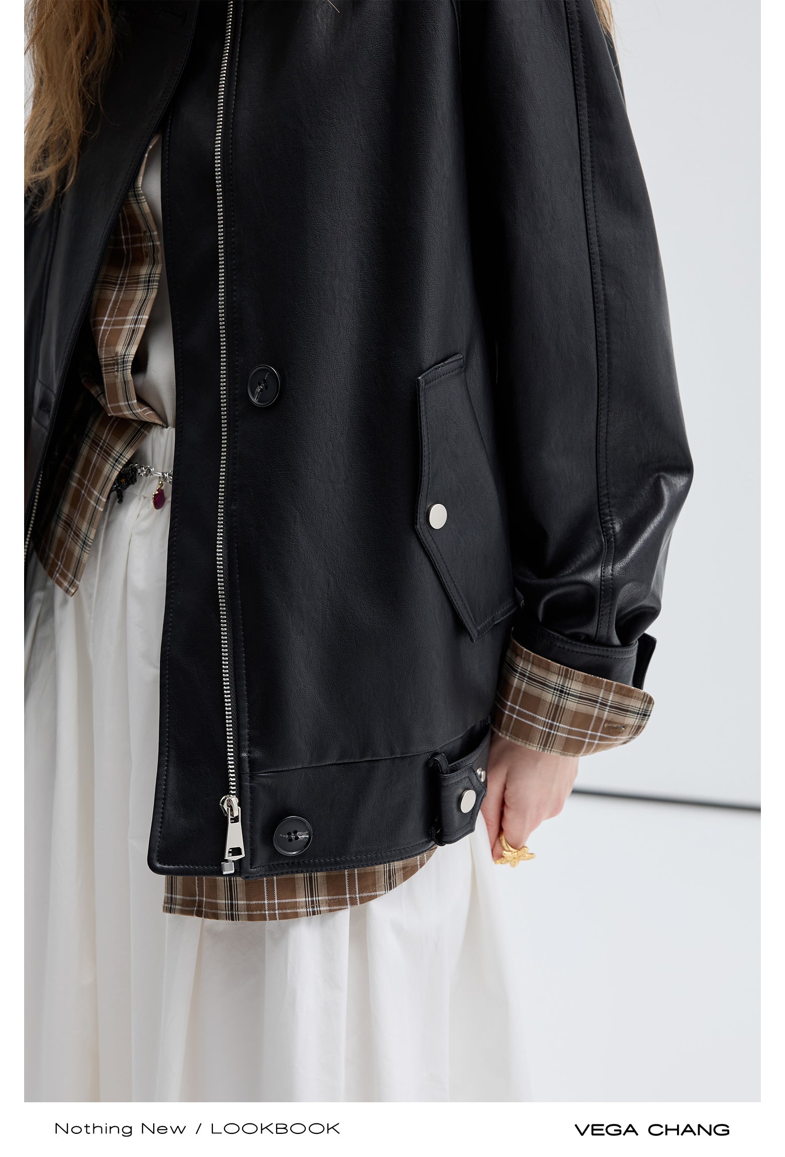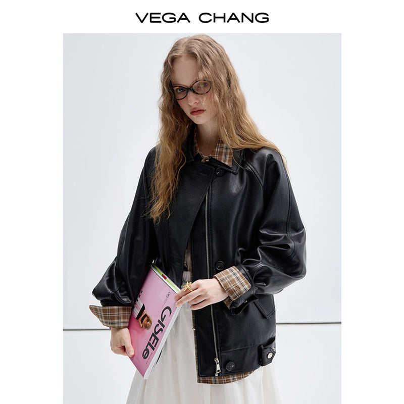 Double Closure Faux Leather Motorcycle Jacket