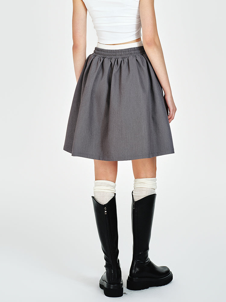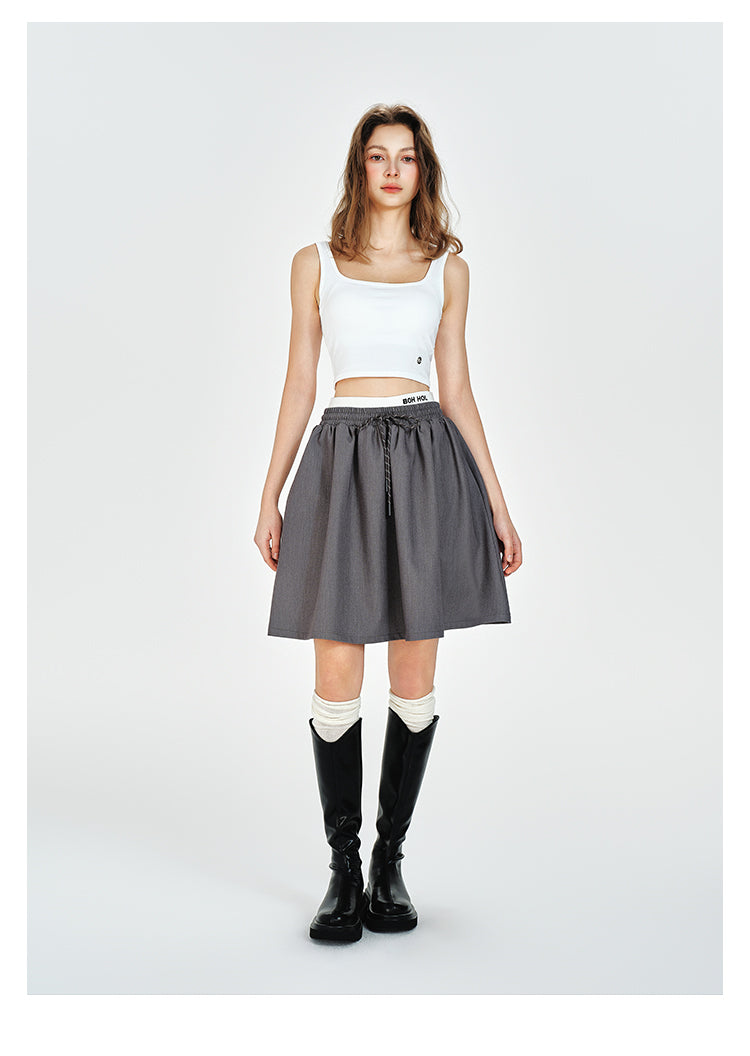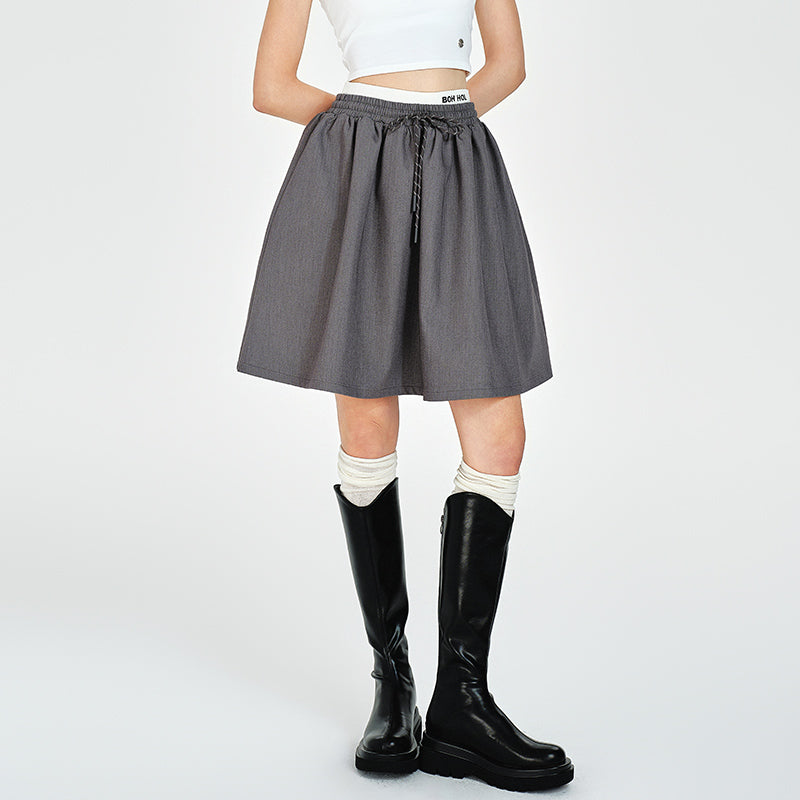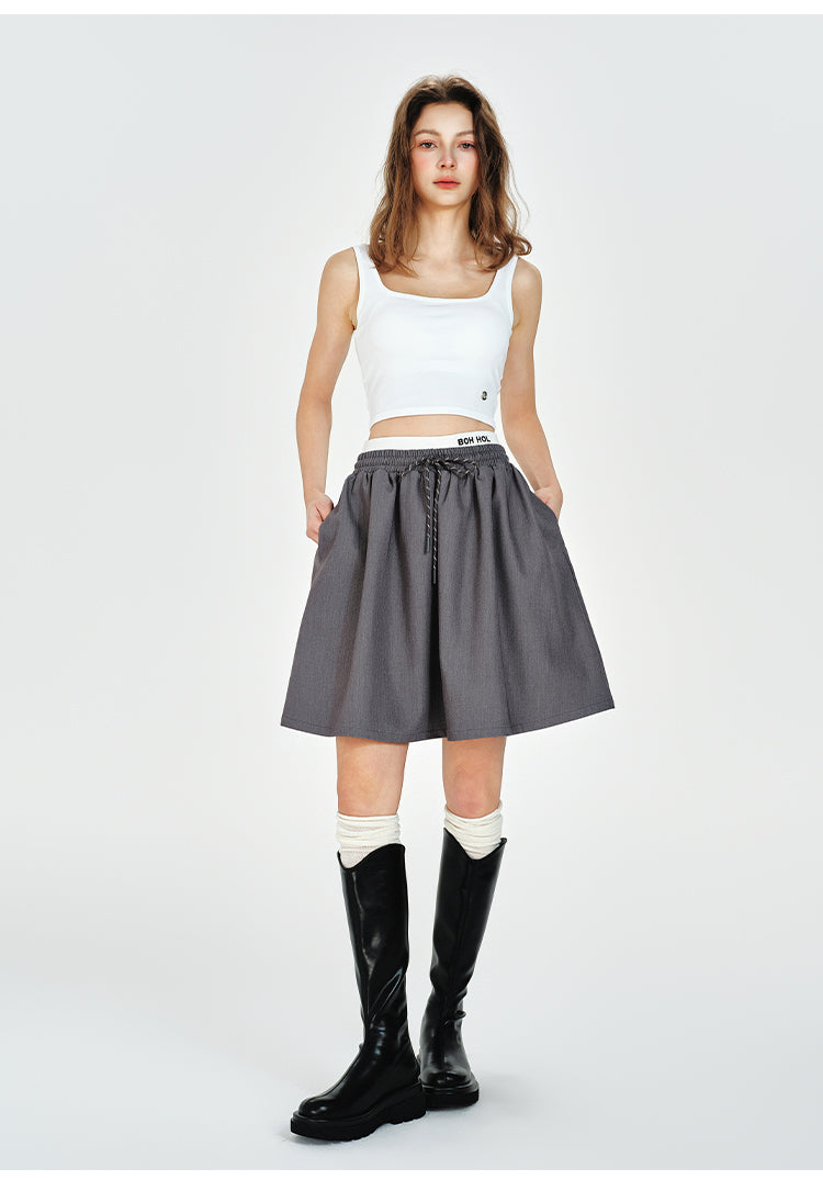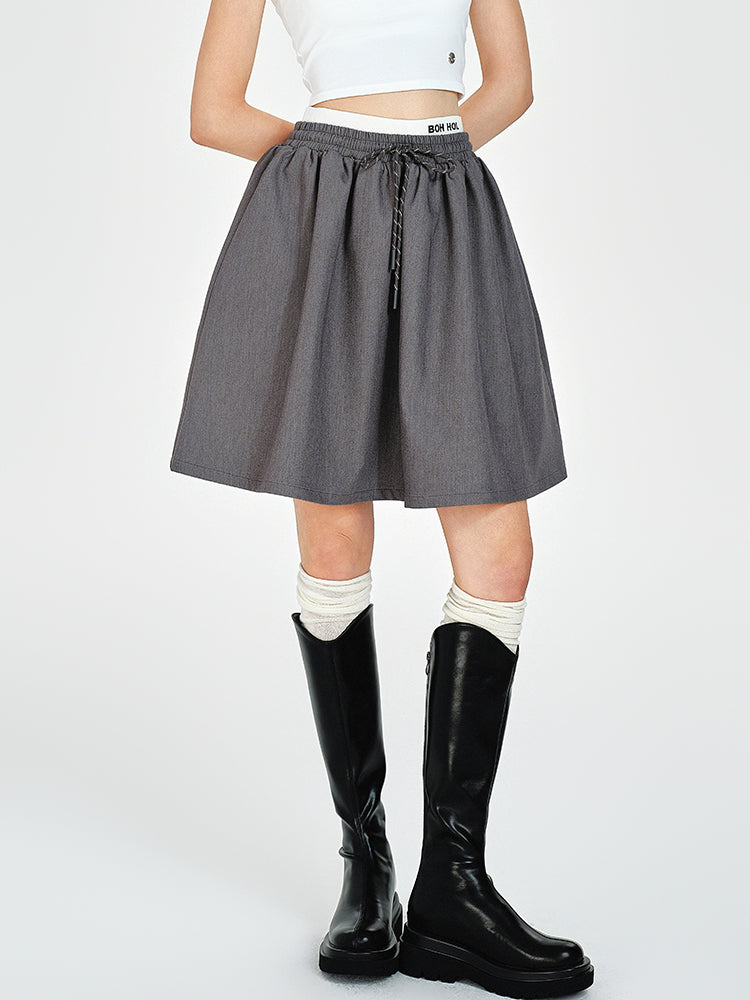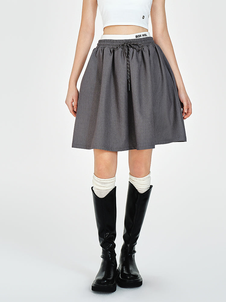 Double Waist Flare Skirt With Drawstring