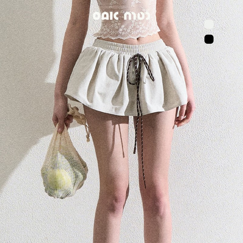 Drawstring Waist Mini Flare Skirt With Inner Shorts