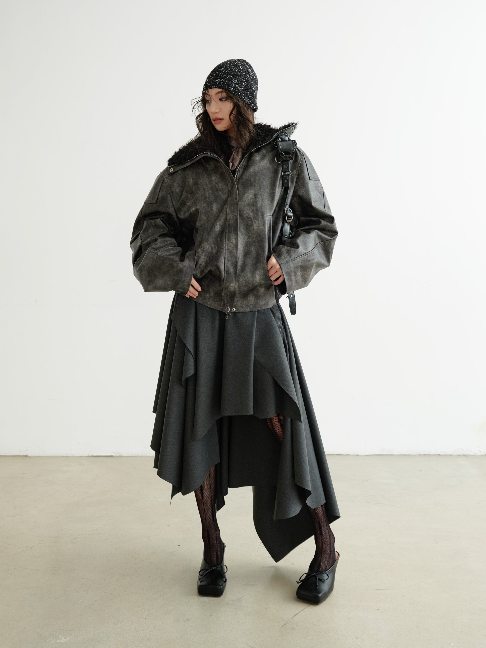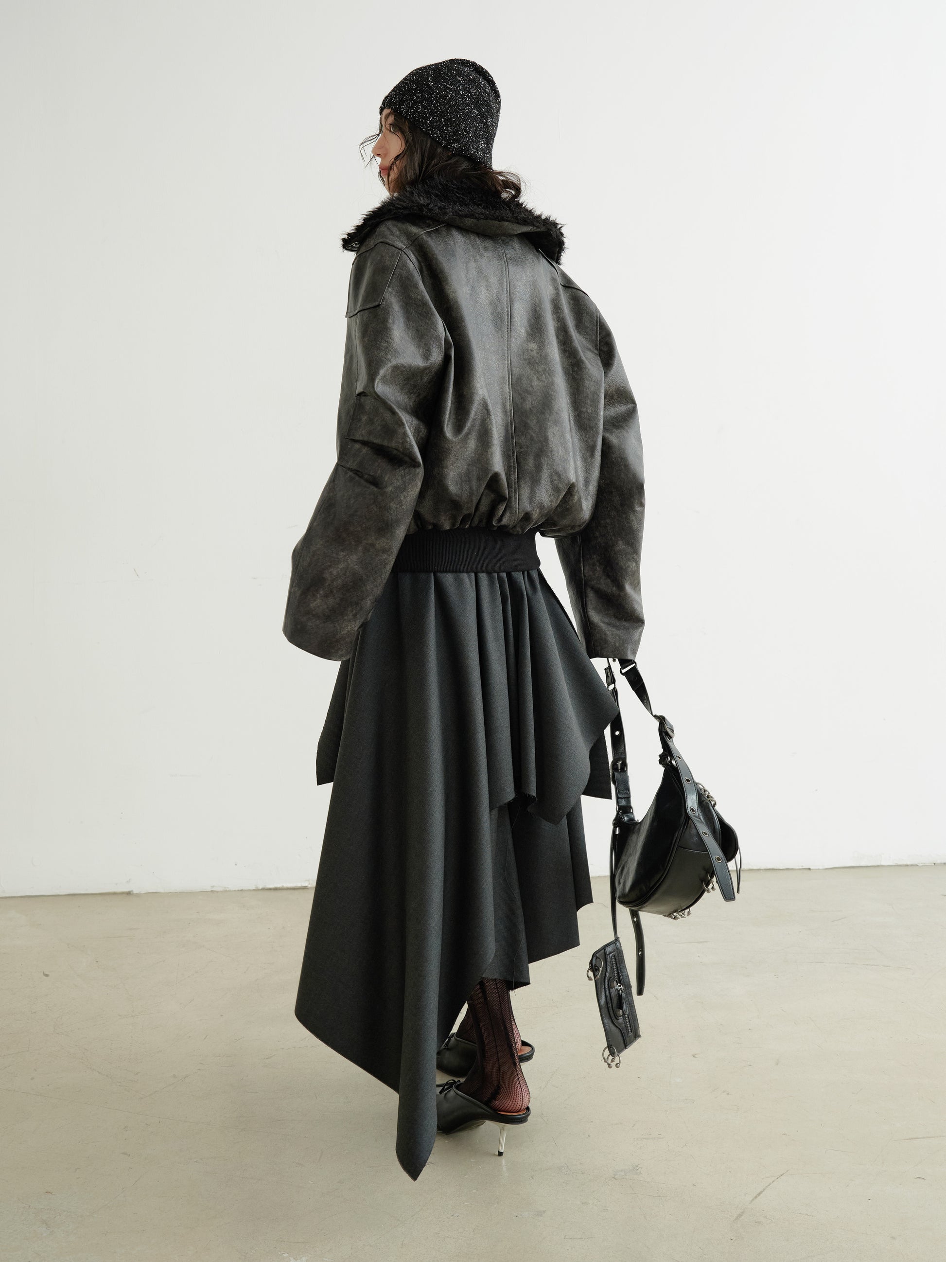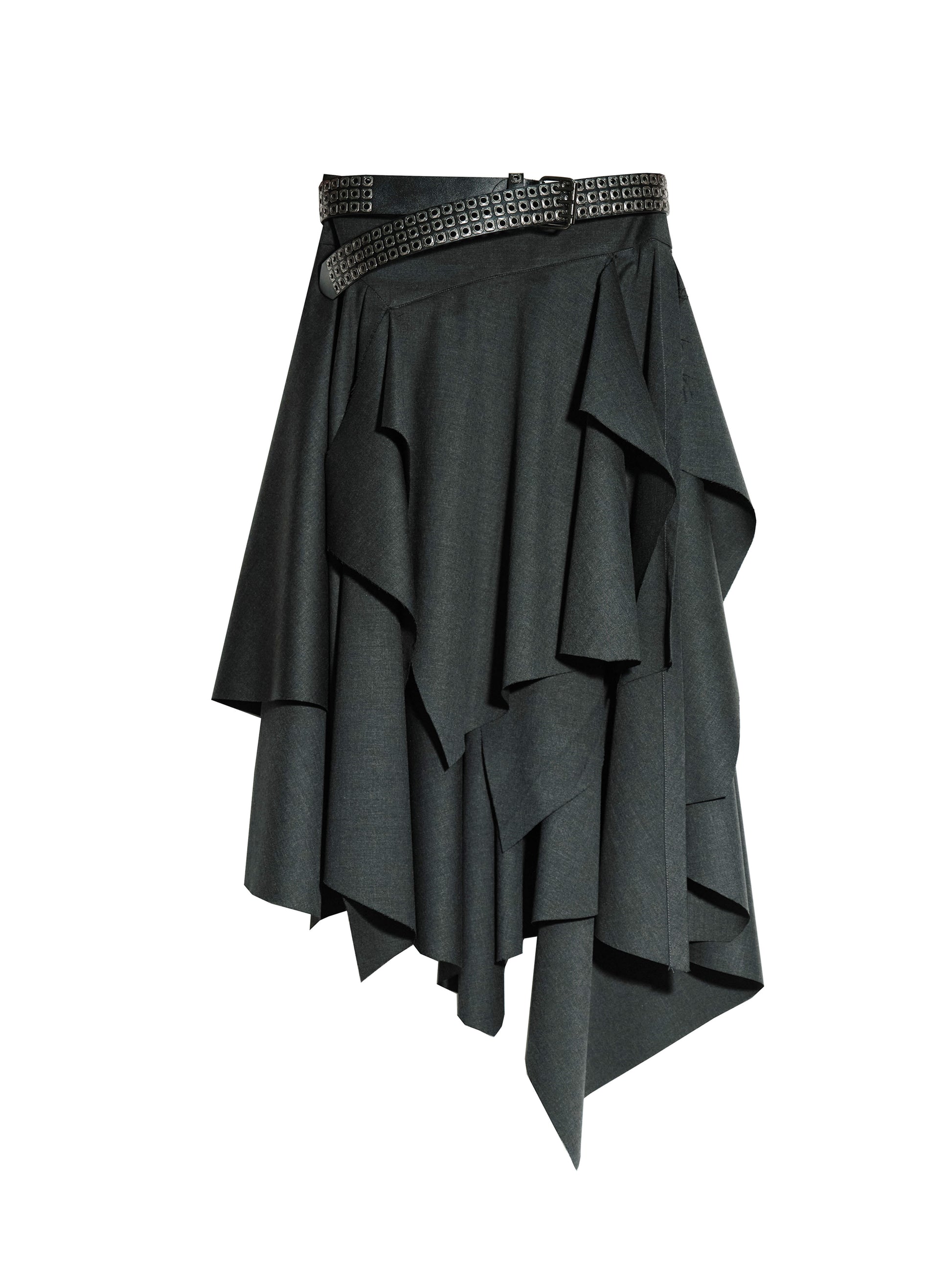Edgy Tiered Asymmetric Skirt With Studded Belt