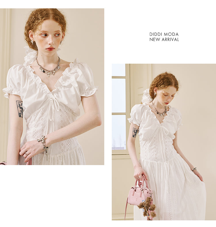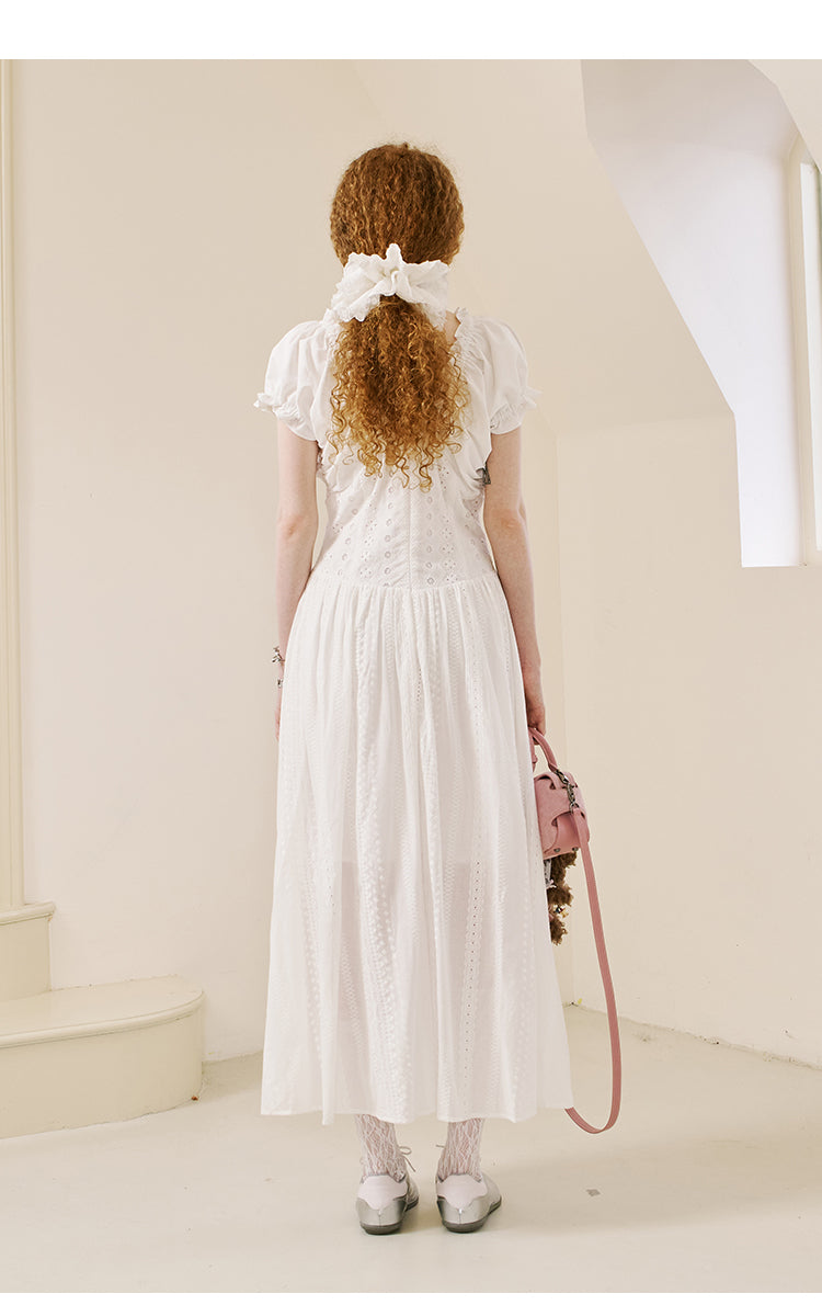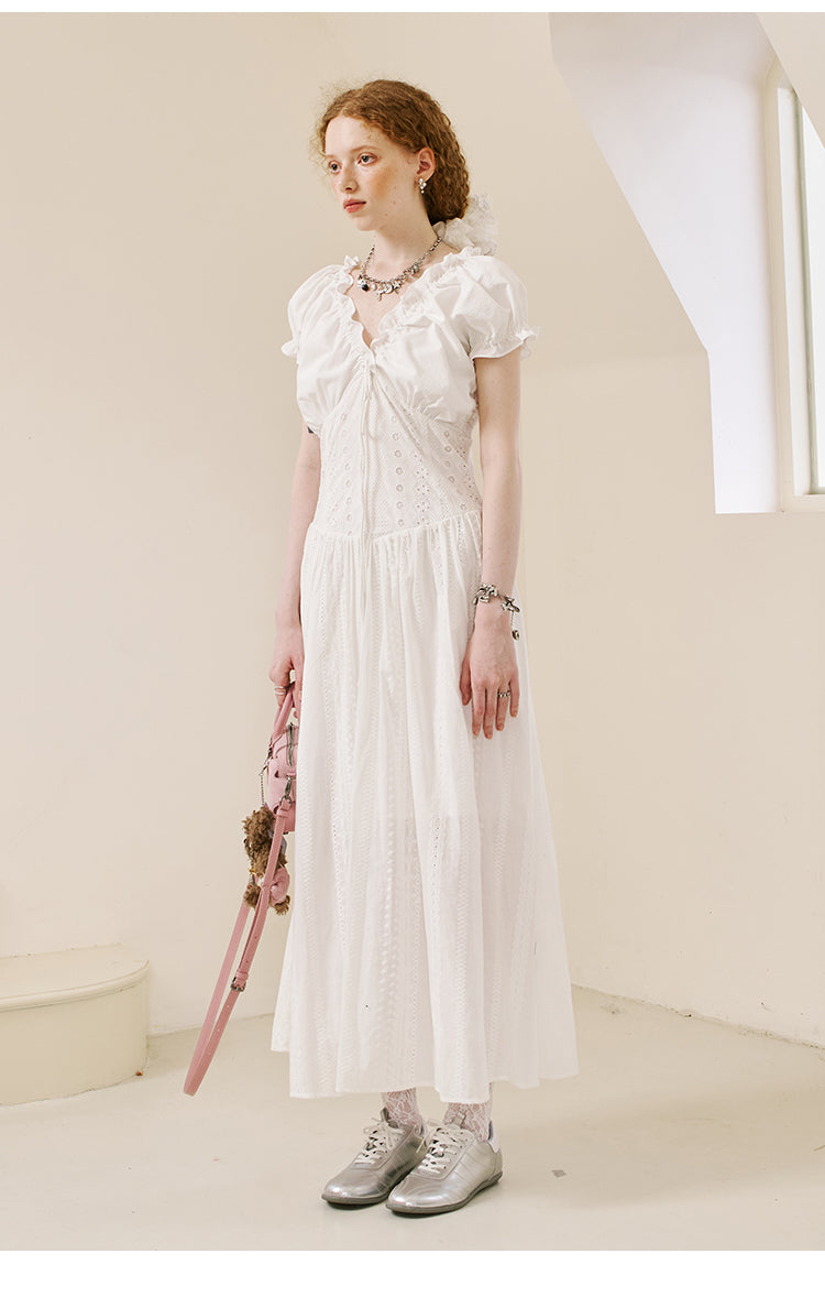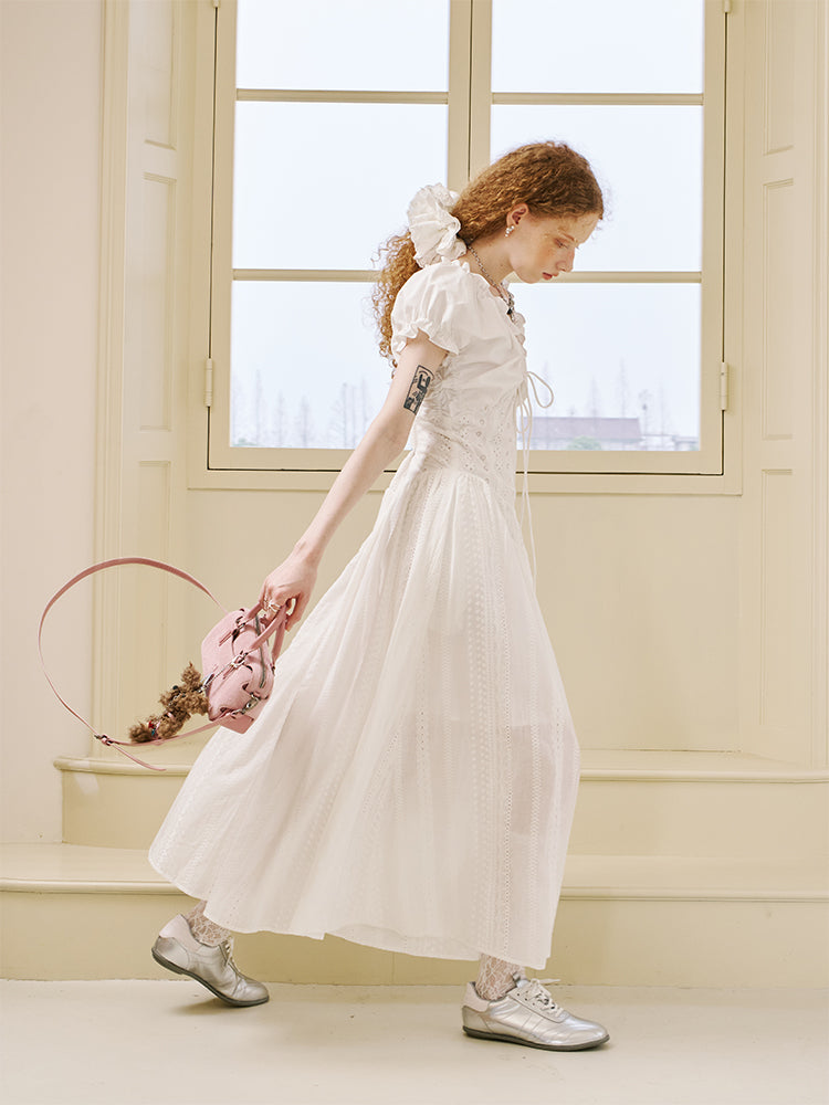 Embroidered Puff-Sleeve Dress In Short And Long Lengths