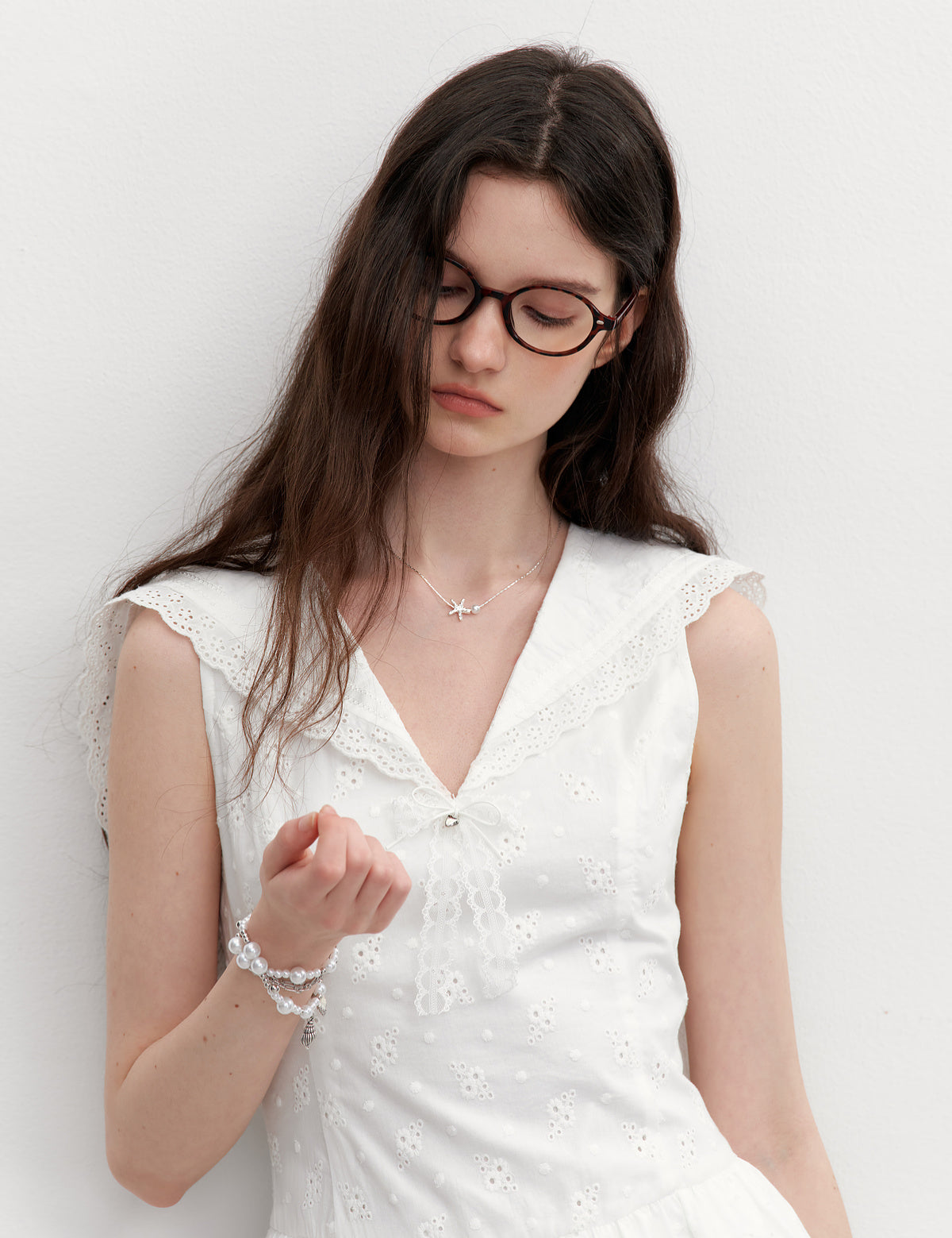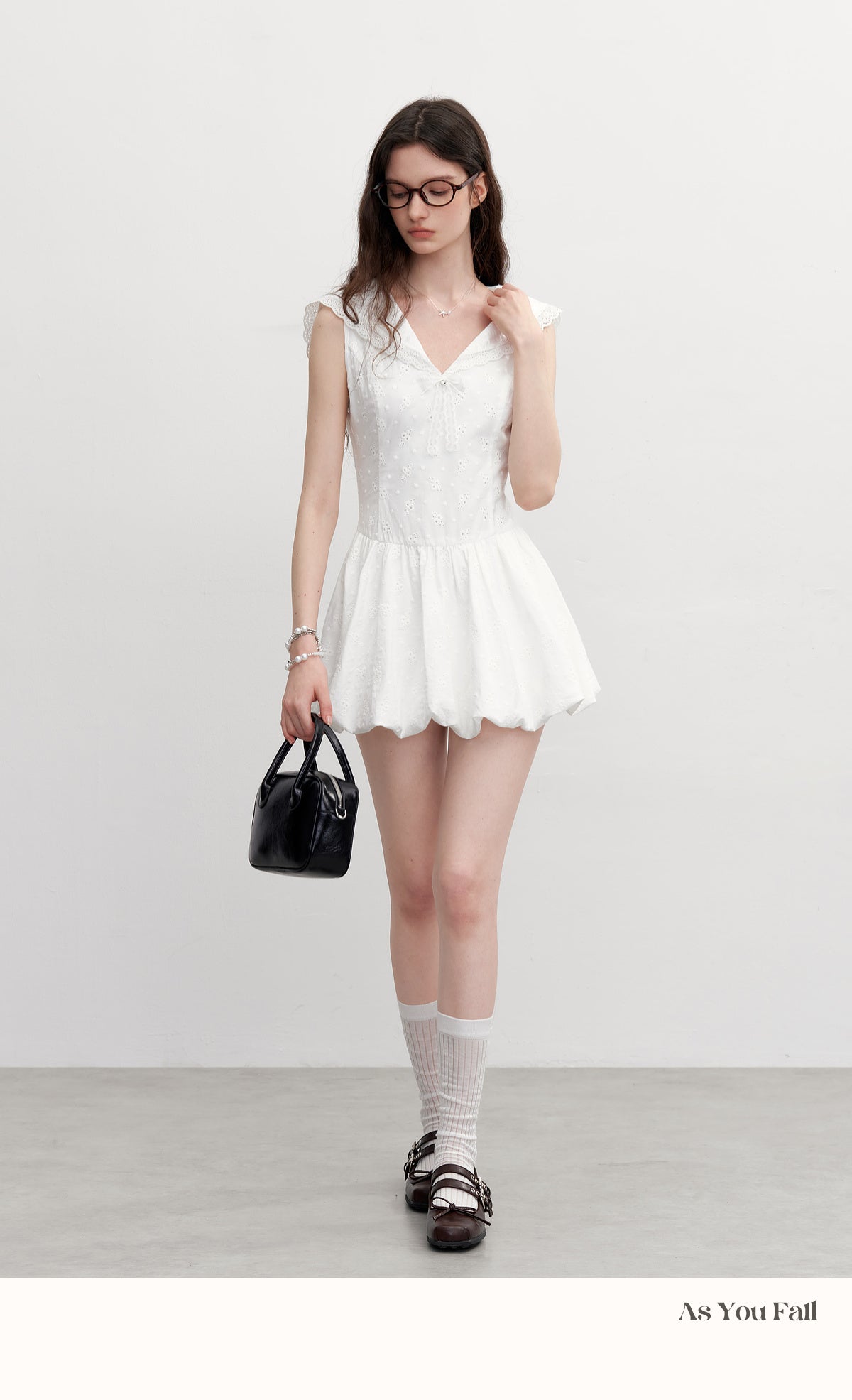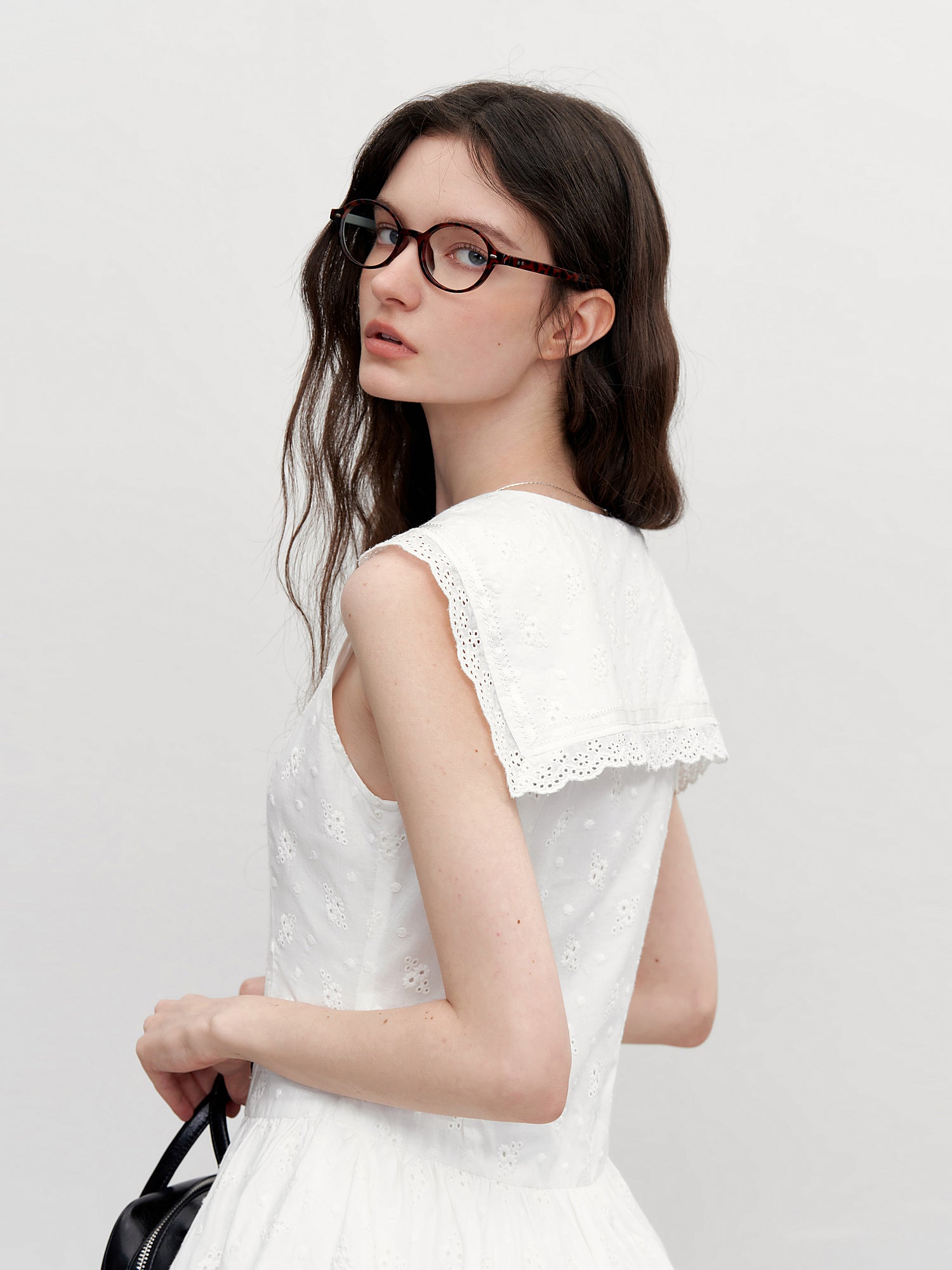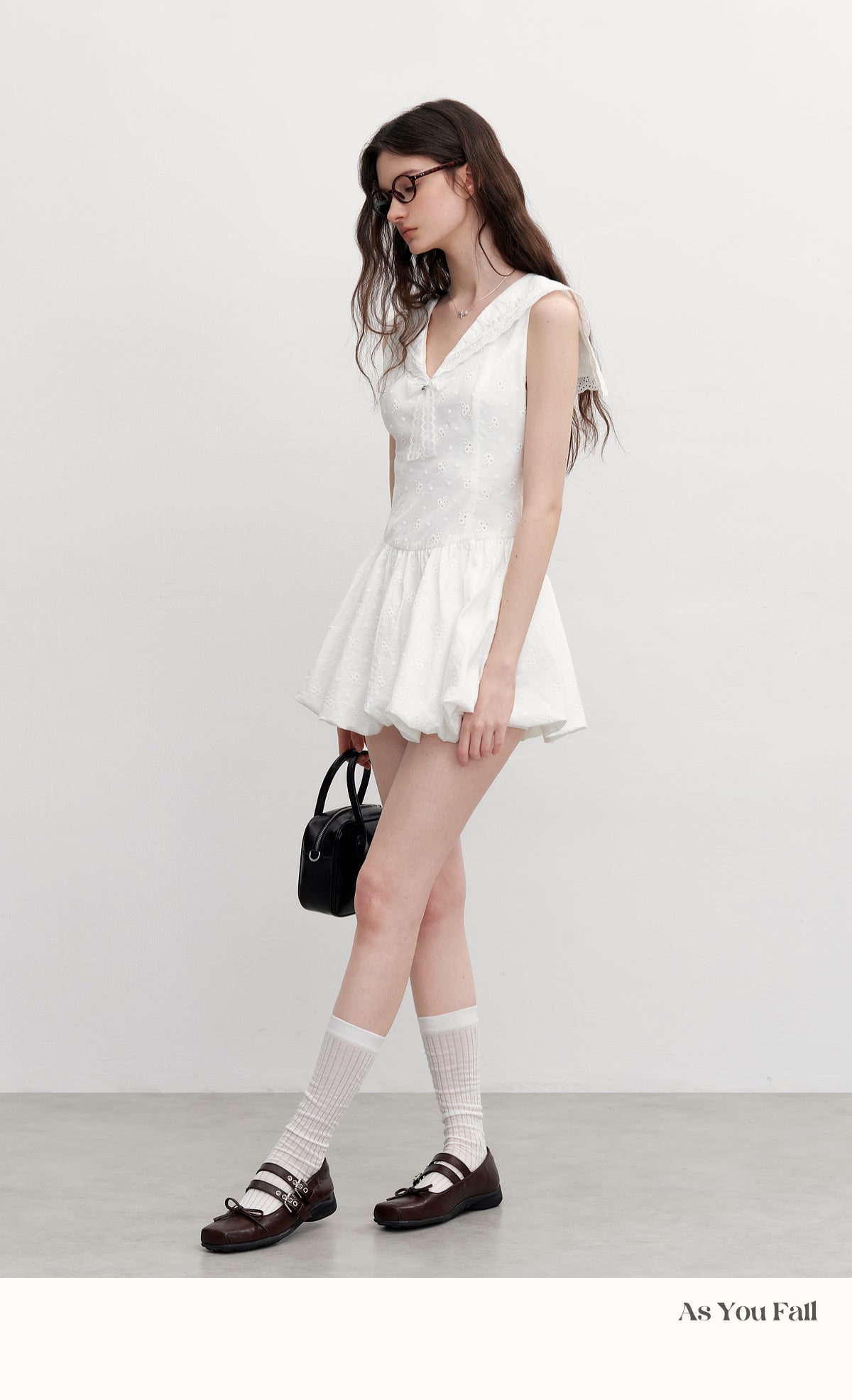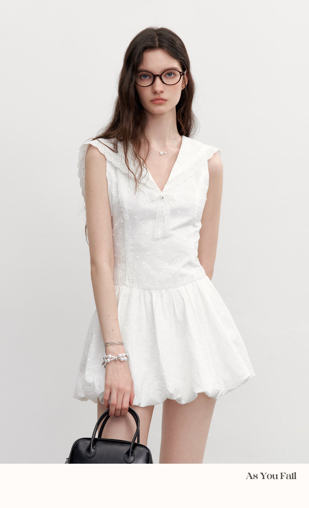 Embroidered Sailor Dress With Bubble Hem And Lace Detail