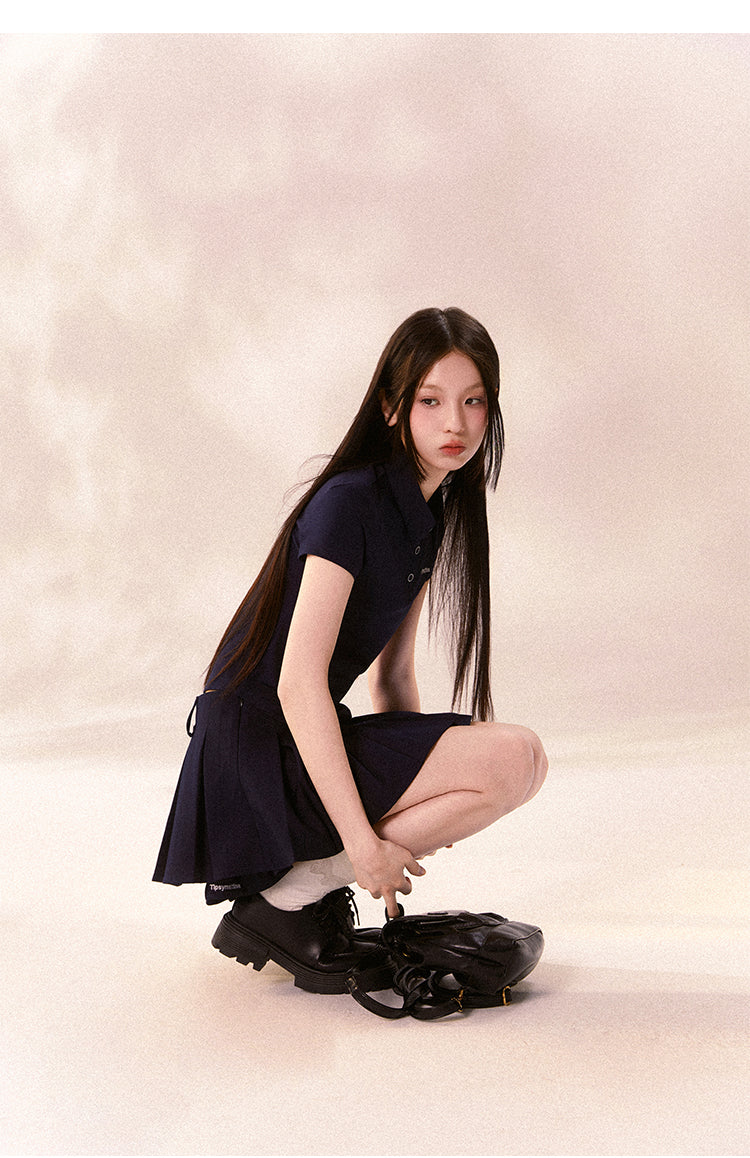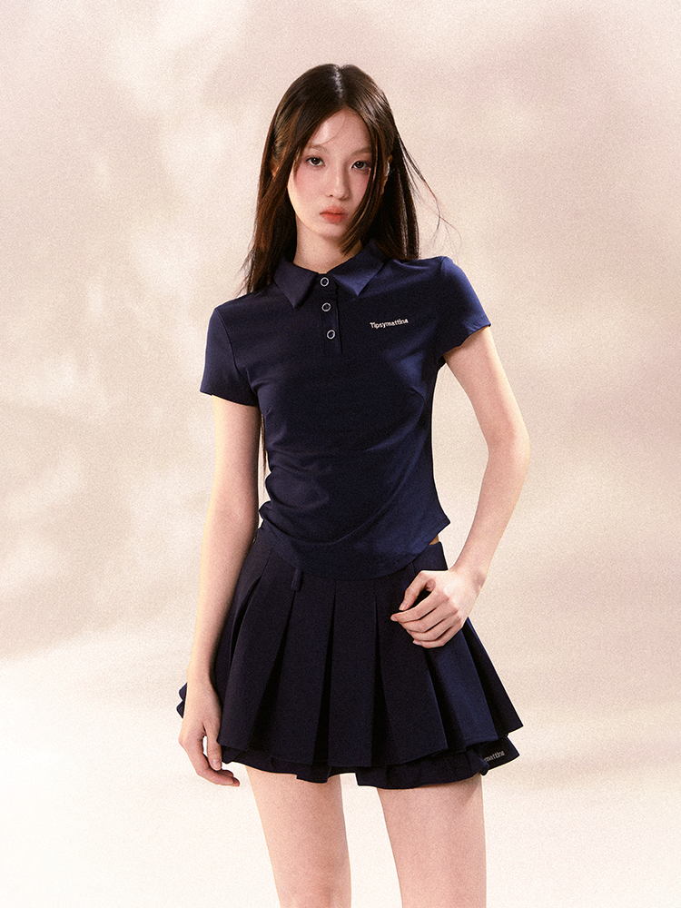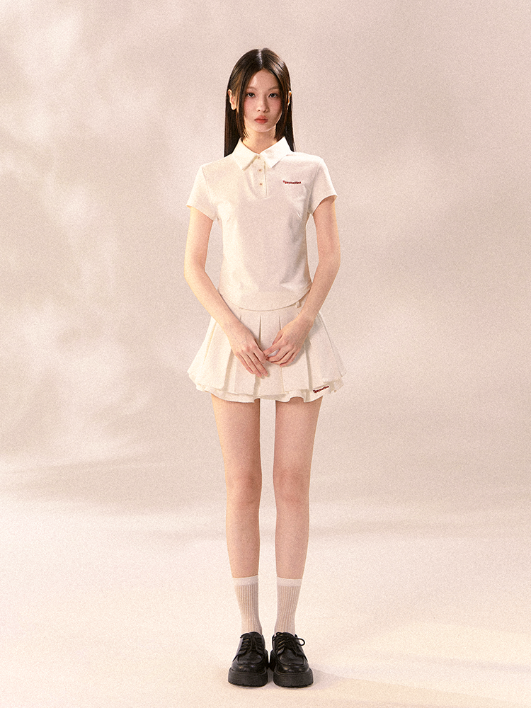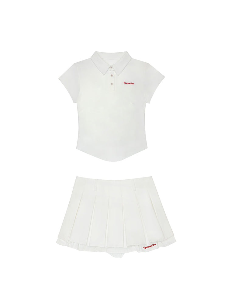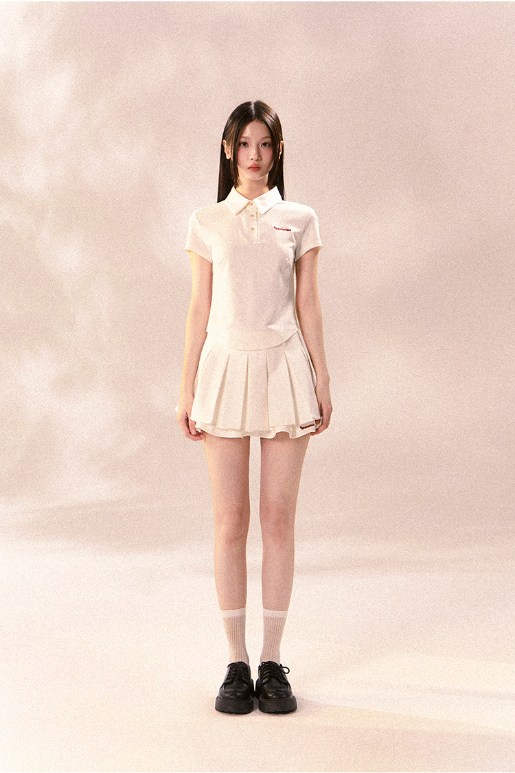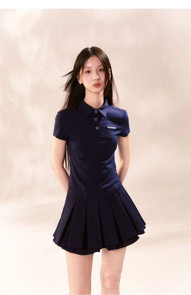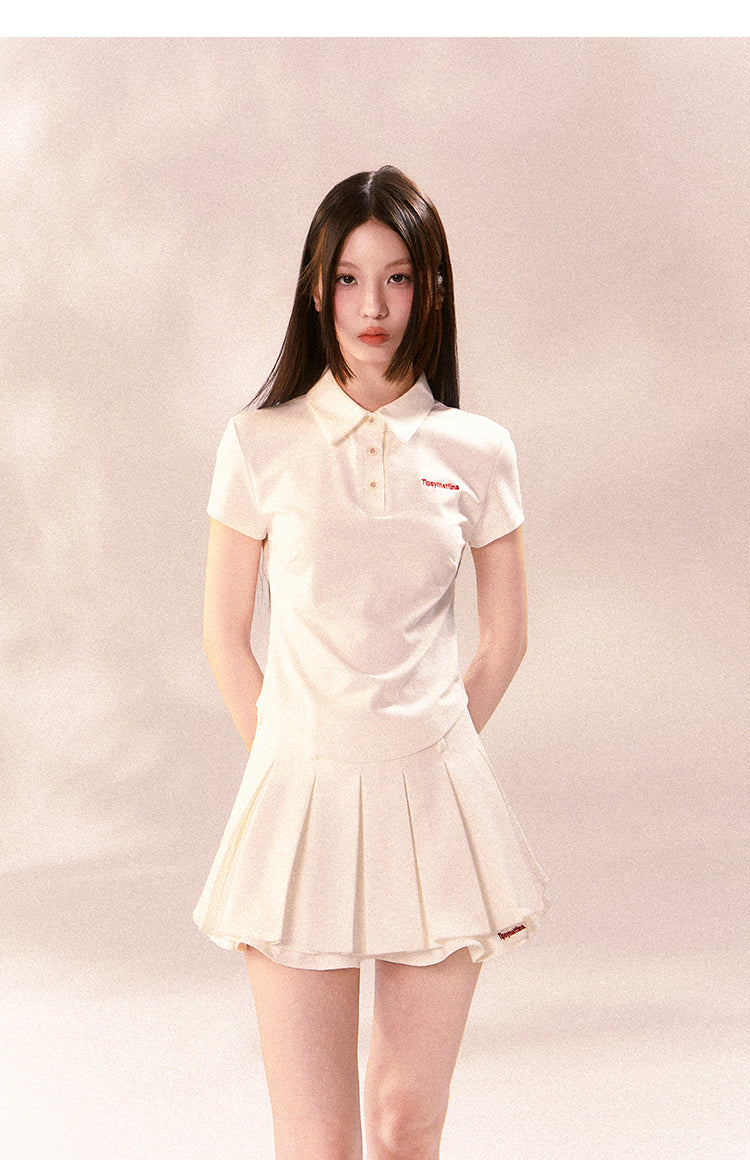 Embroidered Sporty Casual Polo Shirt And Pleated Skirt
