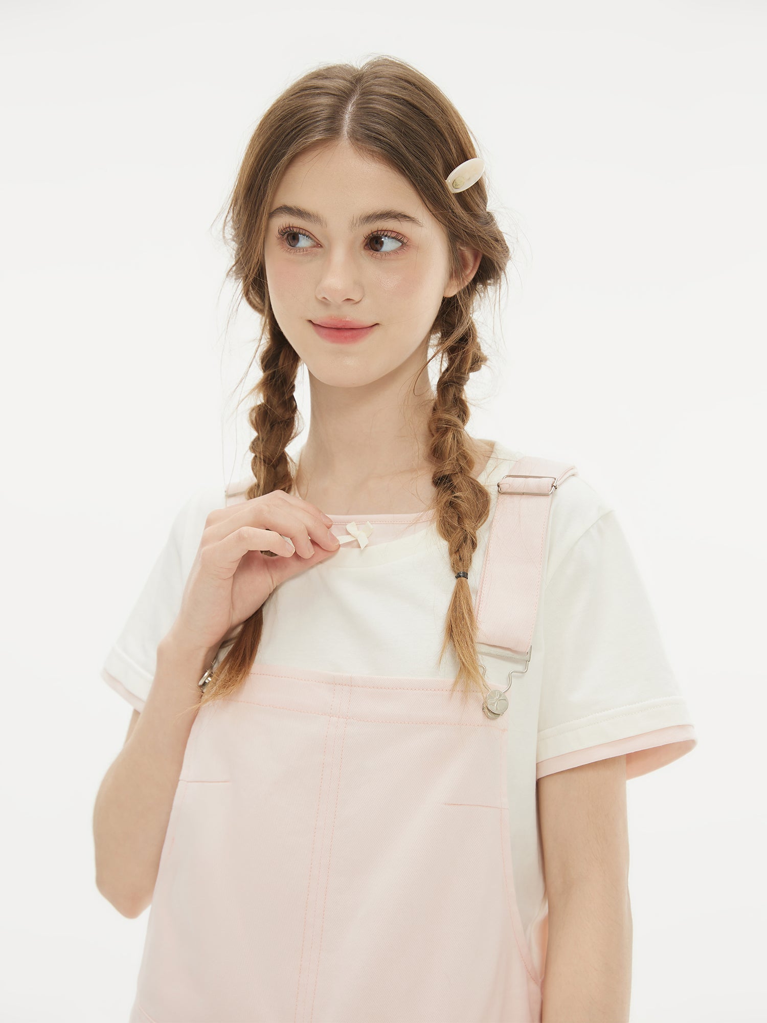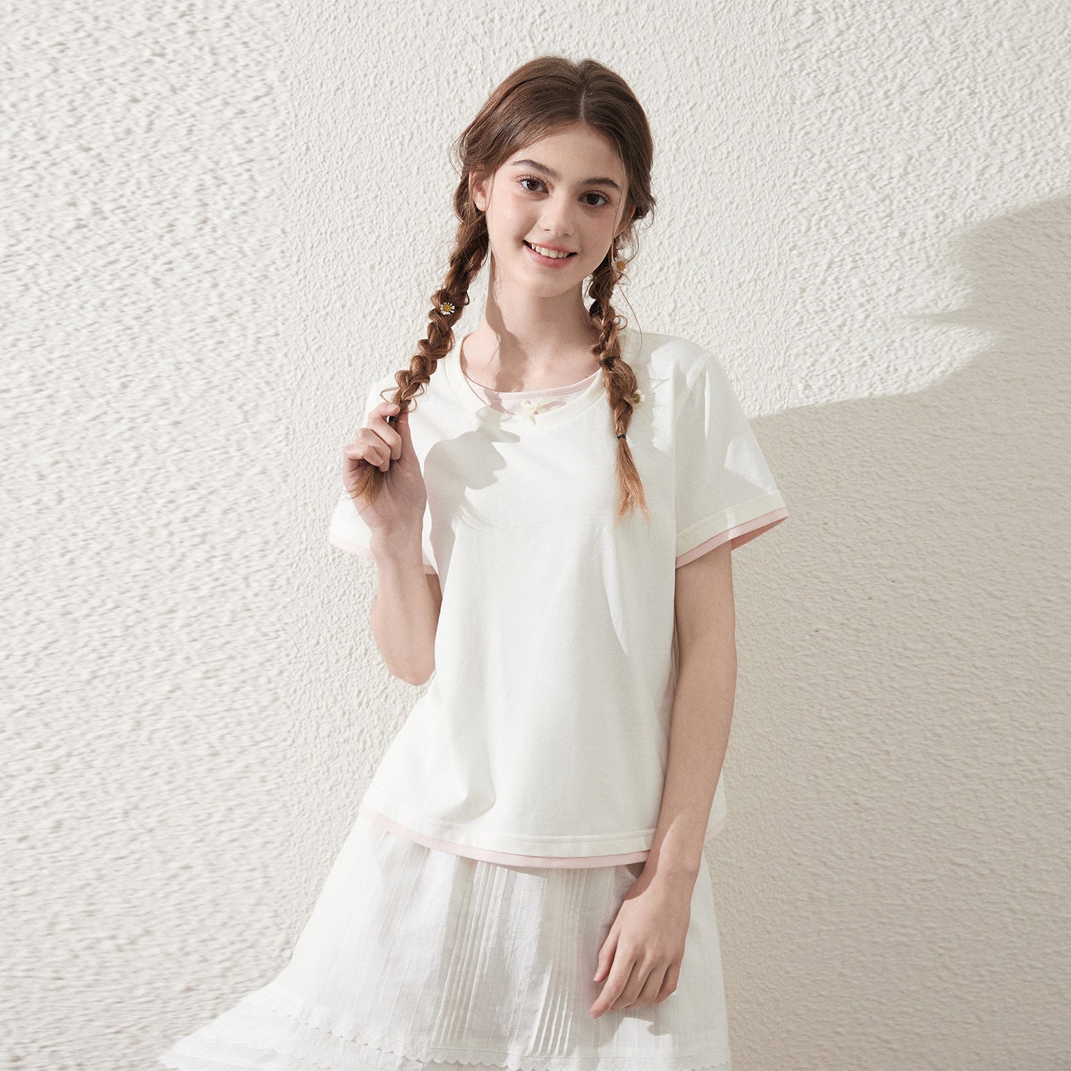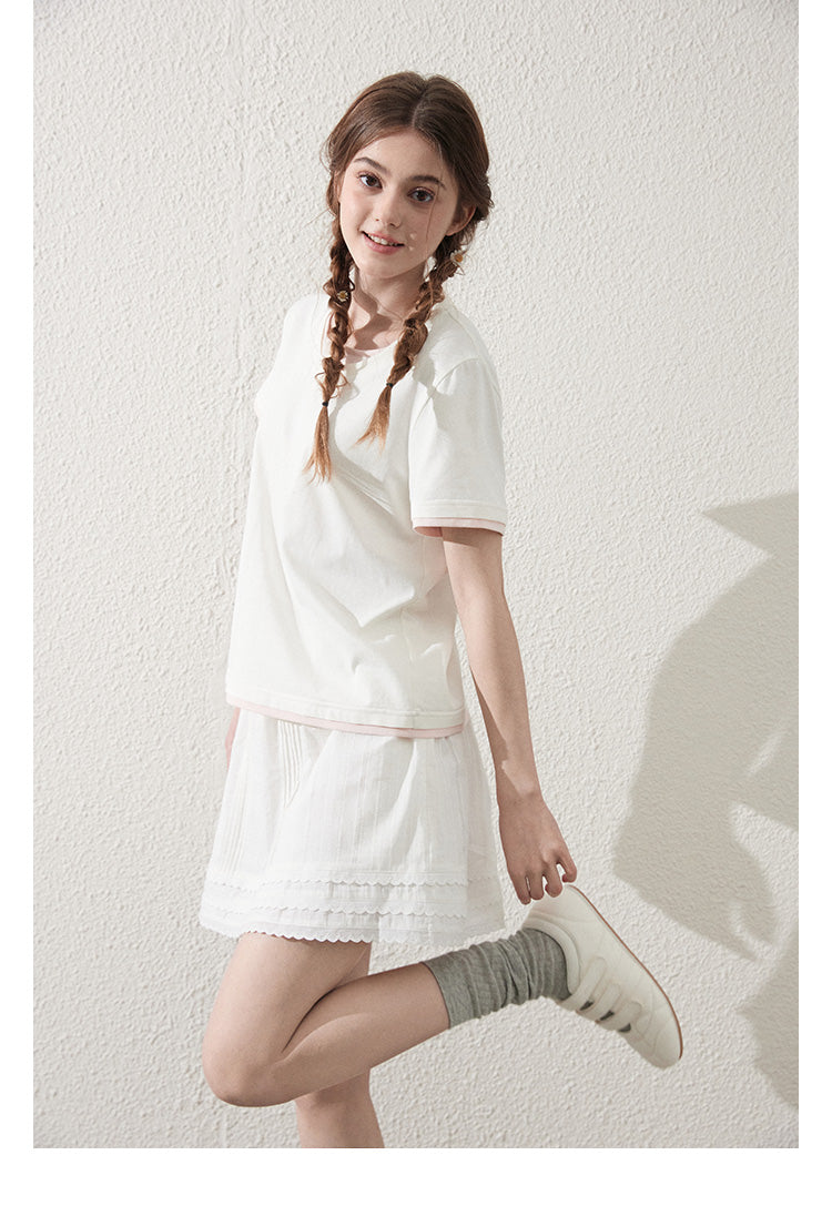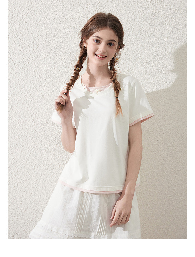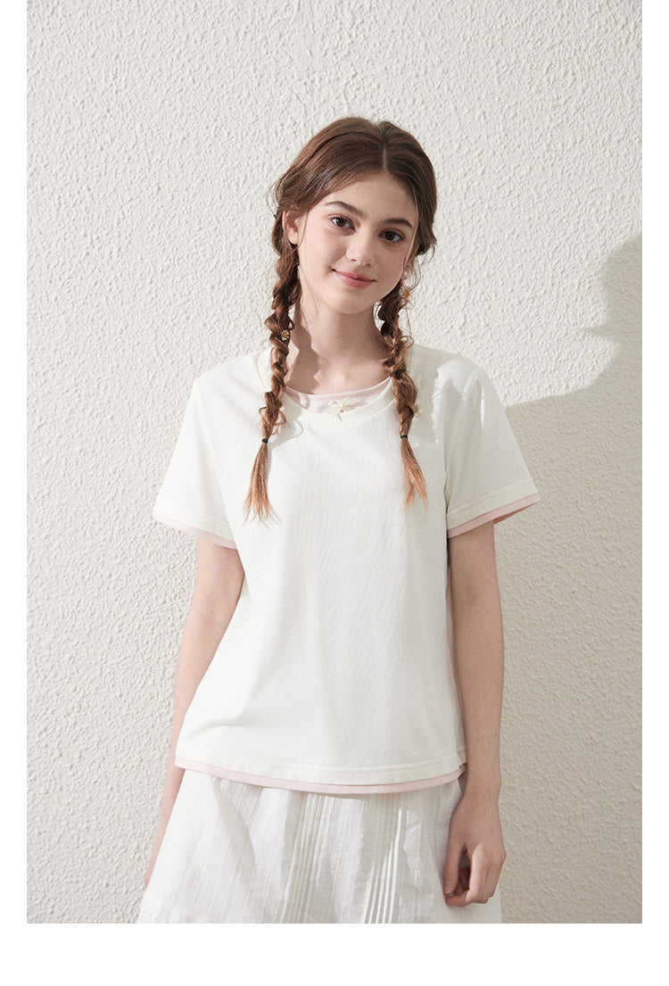 Faux Layered Cotton T-Shirt With Bow