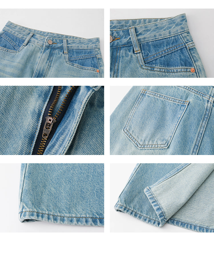 Faux Layered T-Shirt And Long Washed Denim Skirt