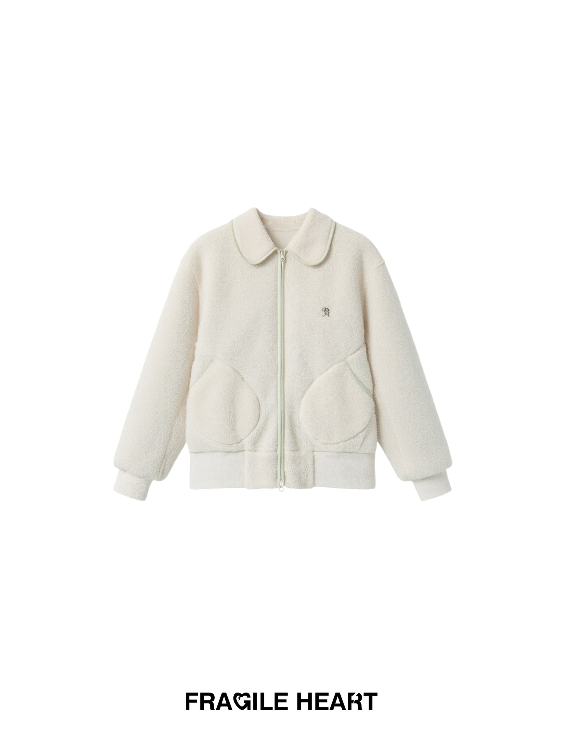 Faux Sheepskin Zip-Up Top With Peter Pan Collar