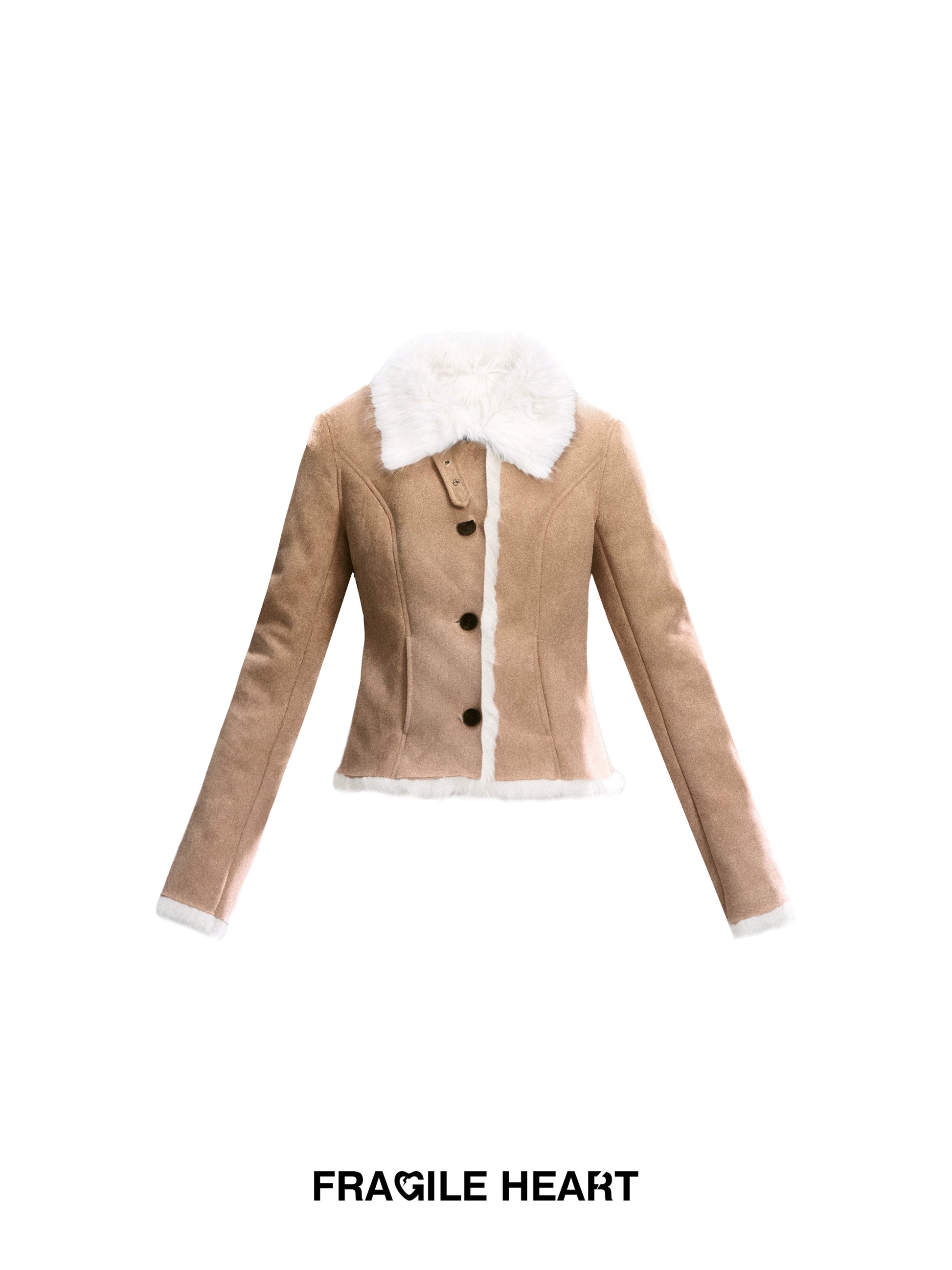 Faux Suede Fitted Jacket With Fur Lining