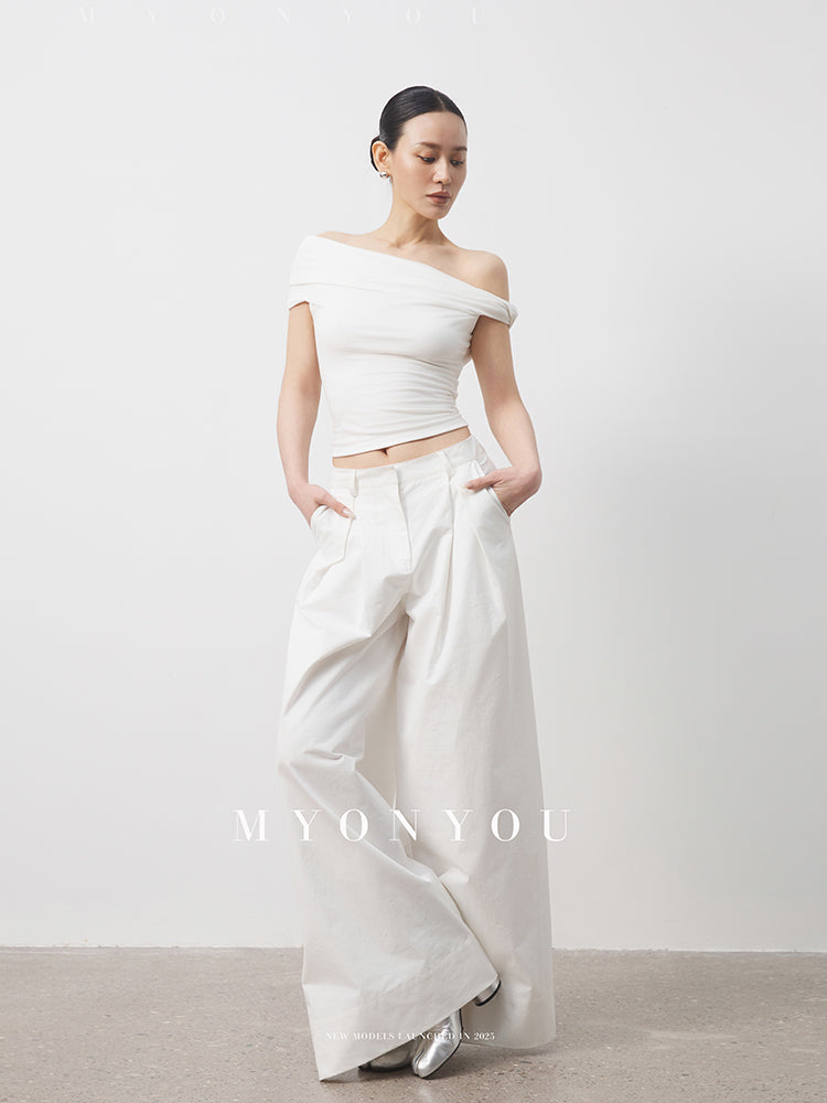 Fitted Asymmetrical Crop Top With Twisted Shoulder