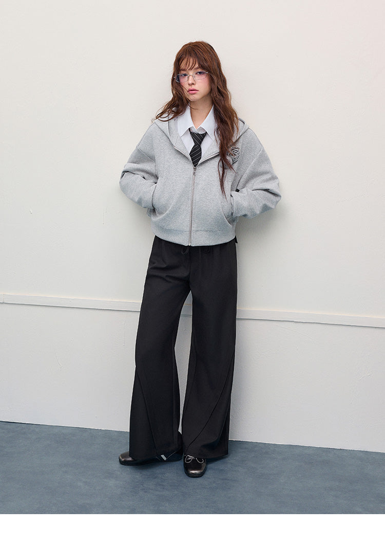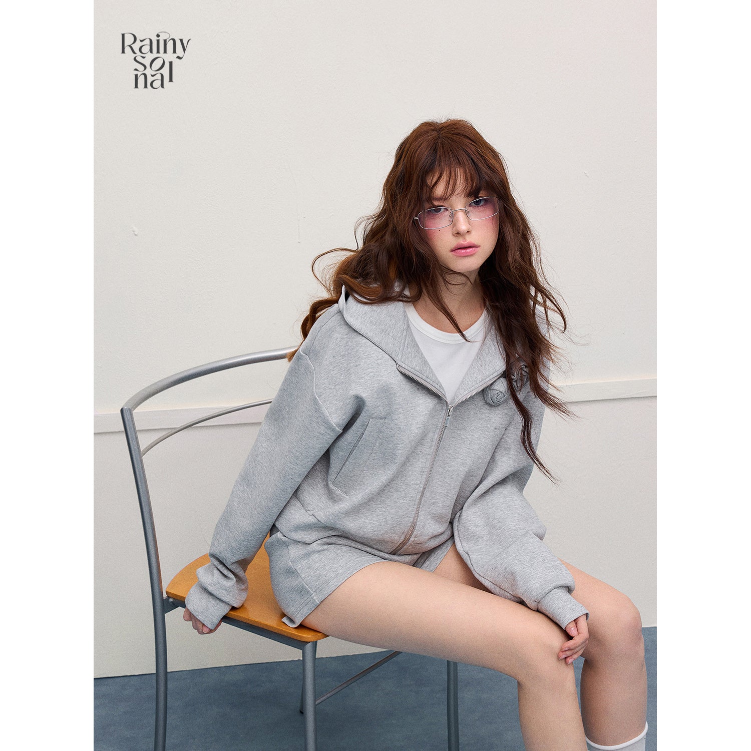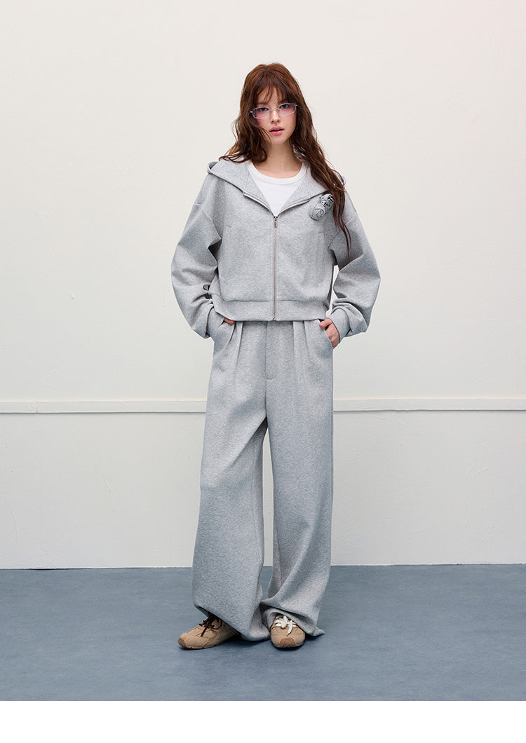 Floral Accent Zip-Up Hoodie & Matching Shorts