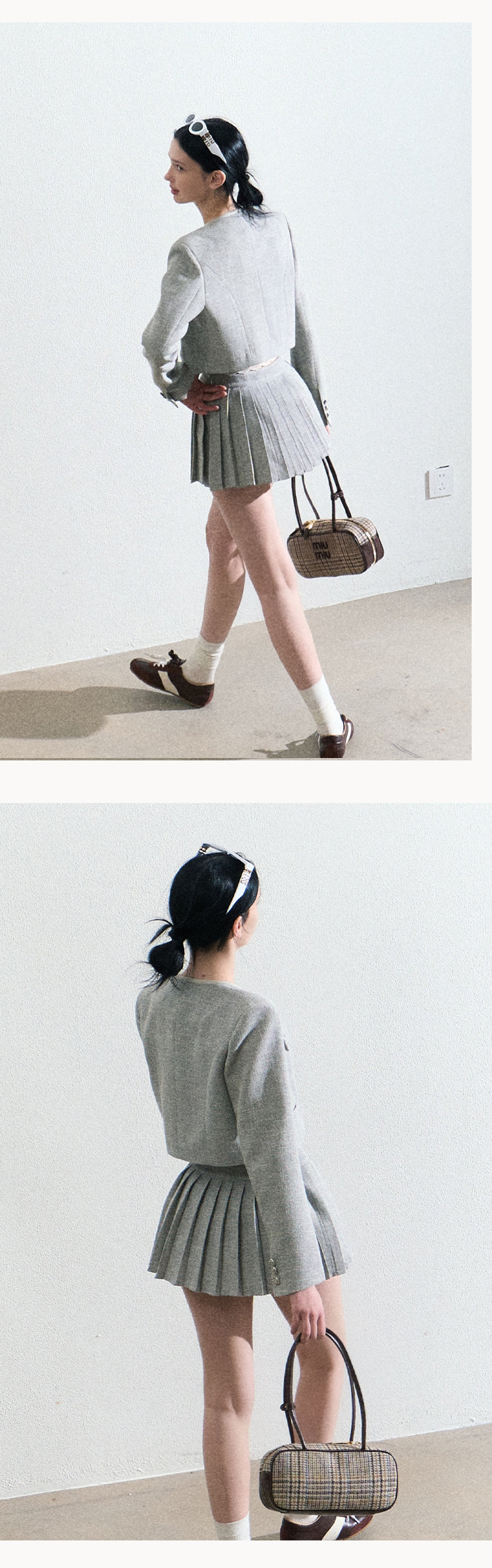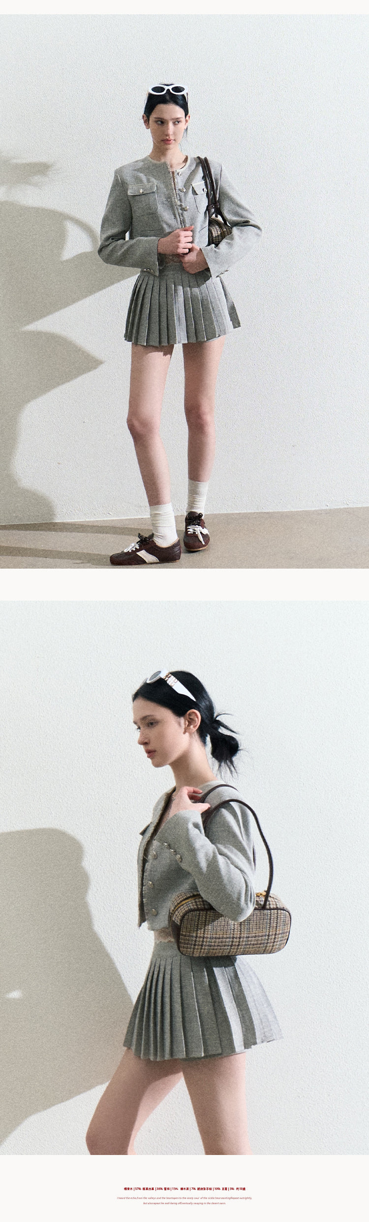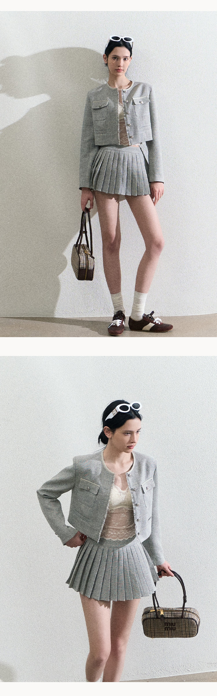 Fringed Cropped Jacket And High-Waisted Pleated Skirt