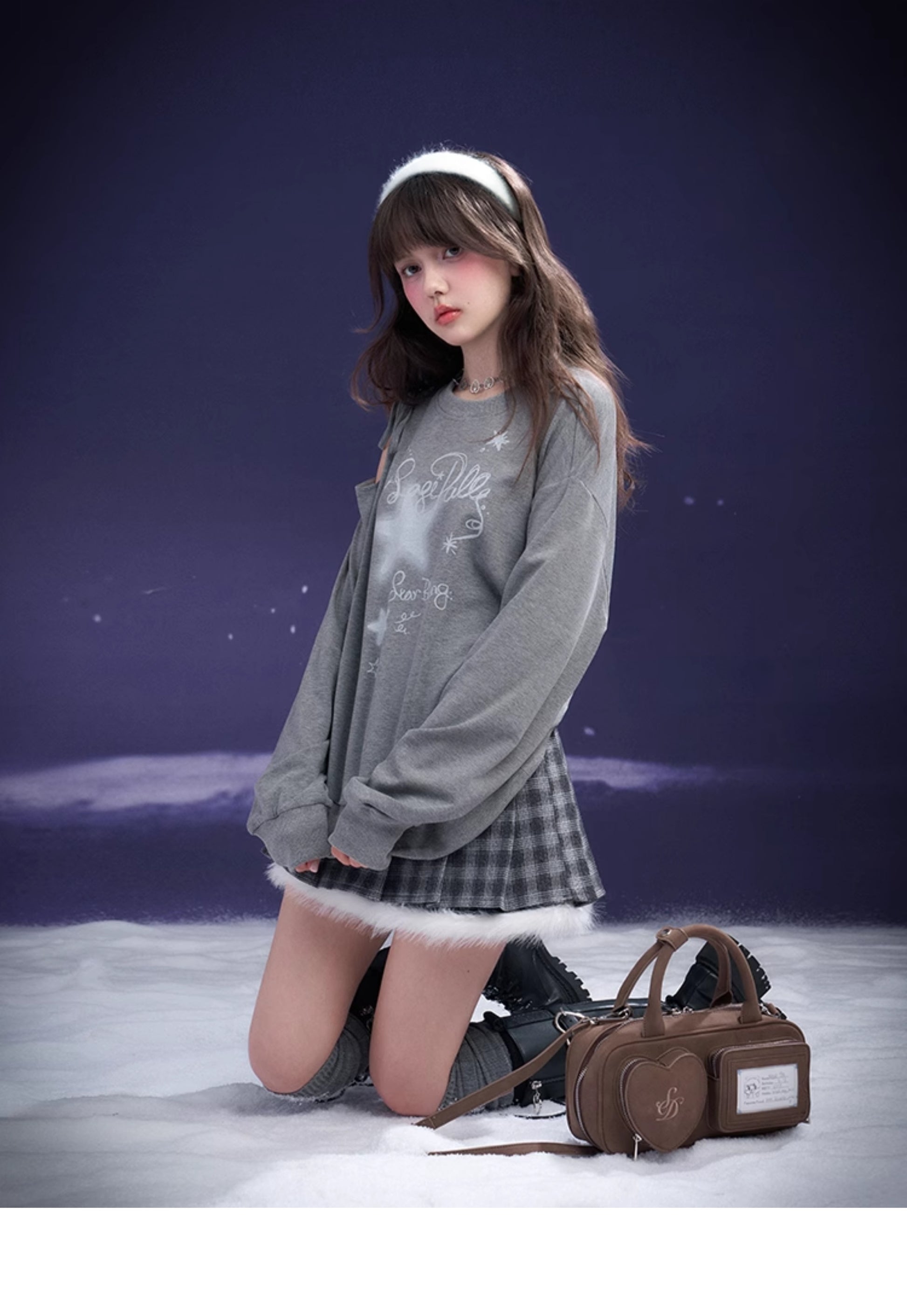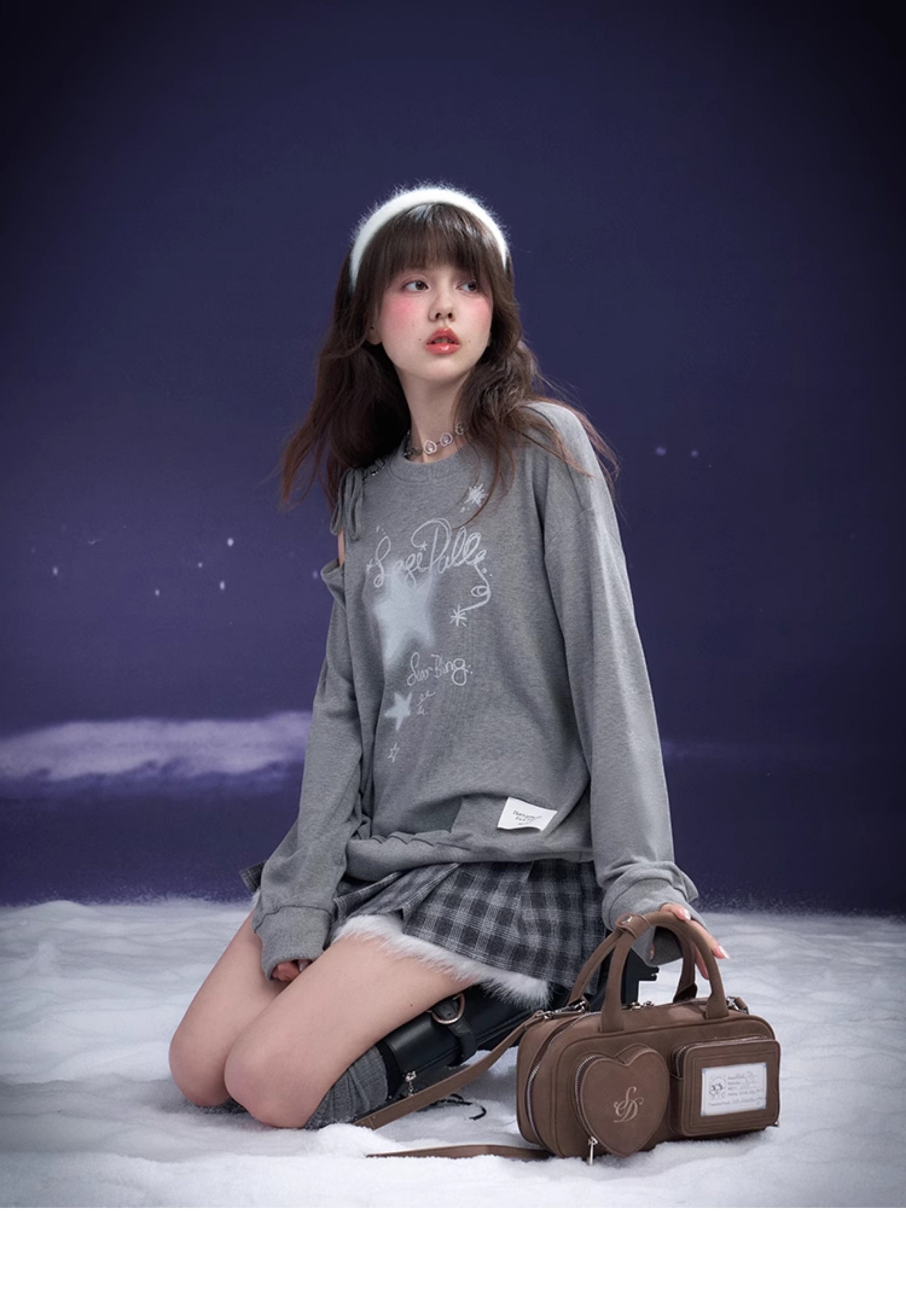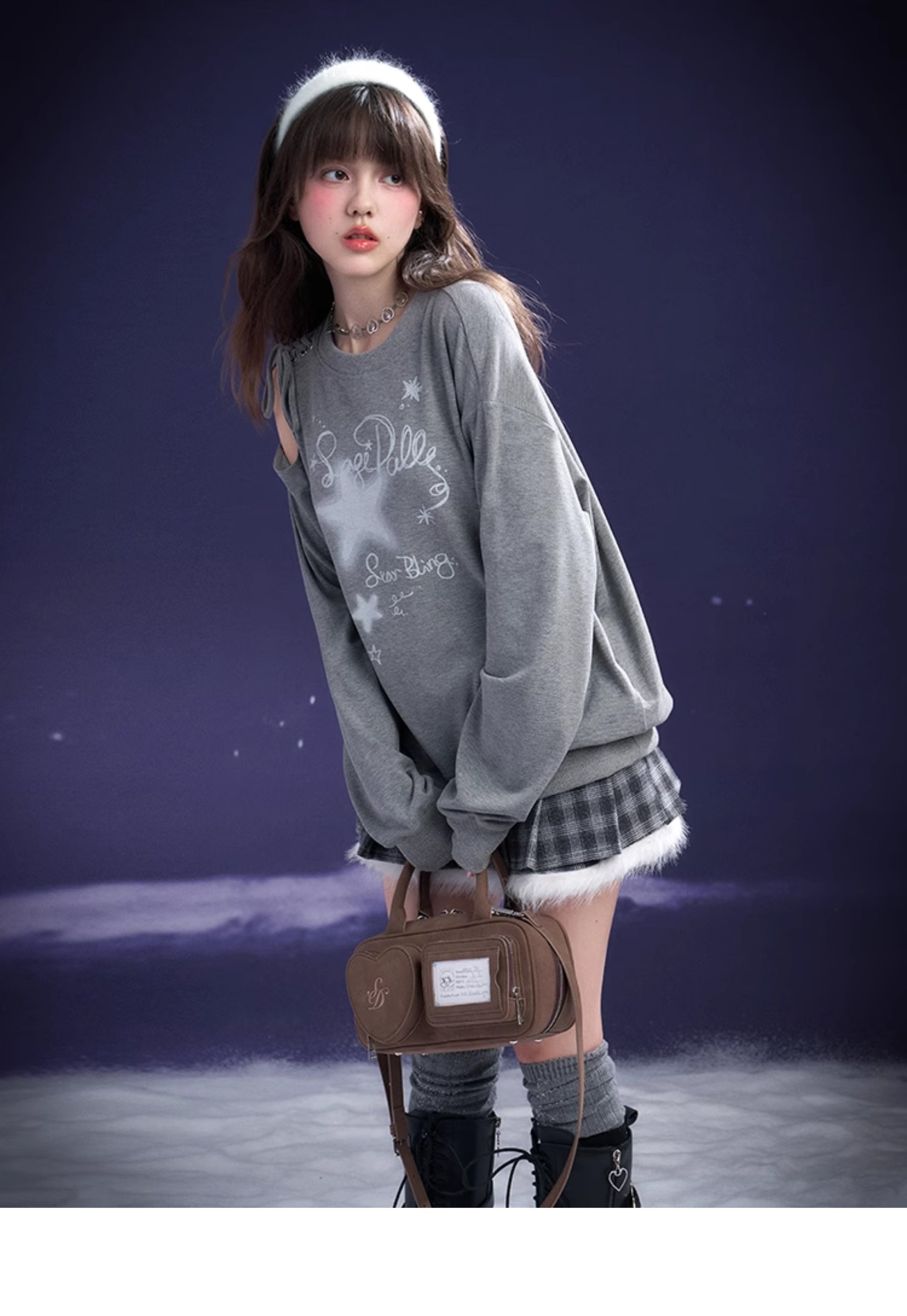 Graffiti Print Lace-Up Cut-Out Shoulder Sweatshirt