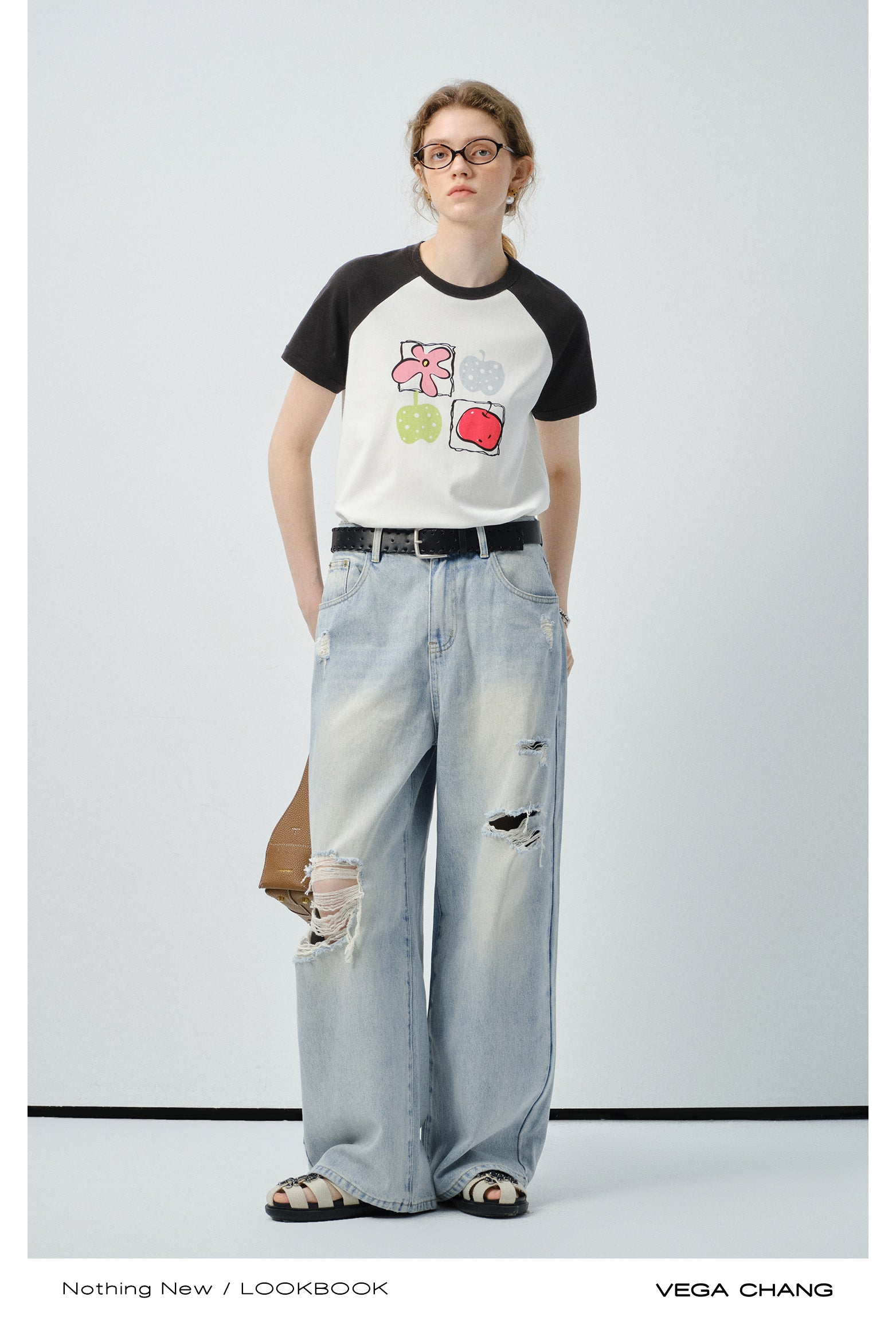 Graphic Printed T-Shirt With Contrast Raglan Sleeves
