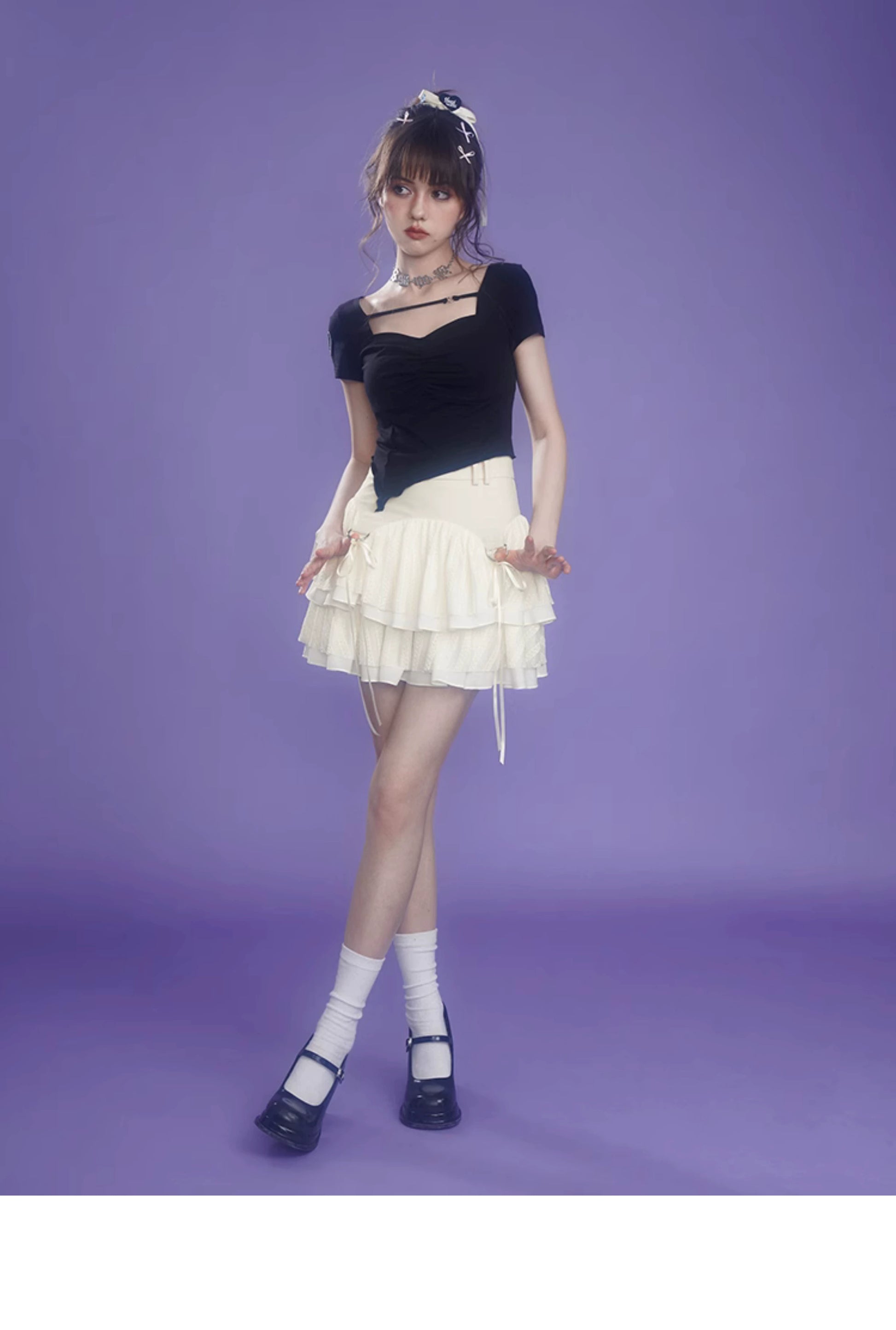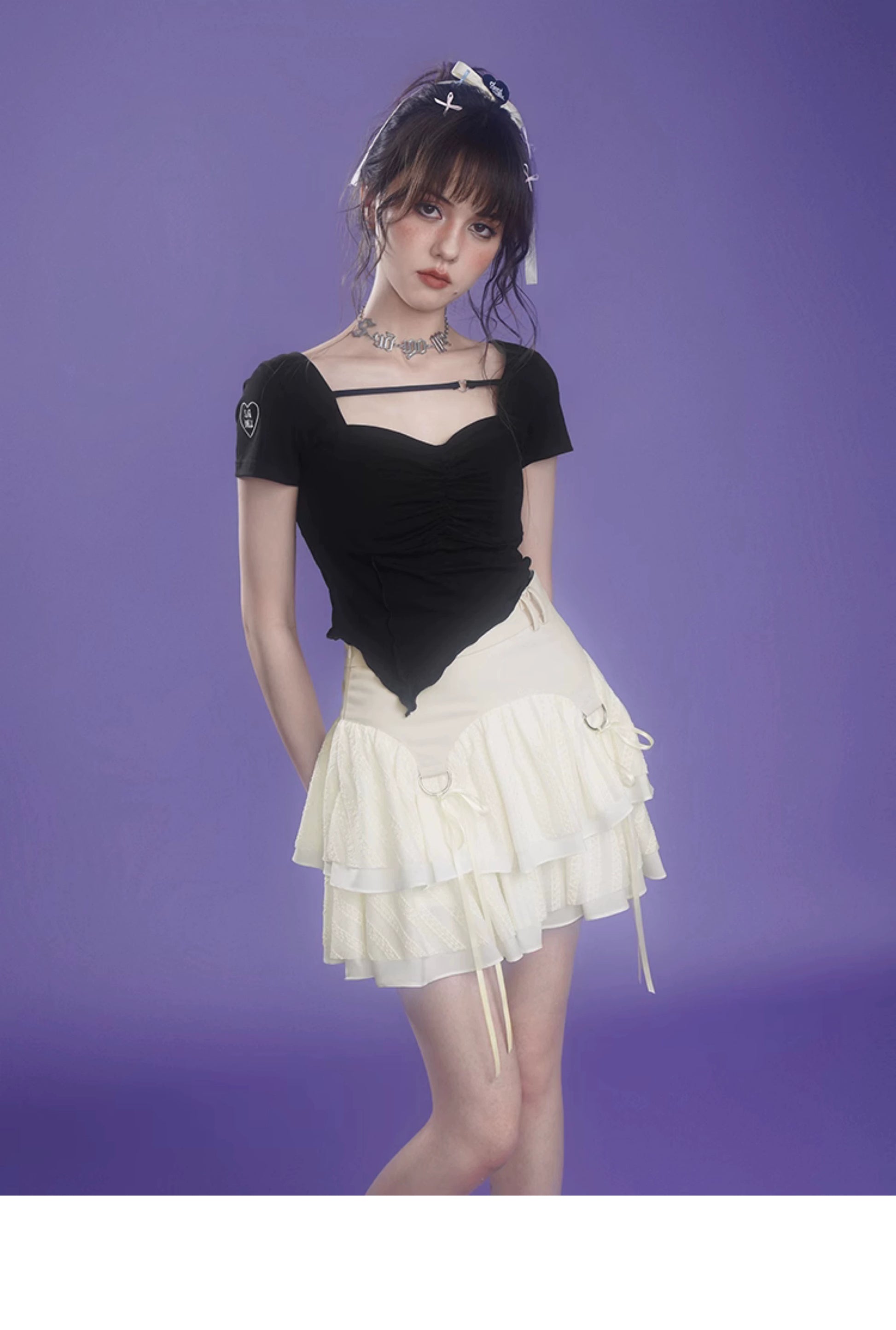 Heart Motif Embroidered Asymmetrical Cropped Top With Strap