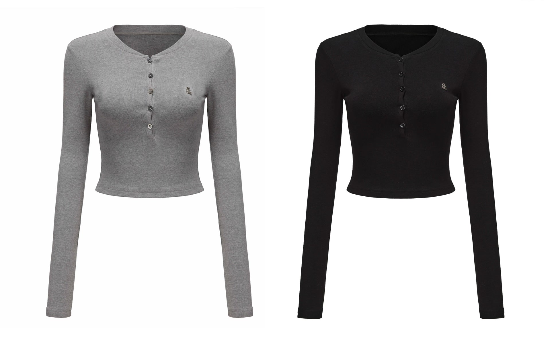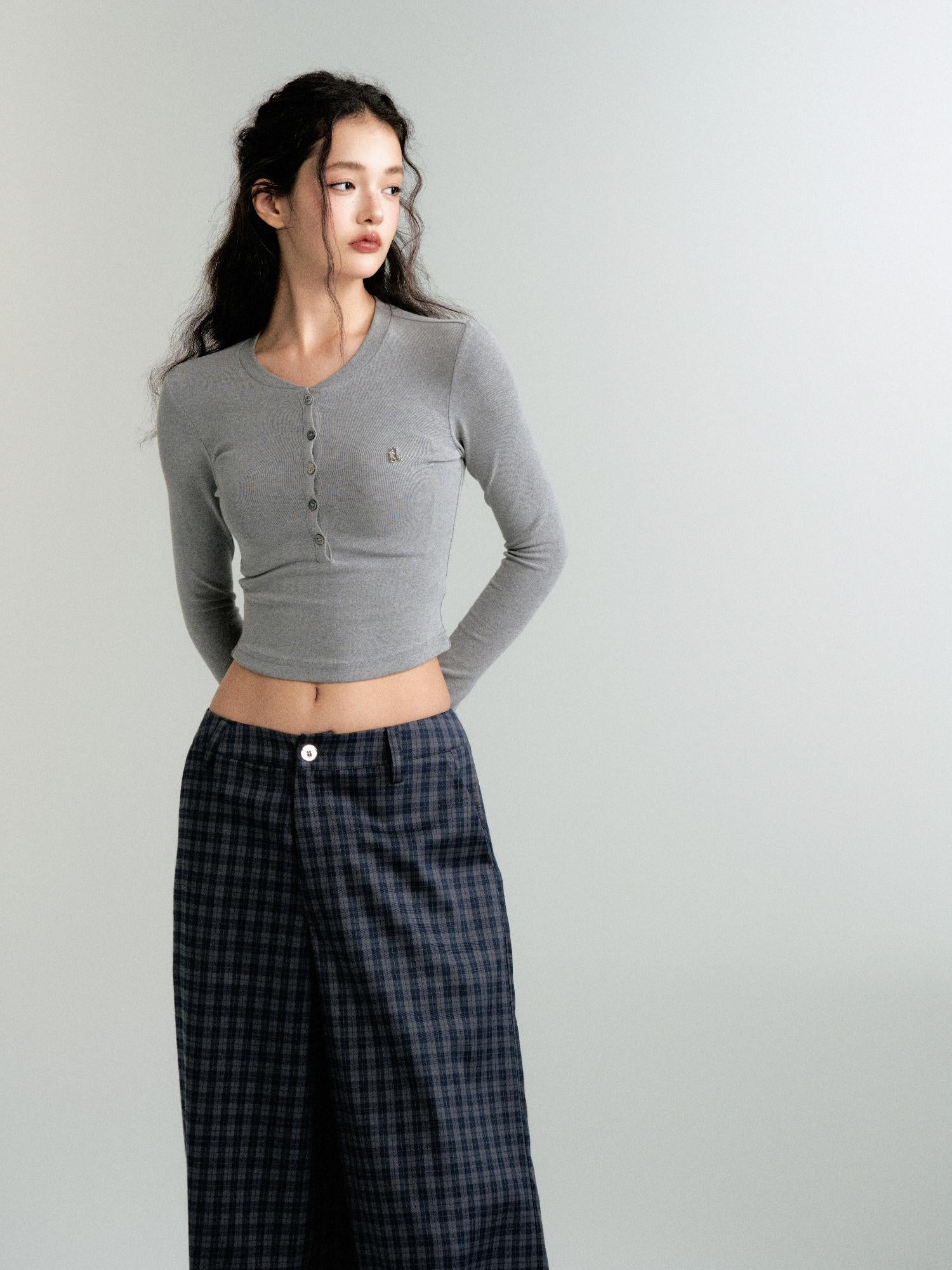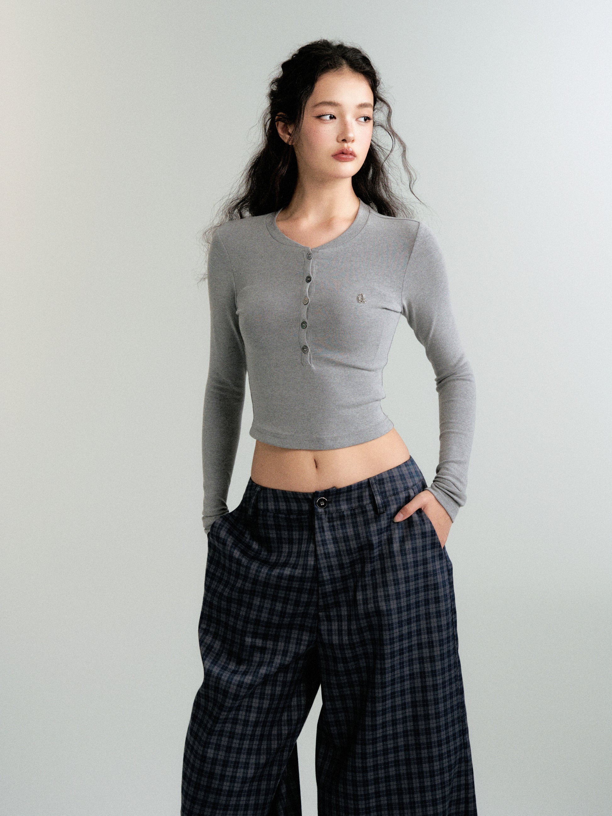 Henley Neck Slim Fit Cropped Knit T-Shirt