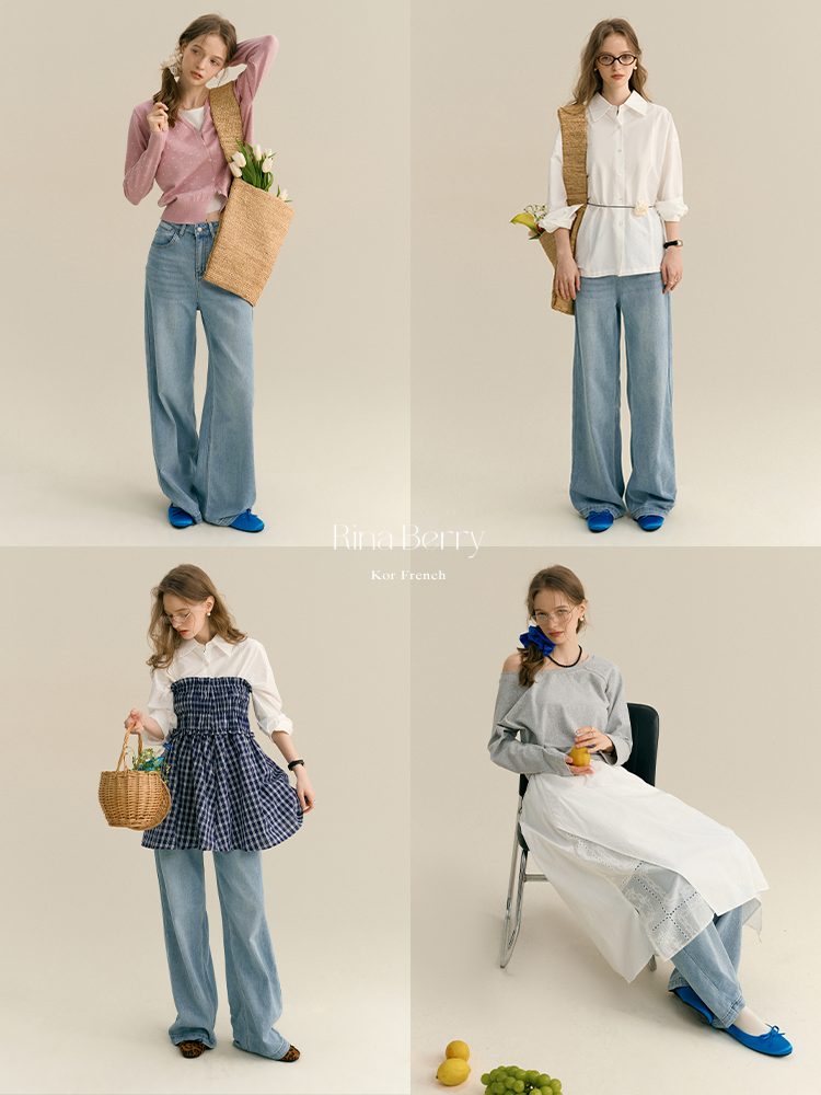 High-Waisted Washed Floor-Length Jeans