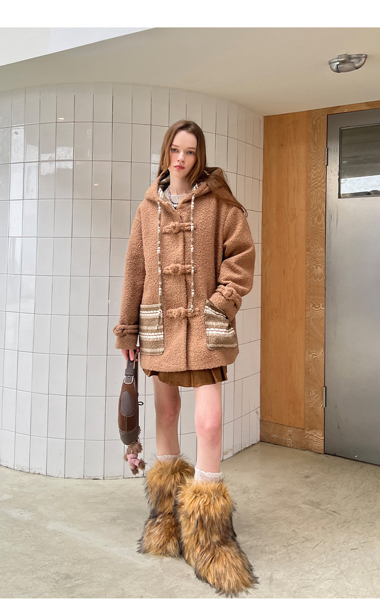 Hooded Striped Boucle Cotton Blend Short Jacket