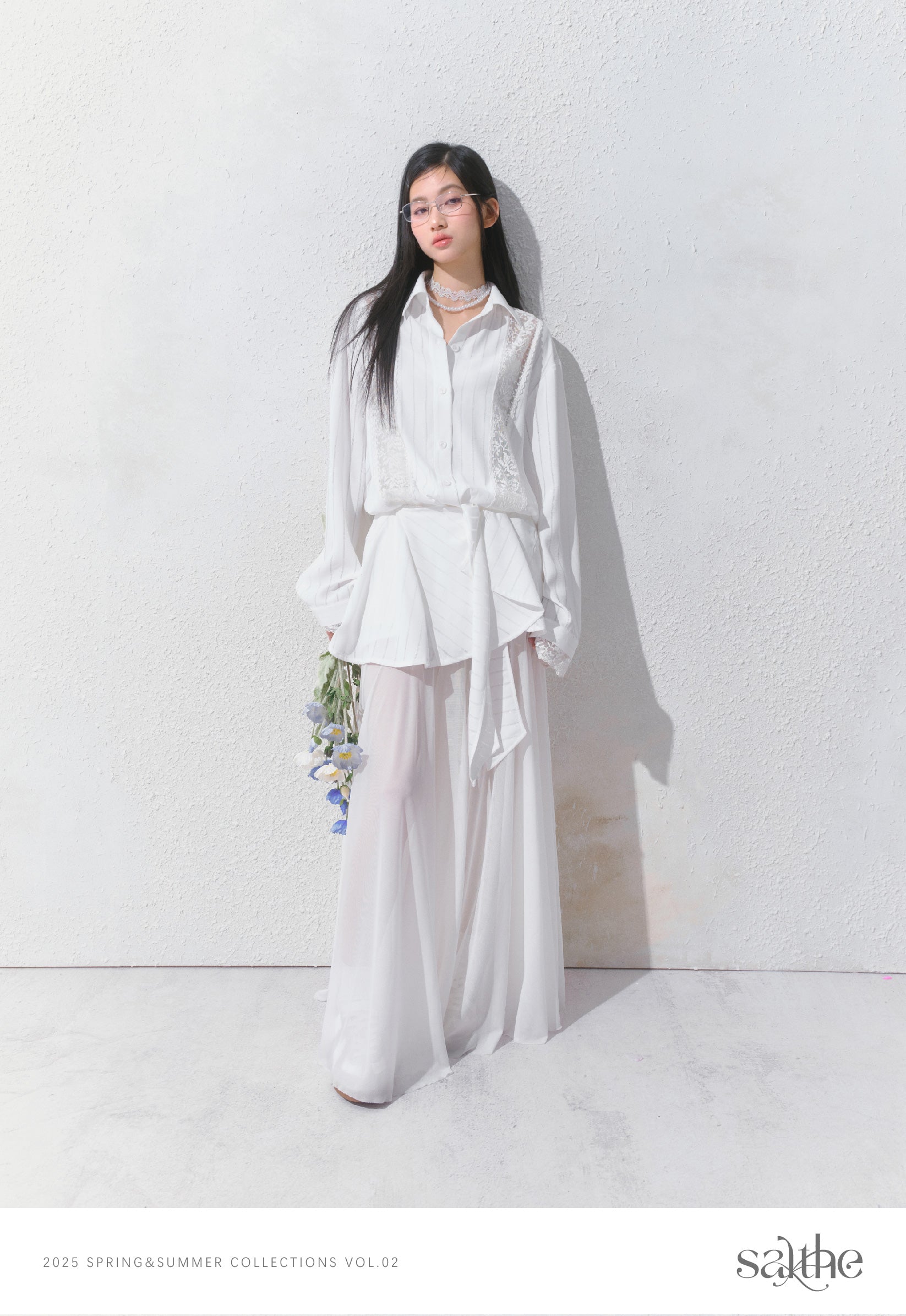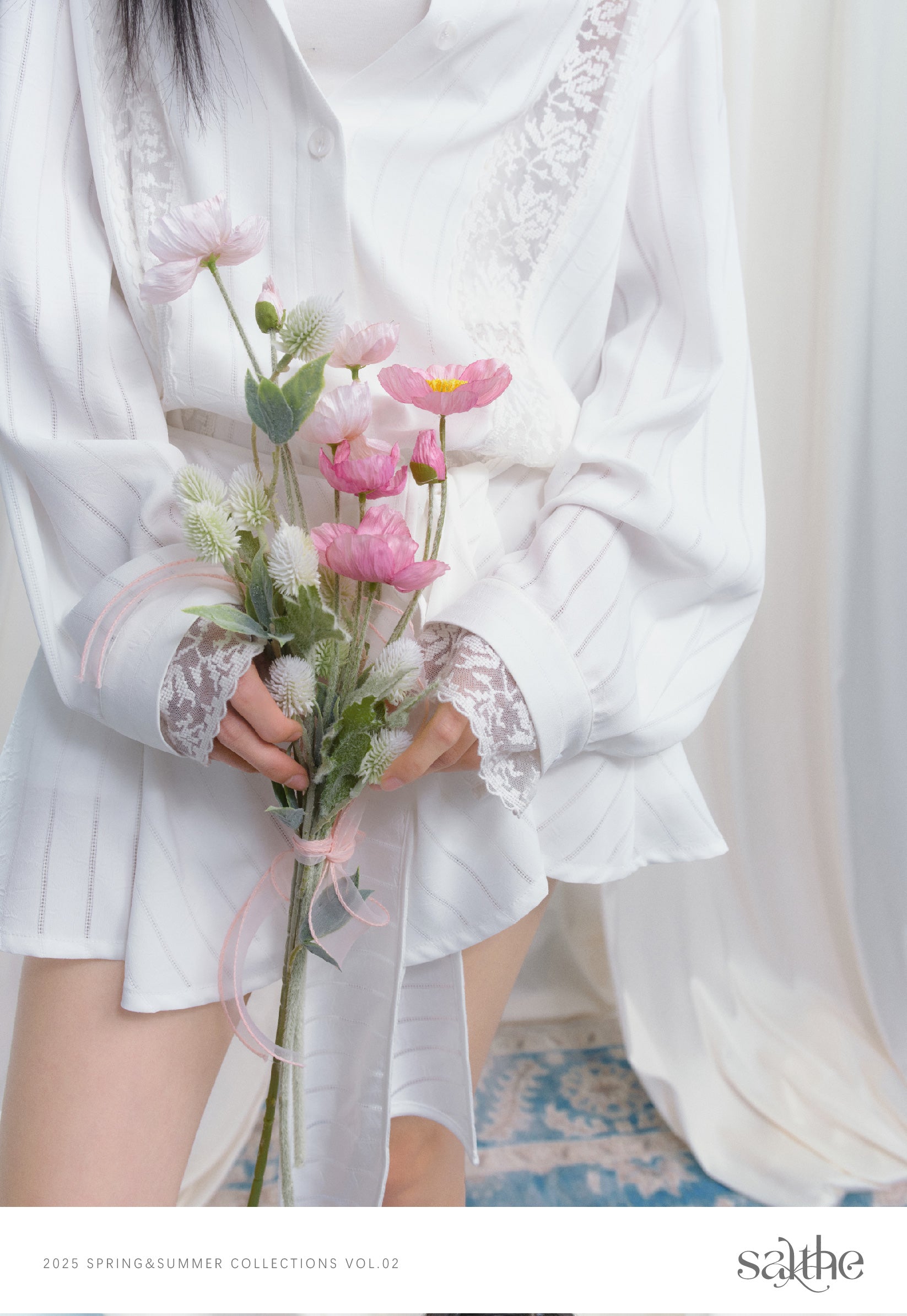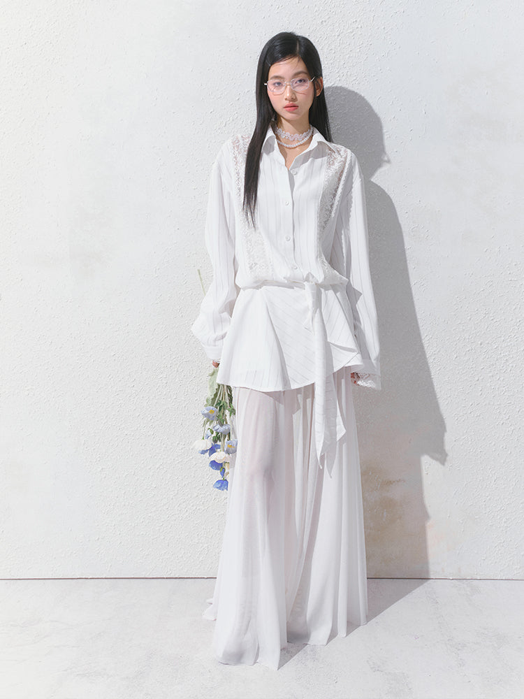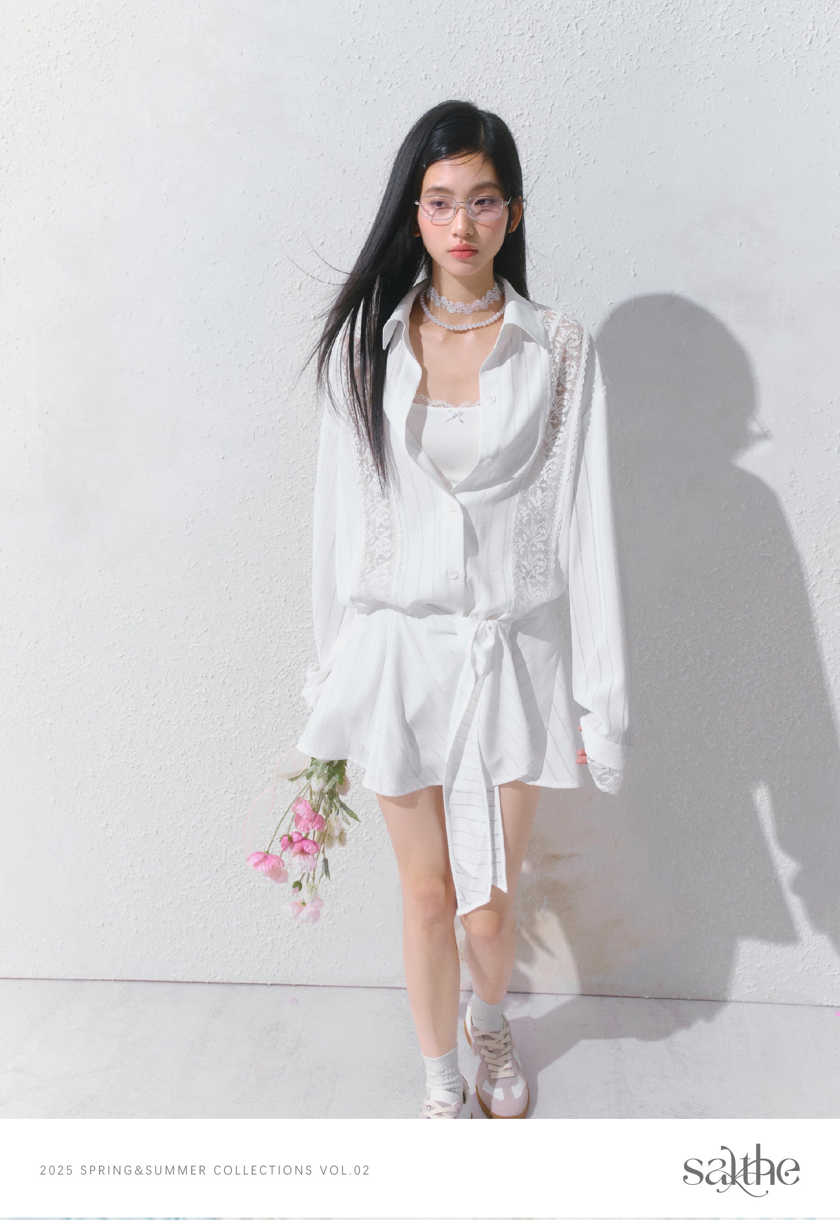 Lace Detail Striped Shirt & Detachable Apron Skirt Set