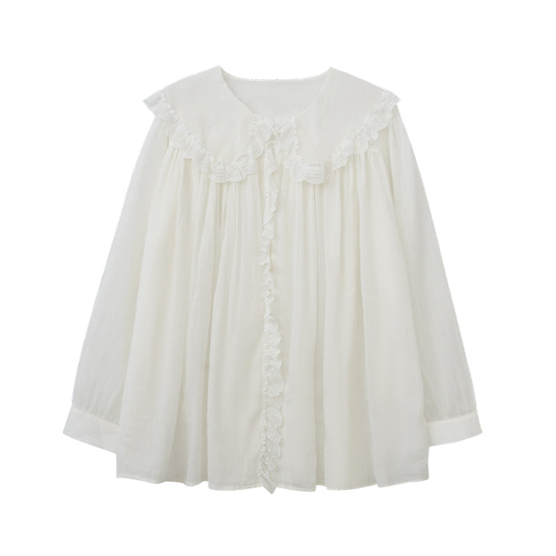 Lace Doll Collar Sheer Cotton Gauze Blouse