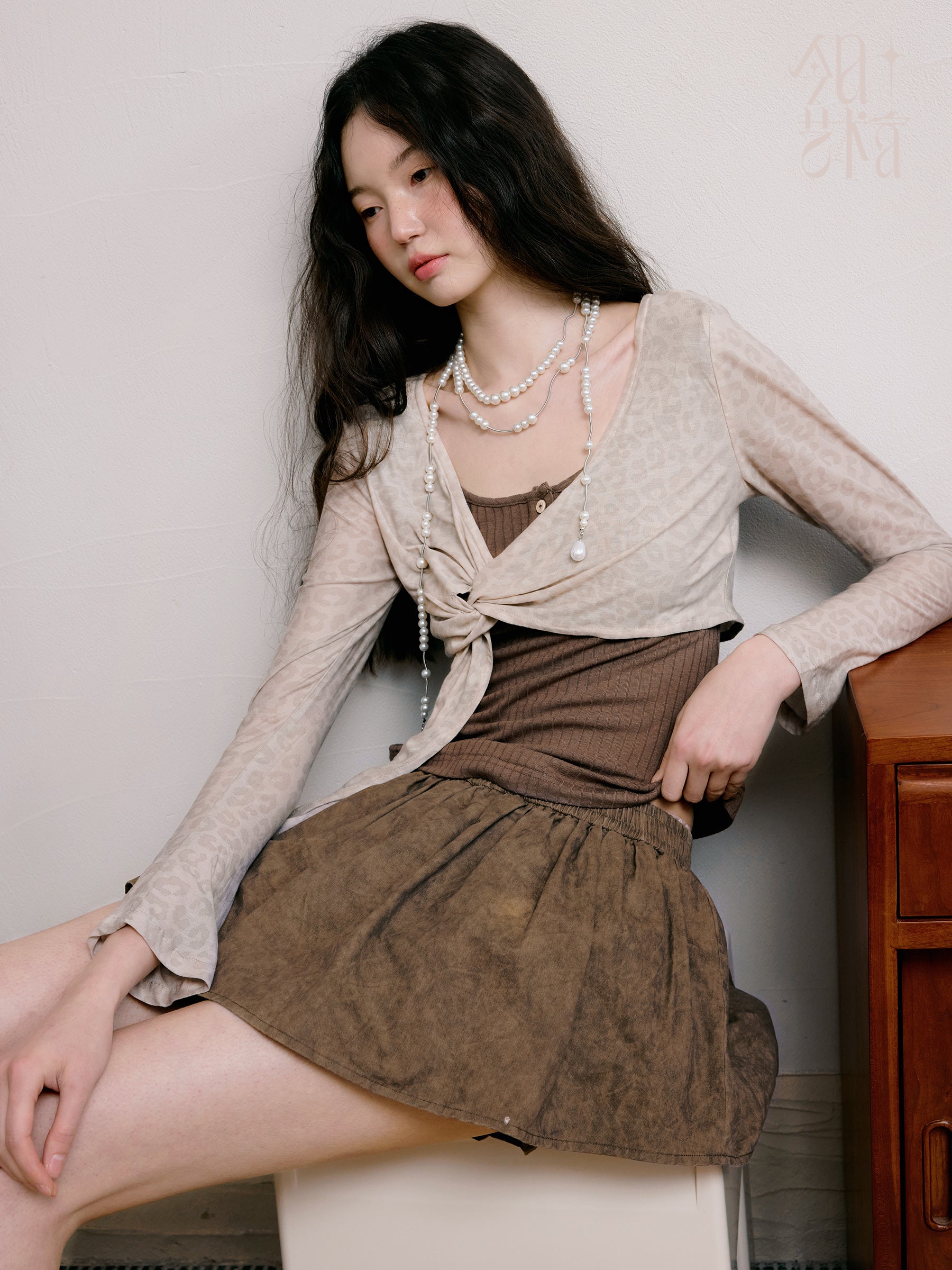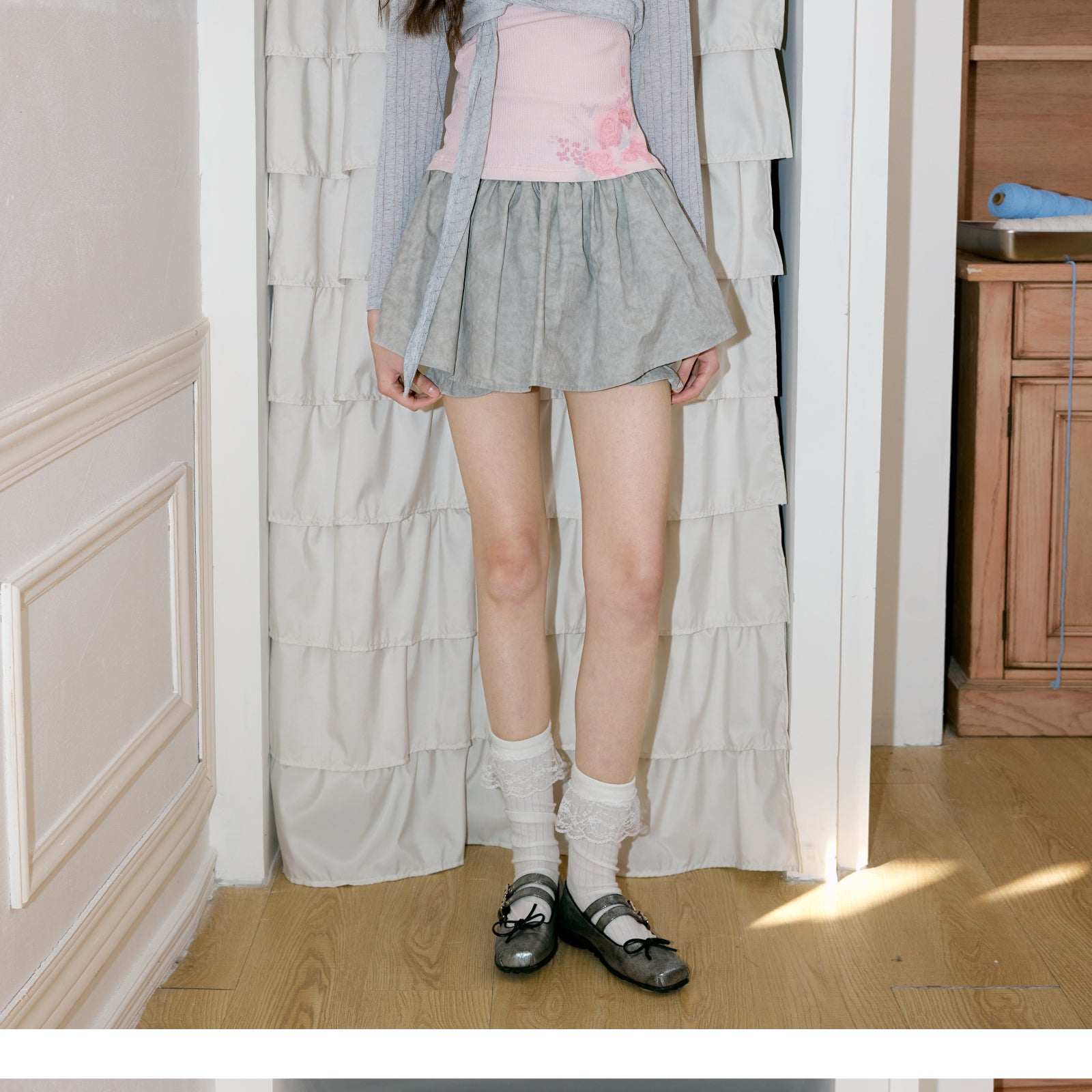 Layered Flare Skirt Pants In Washed Cotton