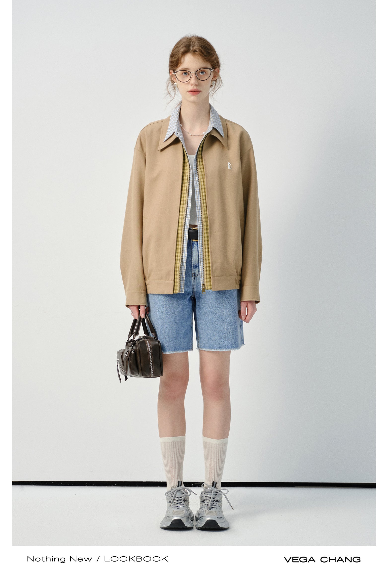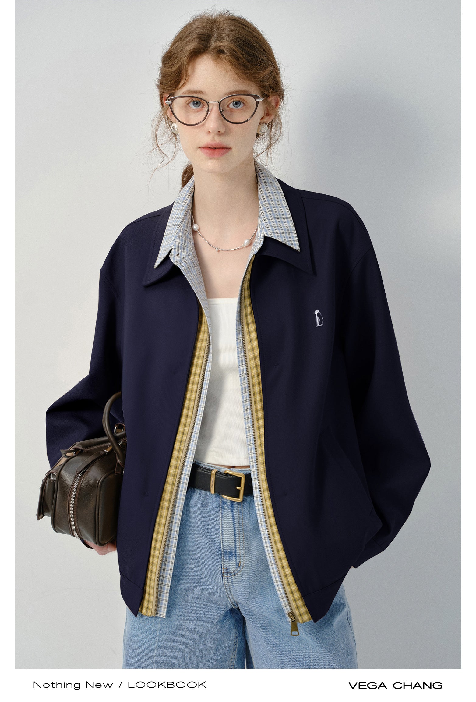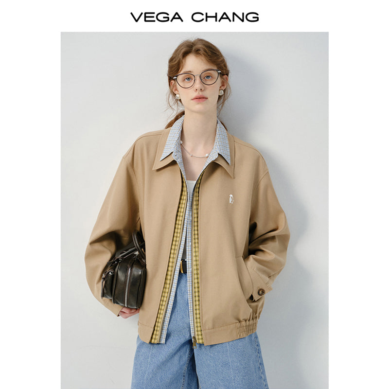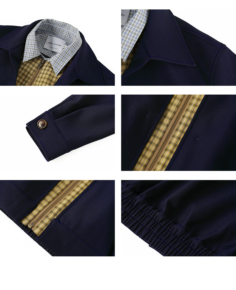Layered-Look Plaid Shirt Zip-Up Jacket