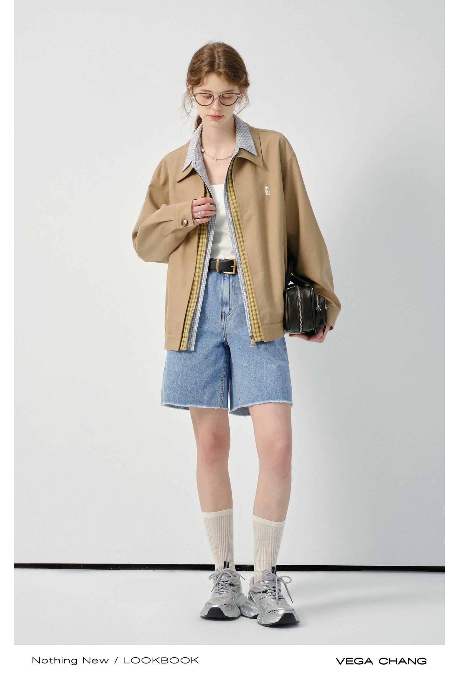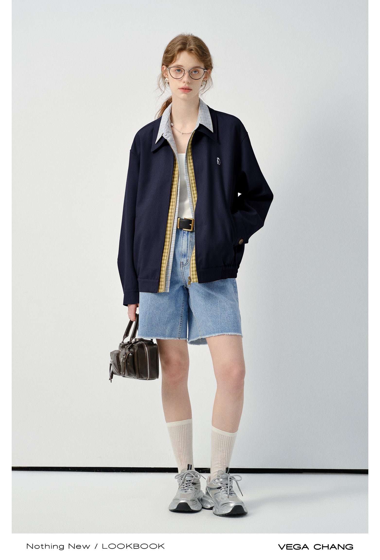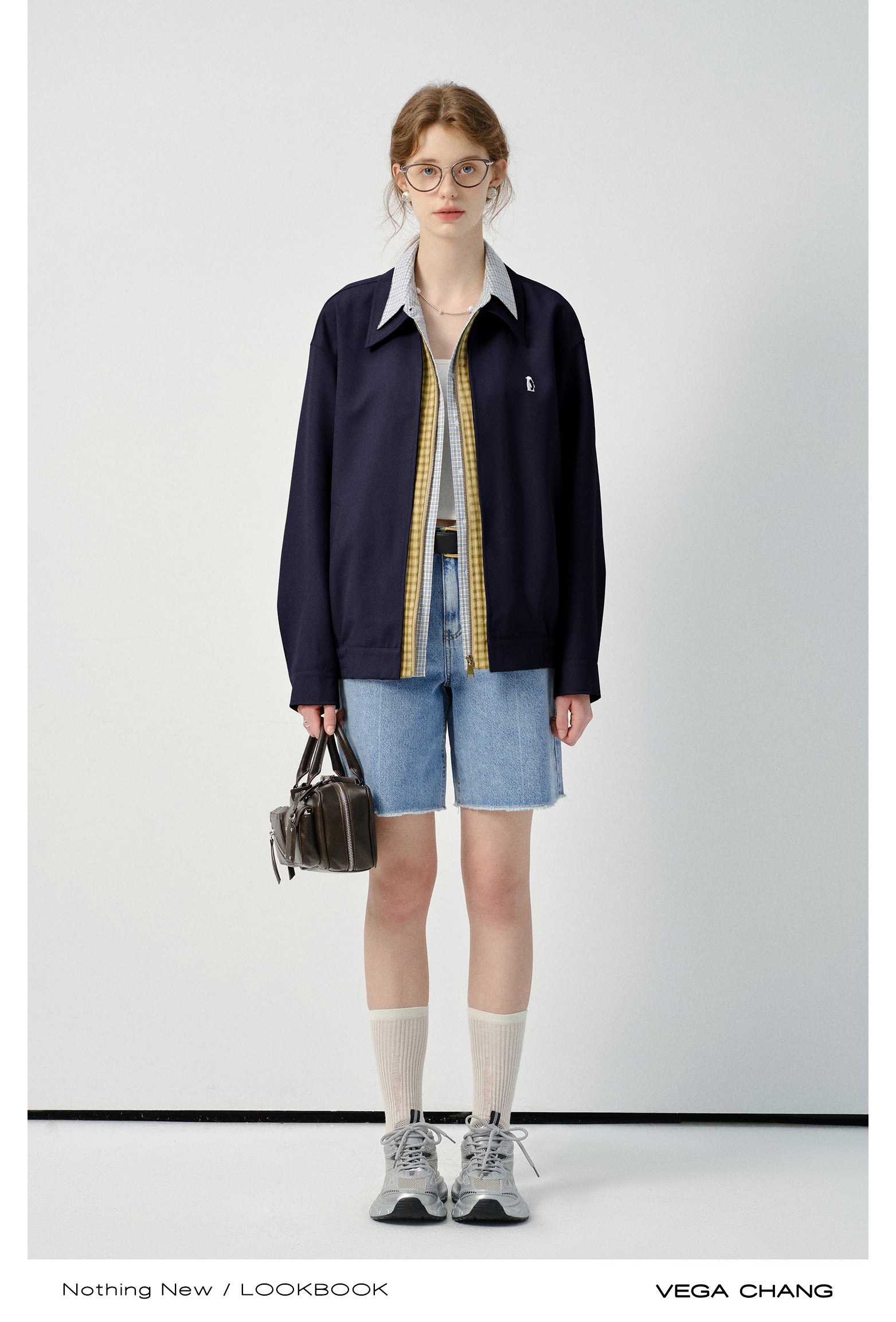 Layered-Look Plaid Shirt Zip-Up Jacket