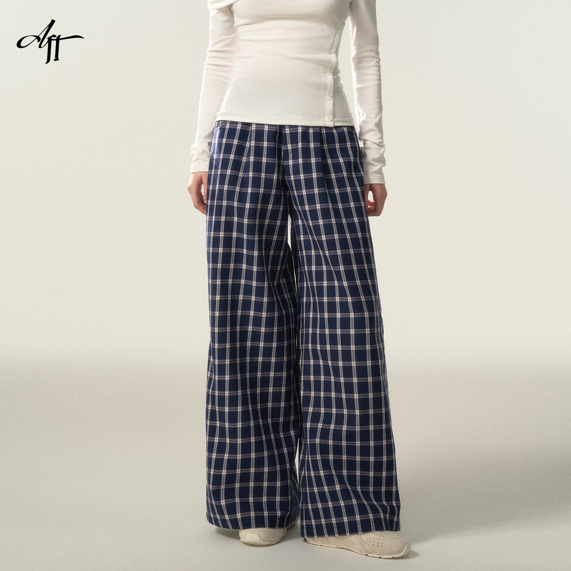 Low-Rise Relaxed Plaid Wide-Leg Pants