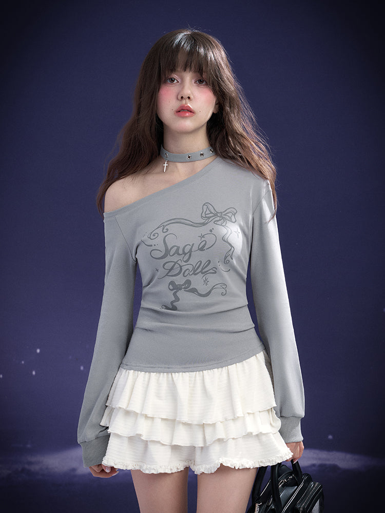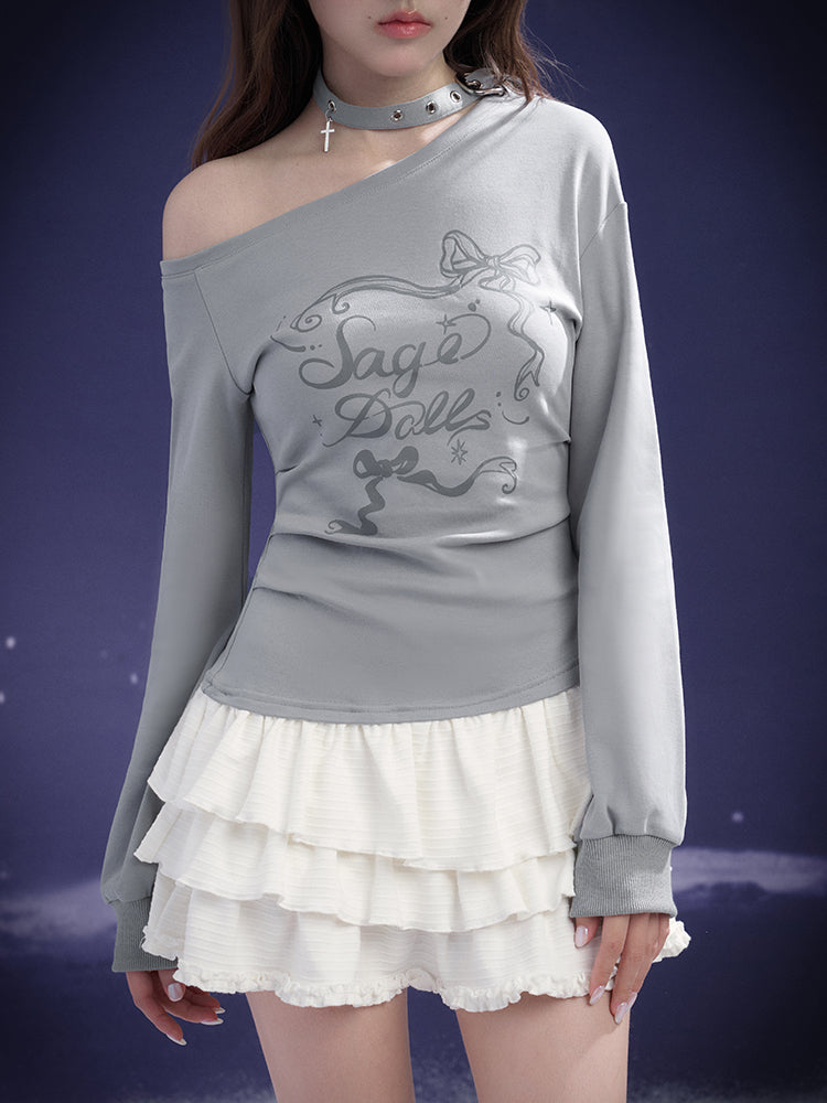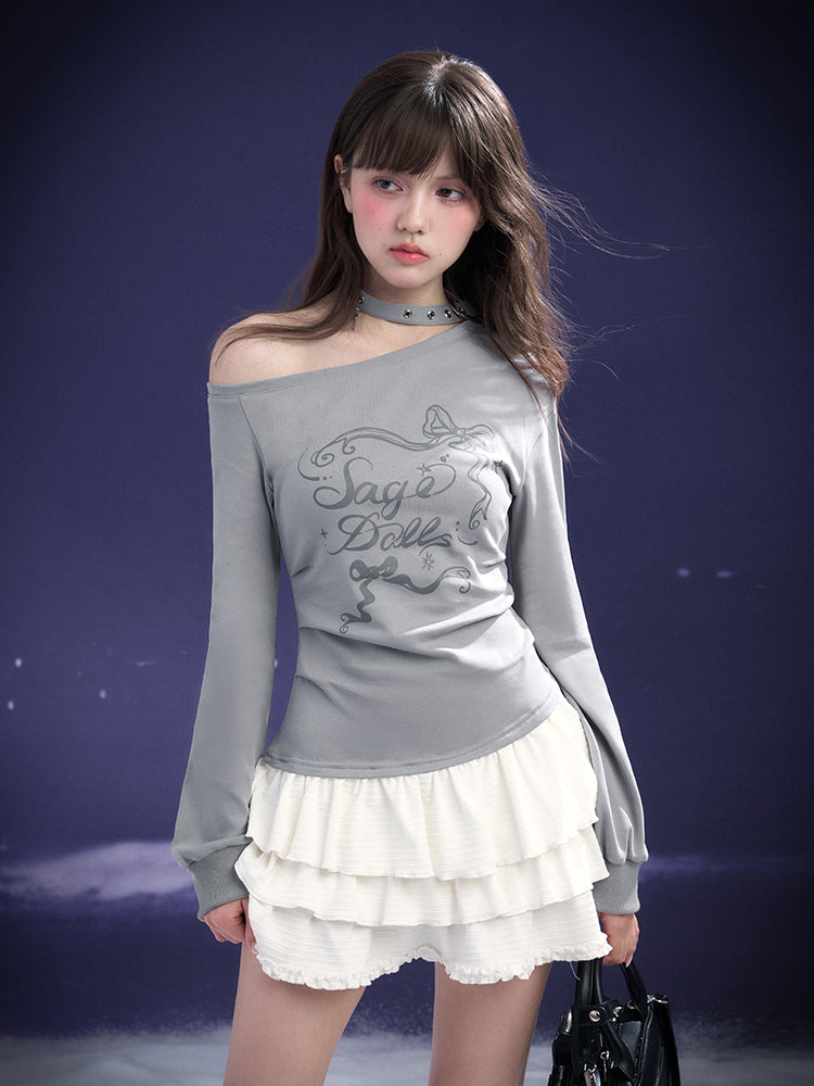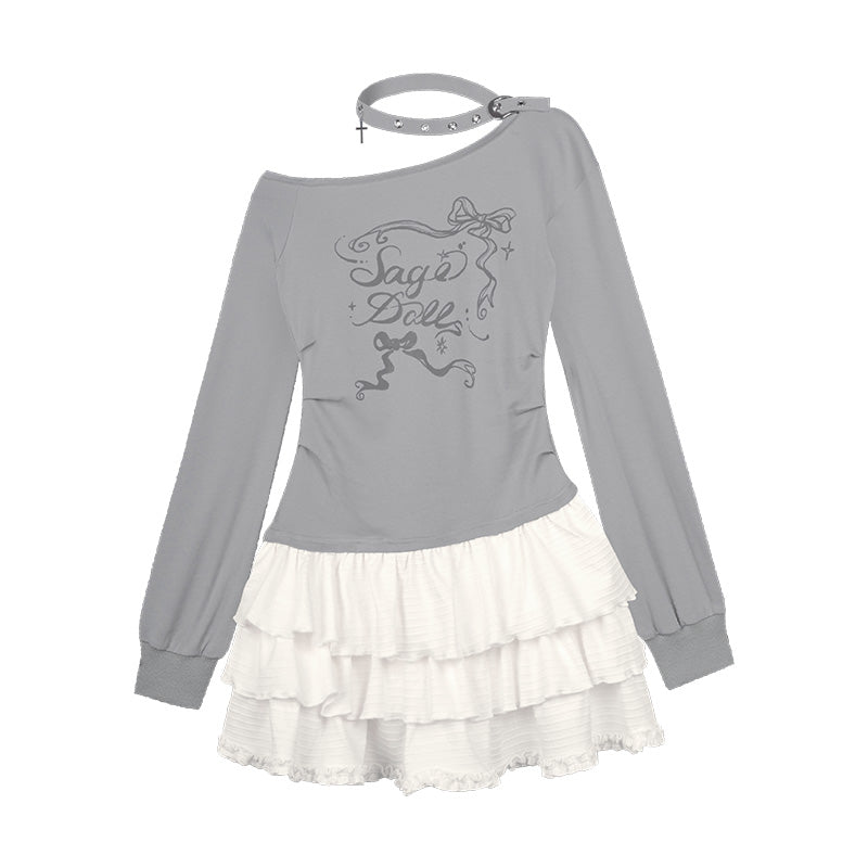 One Shoulder Ruffle Printed Dress With Choker Belt