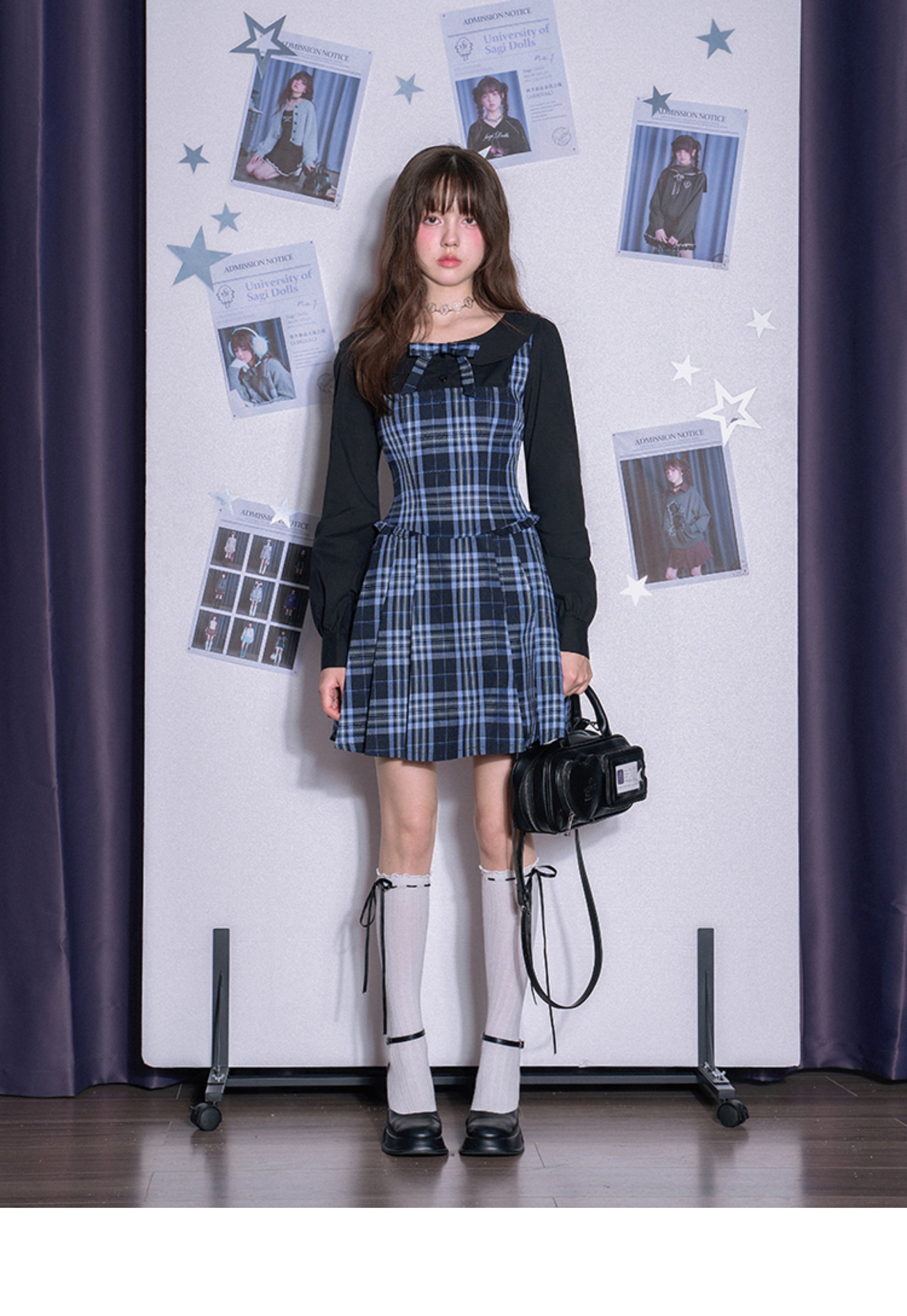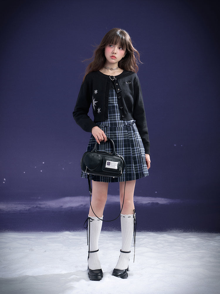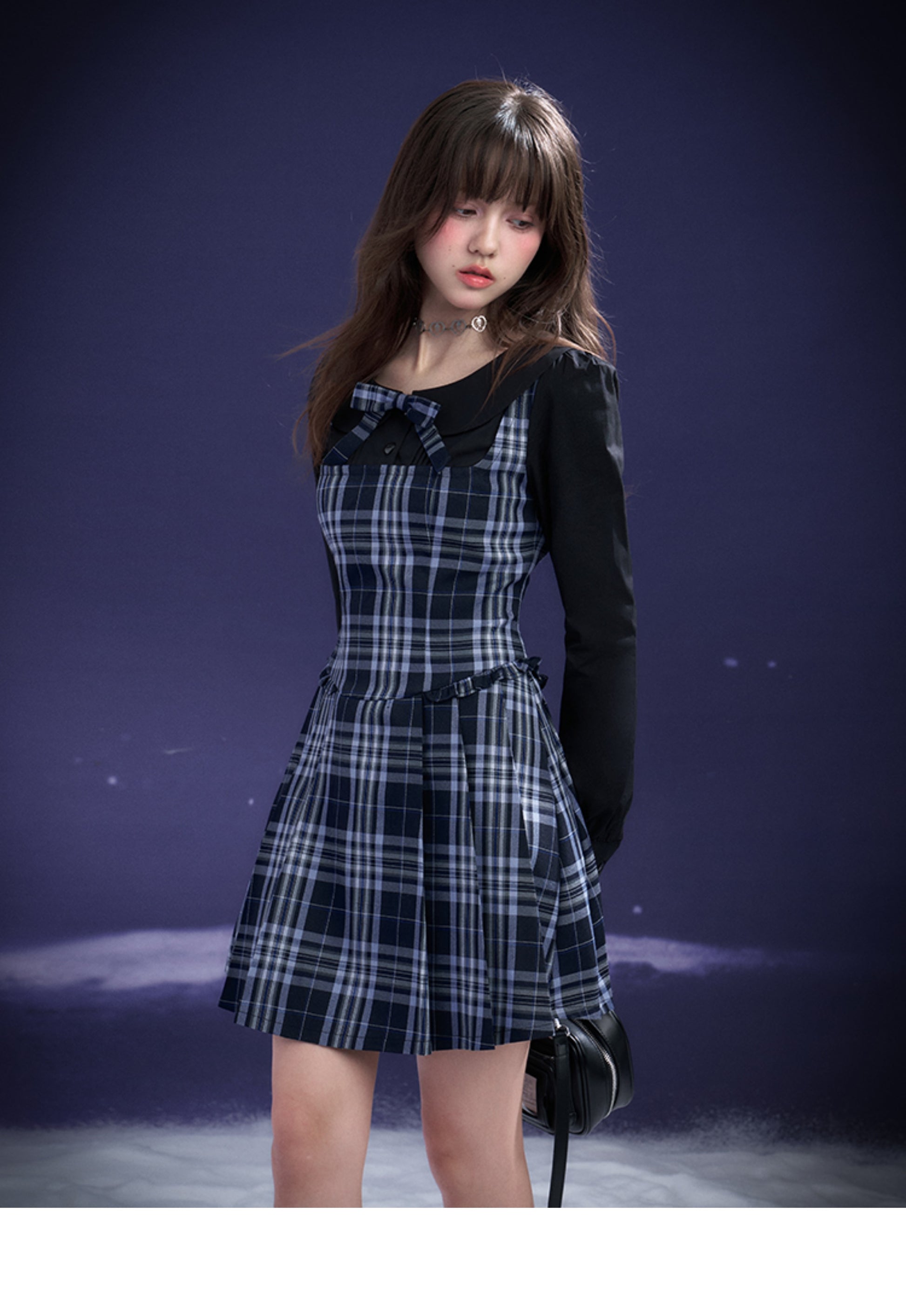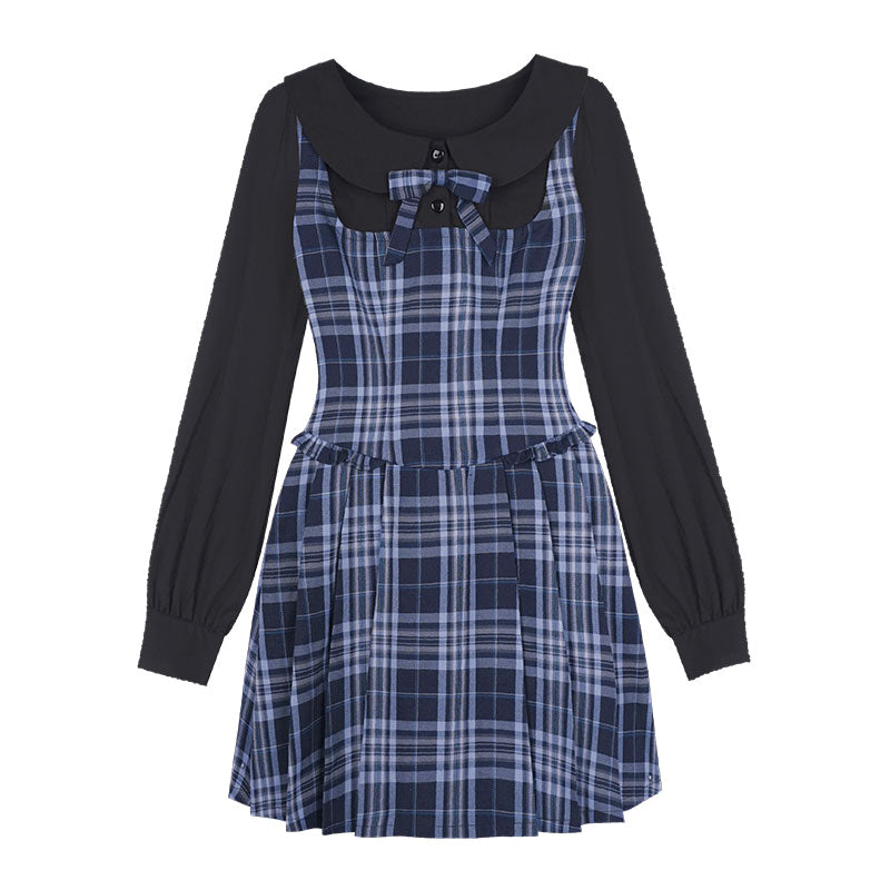Peter Pan Collar Plaid Faux Layered Pleated Dress