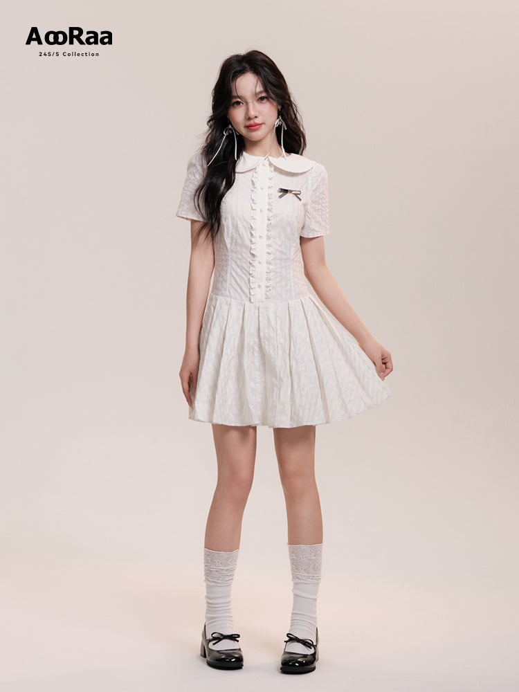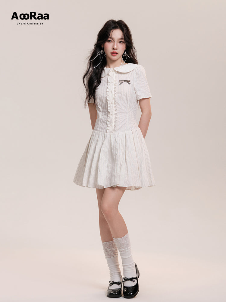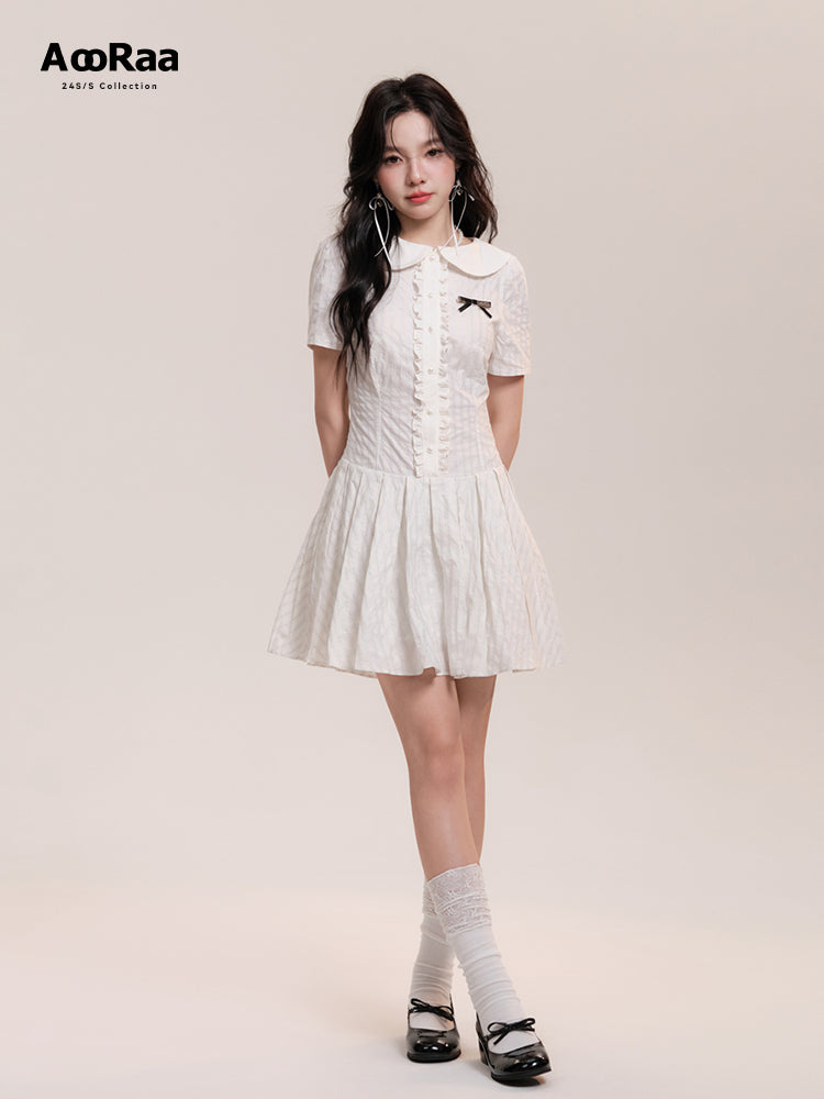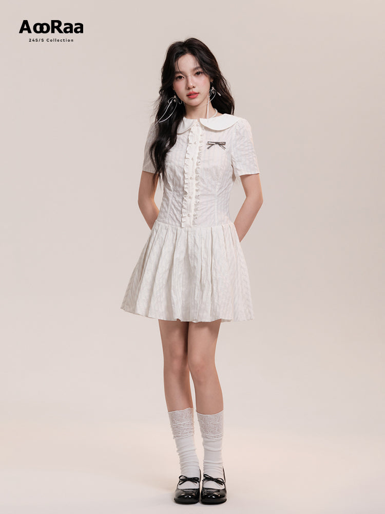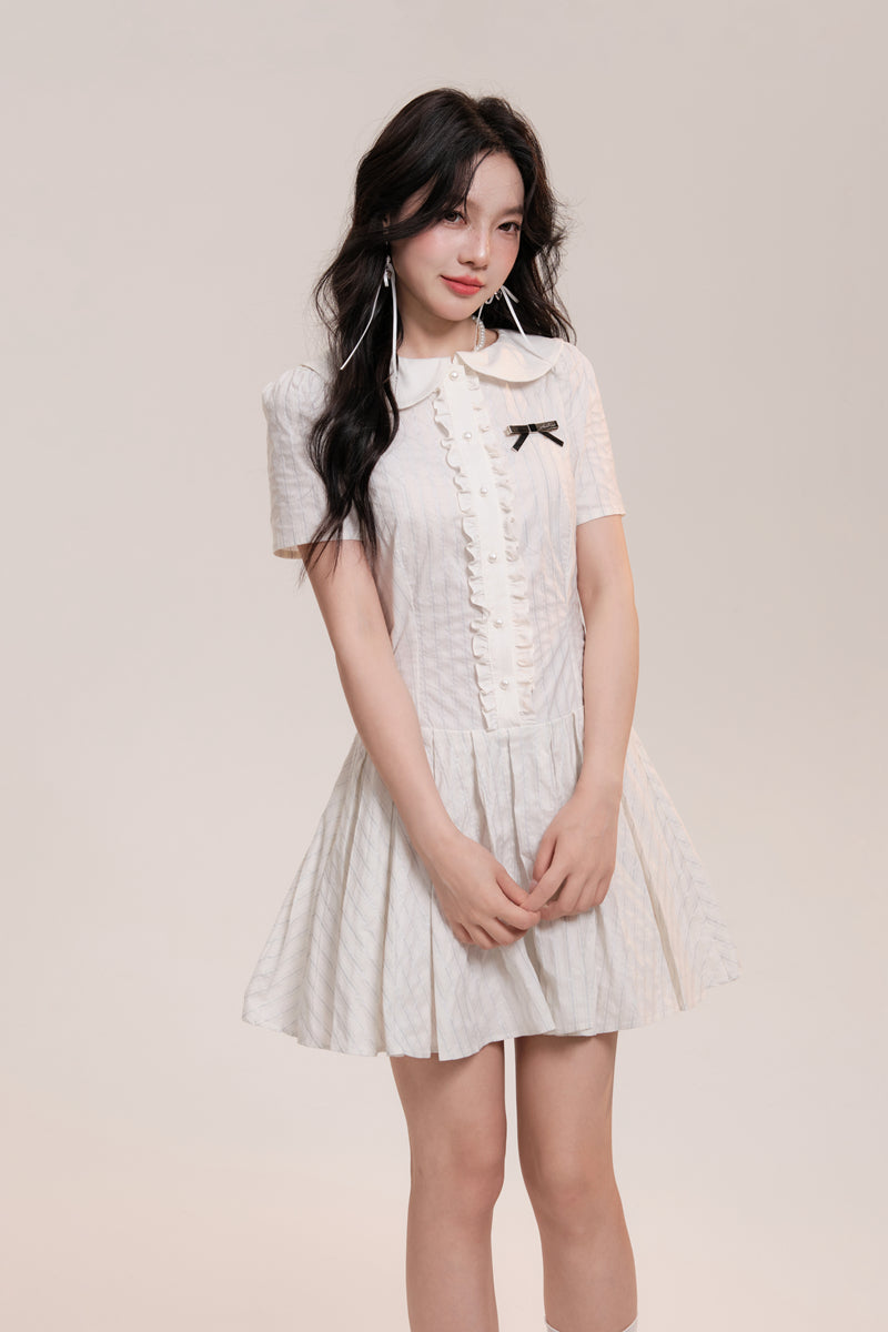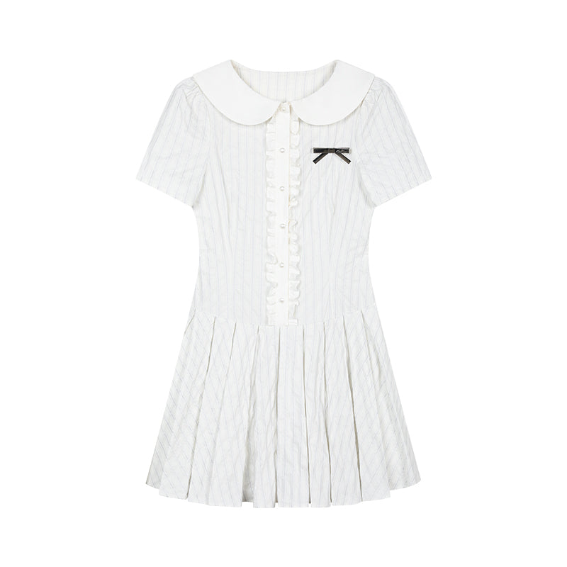 Peter Pan Collar Pleated Stripe Shirt Dress