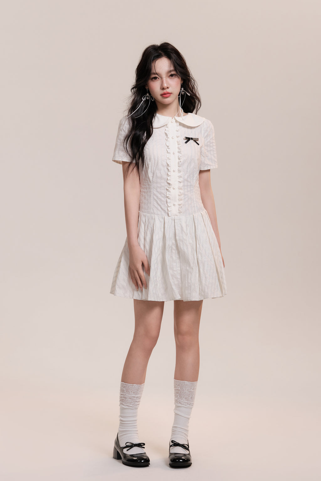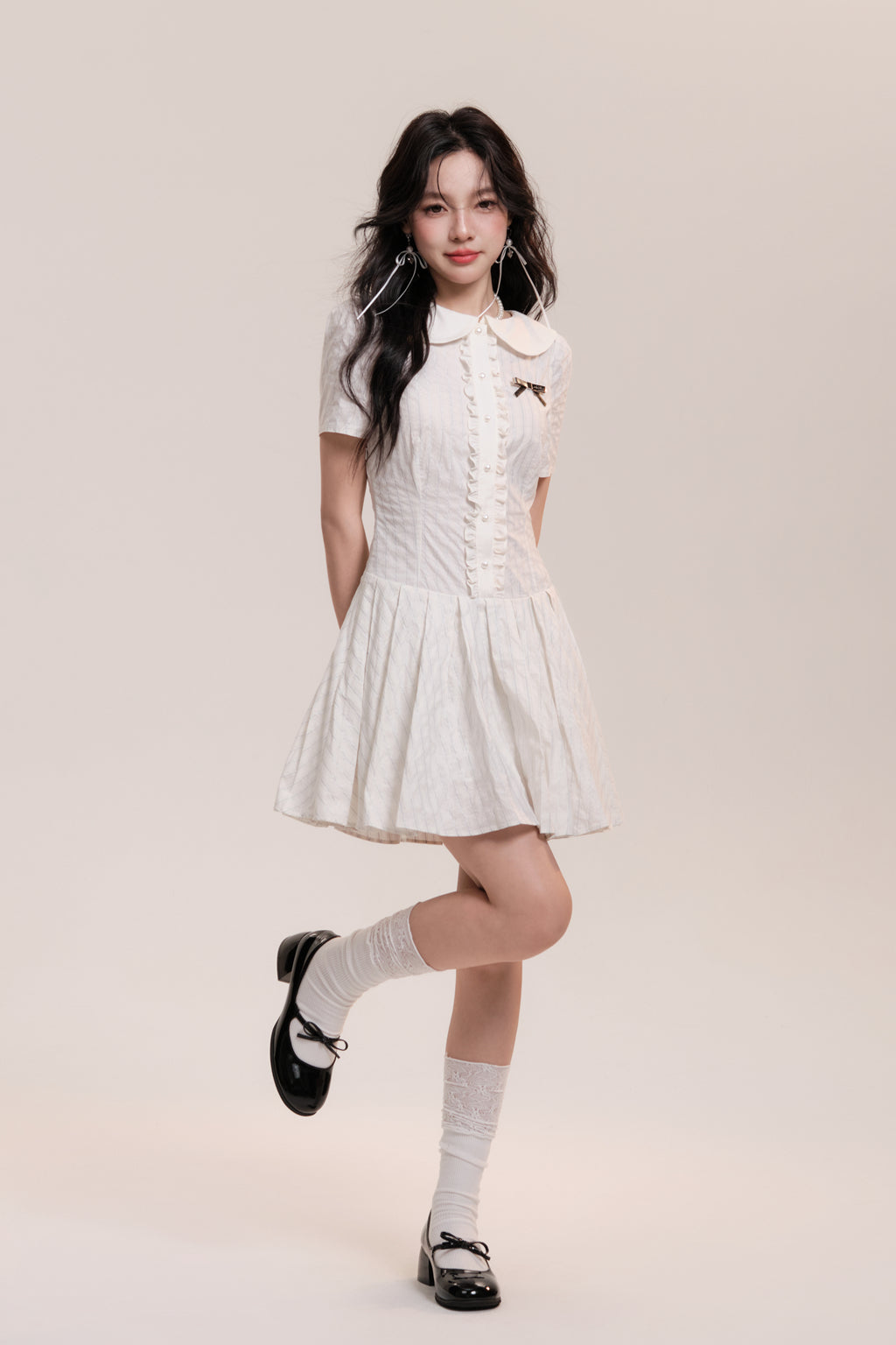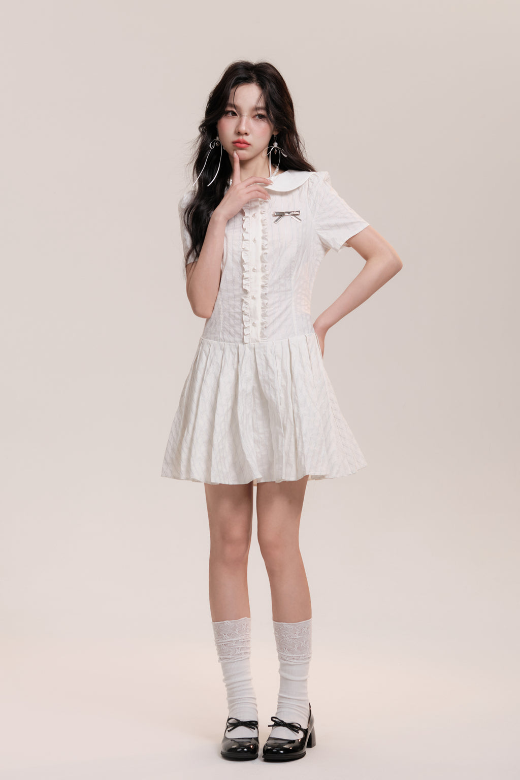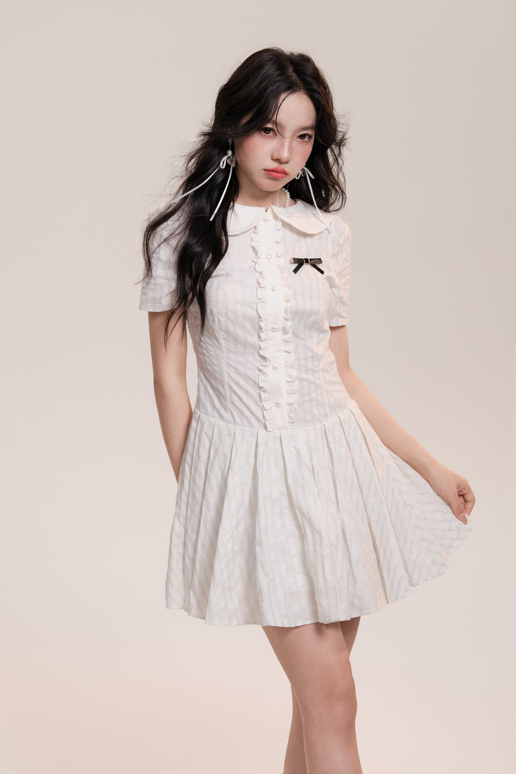 Peter Pan Collar Pleated Stripe Shirt Dress