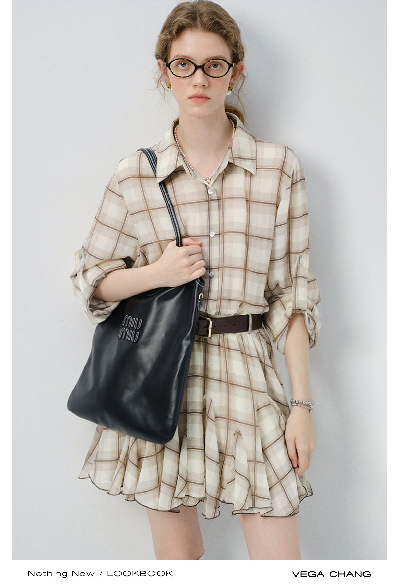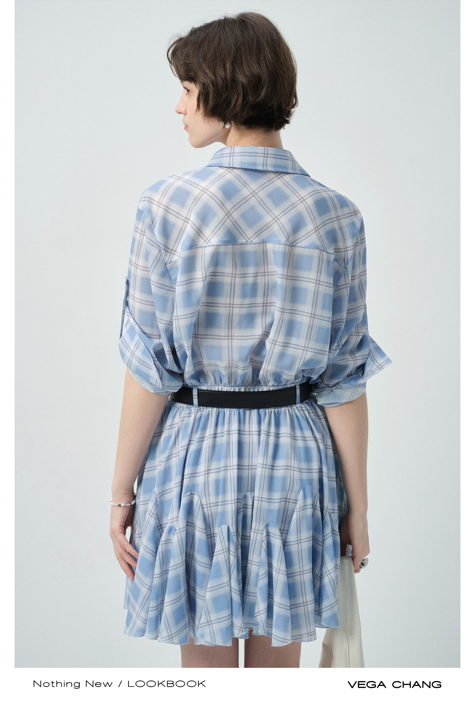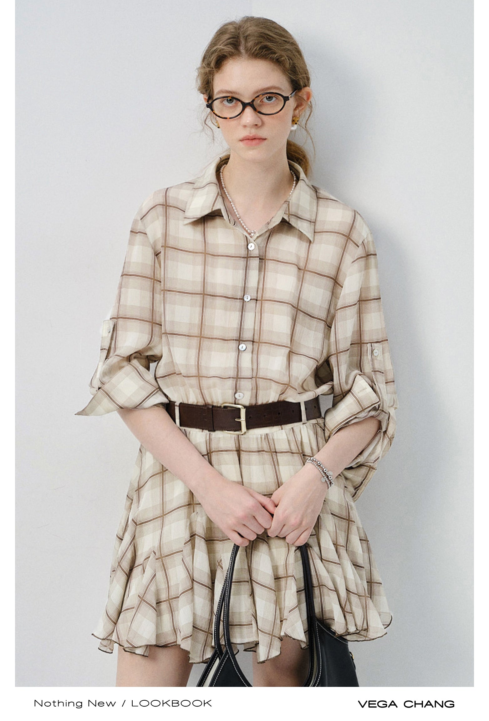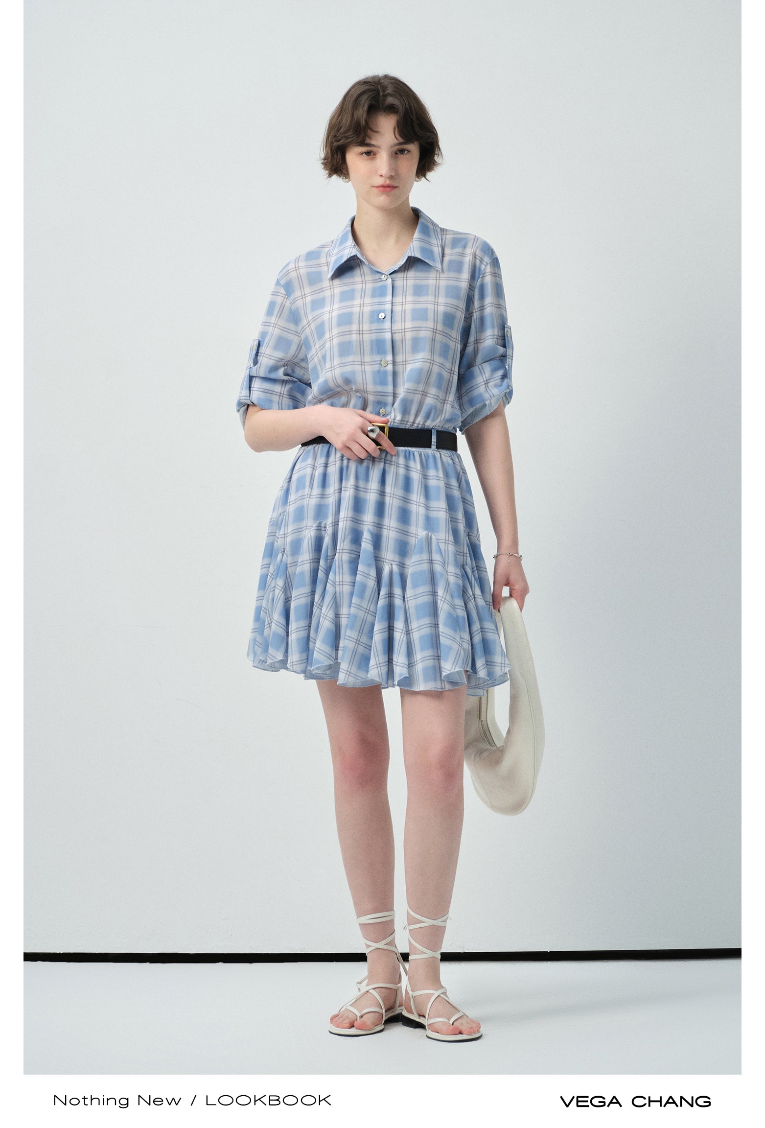 Plaid Ruffled Hem Dress With Strap Sleeves