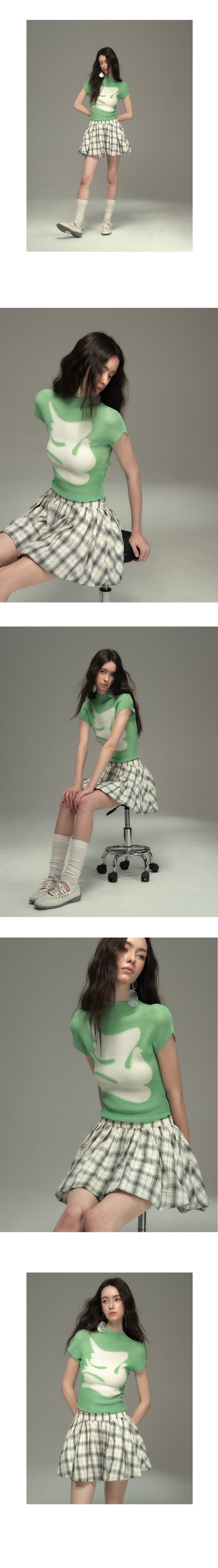 Pleated Fitted Mock Neck T-Shirt With Bird Motif