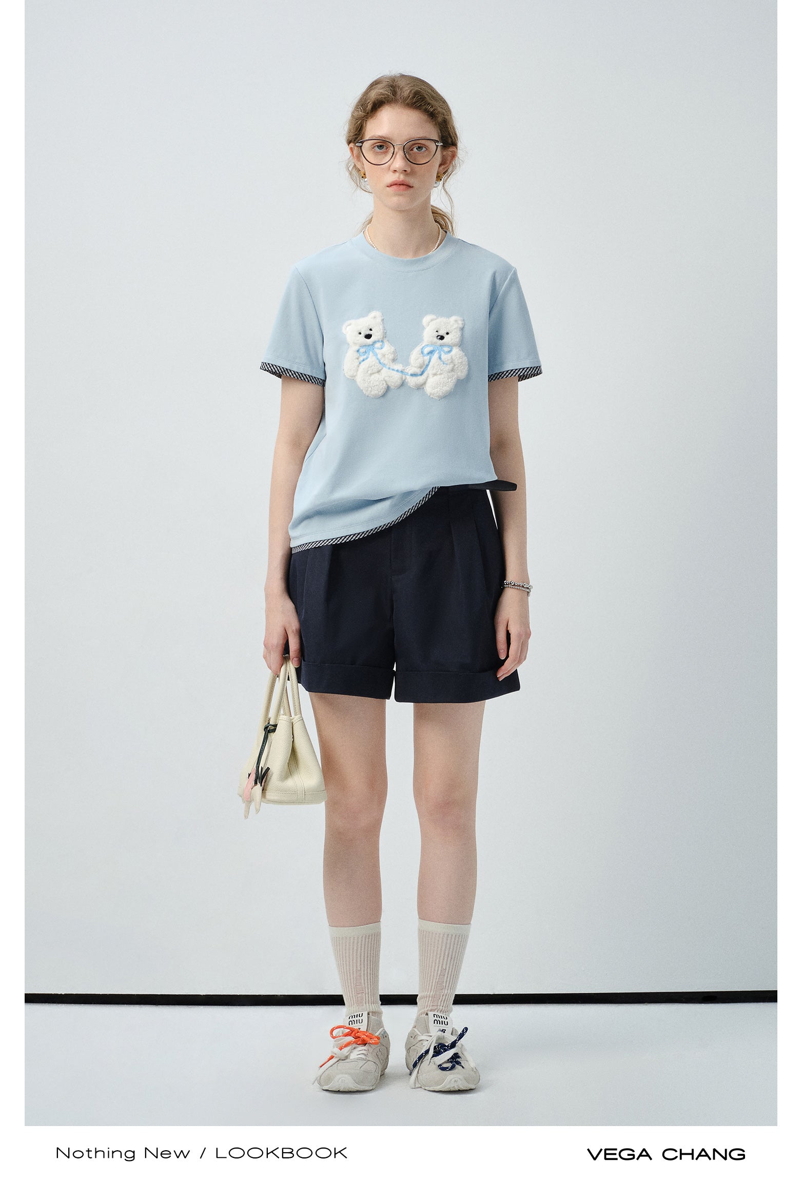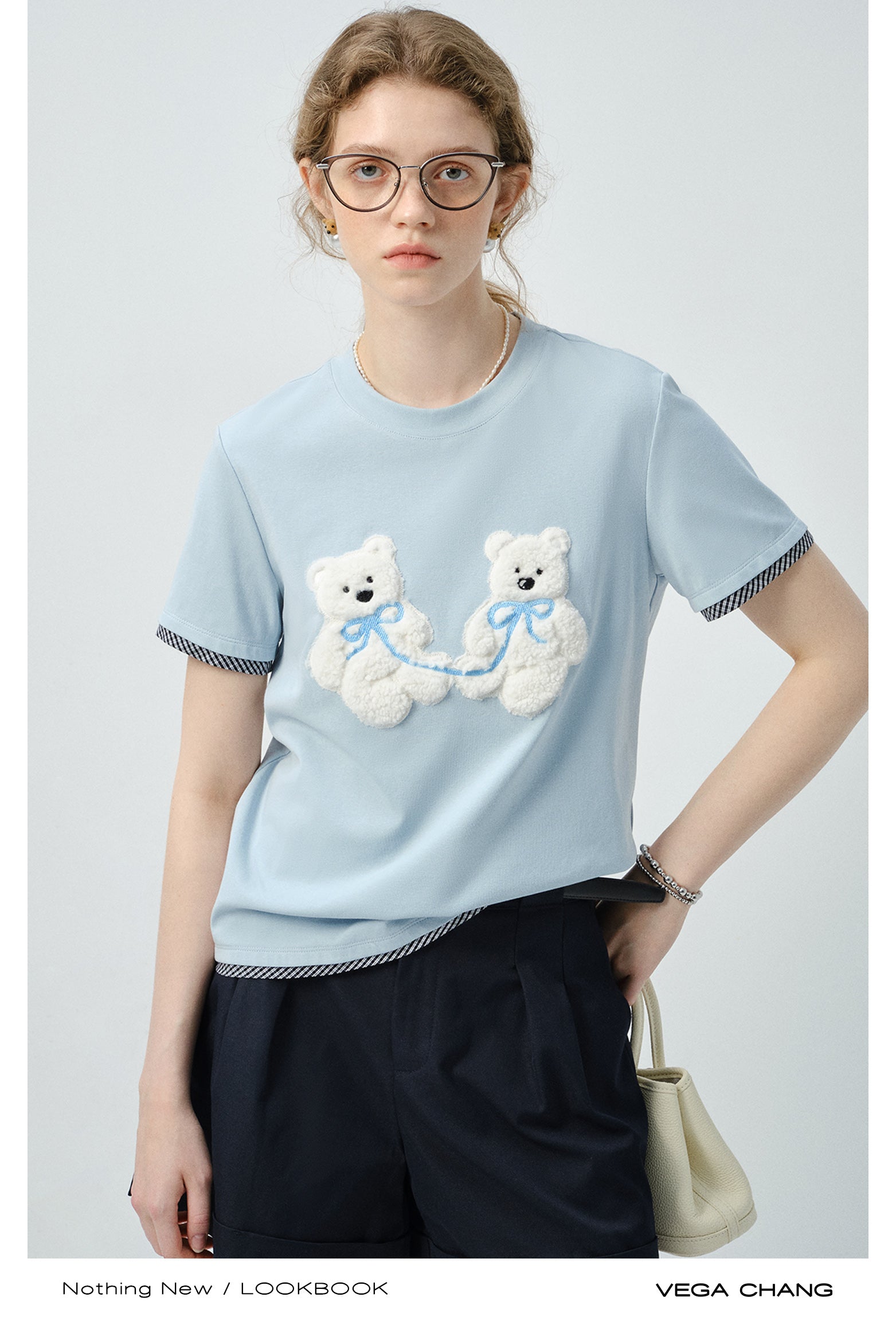 Plush Teddy Appliqué T-Shirt With Plaid Trim