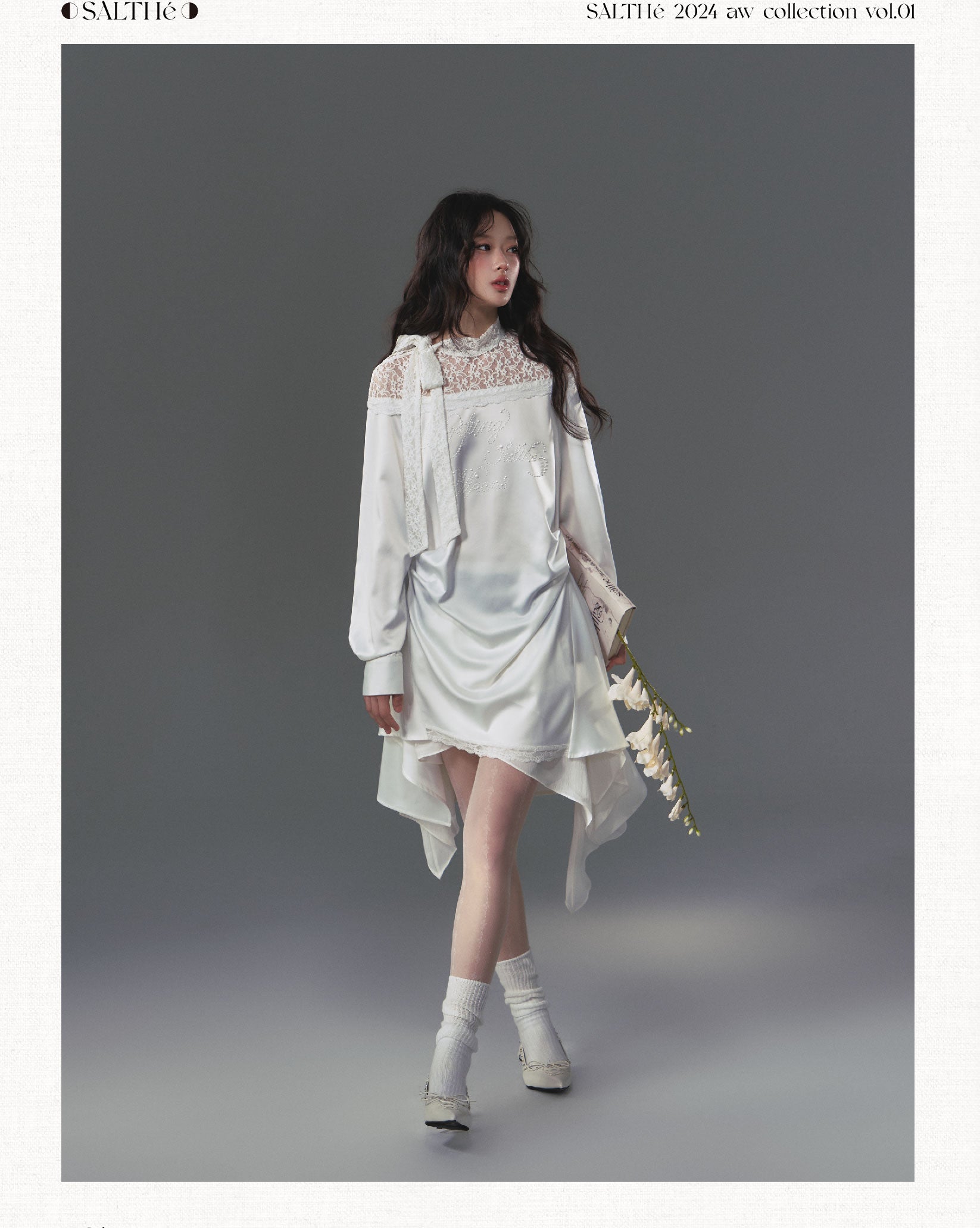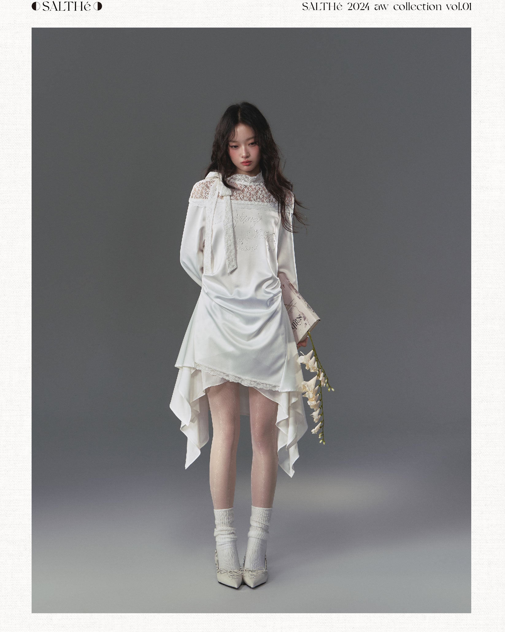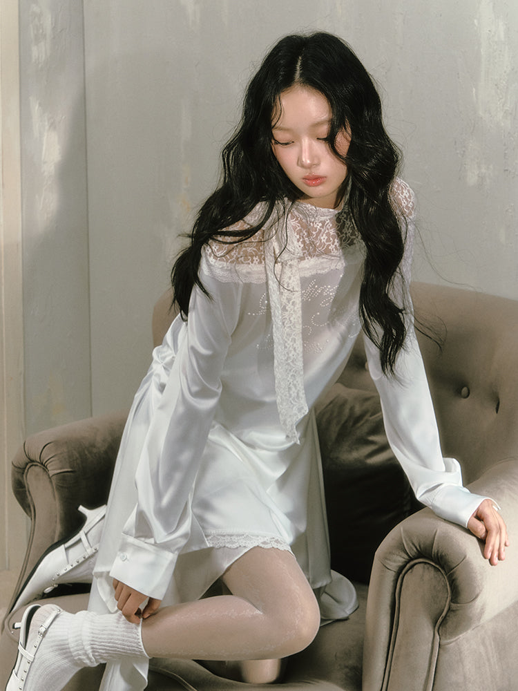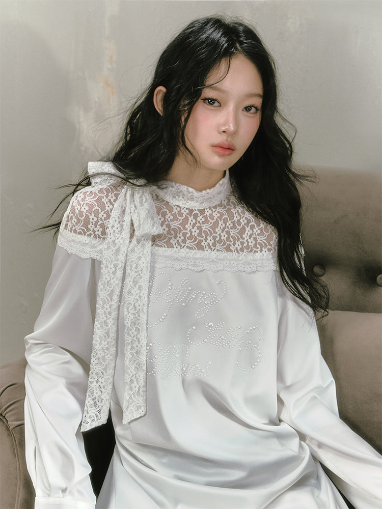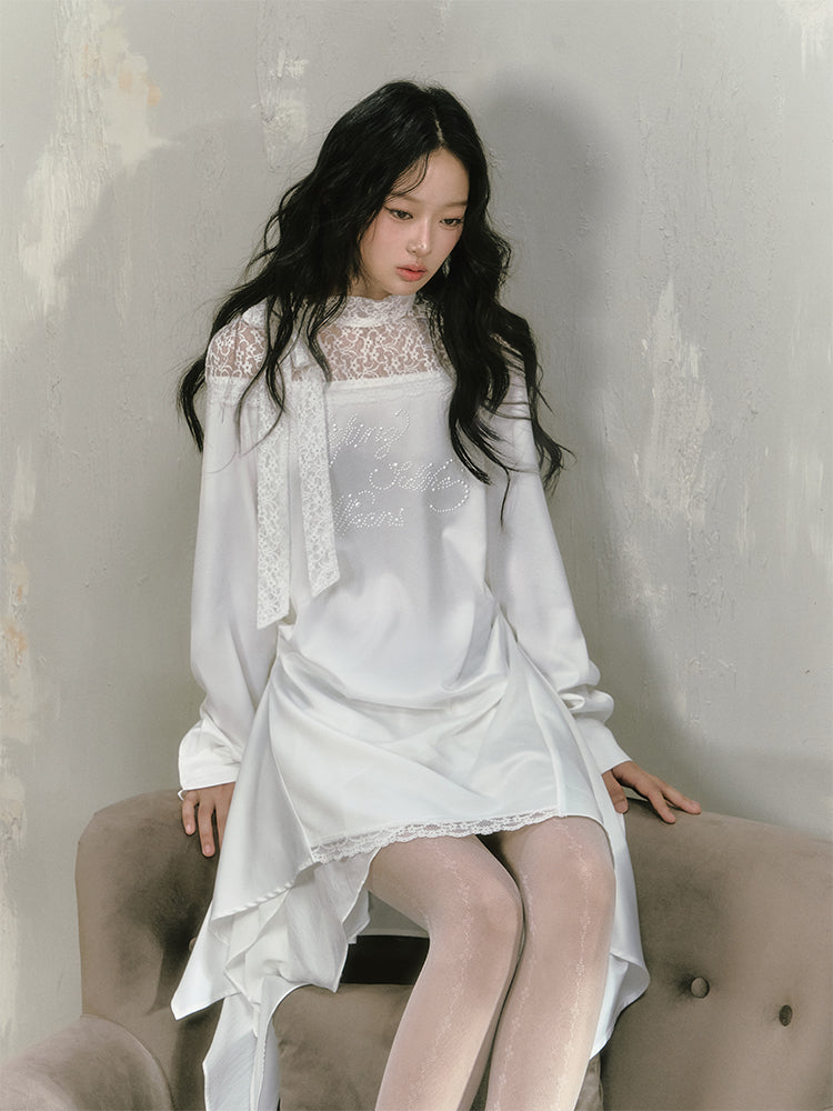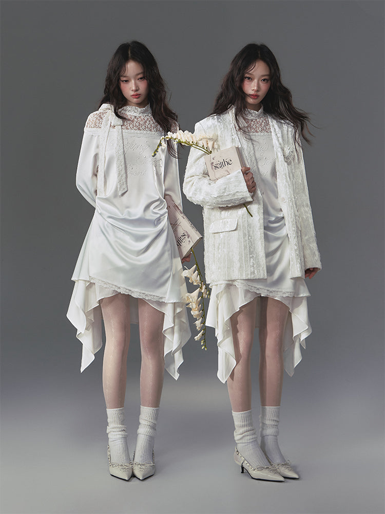 Poetic Faux Pearl Satin Lace Asymmetric Dress