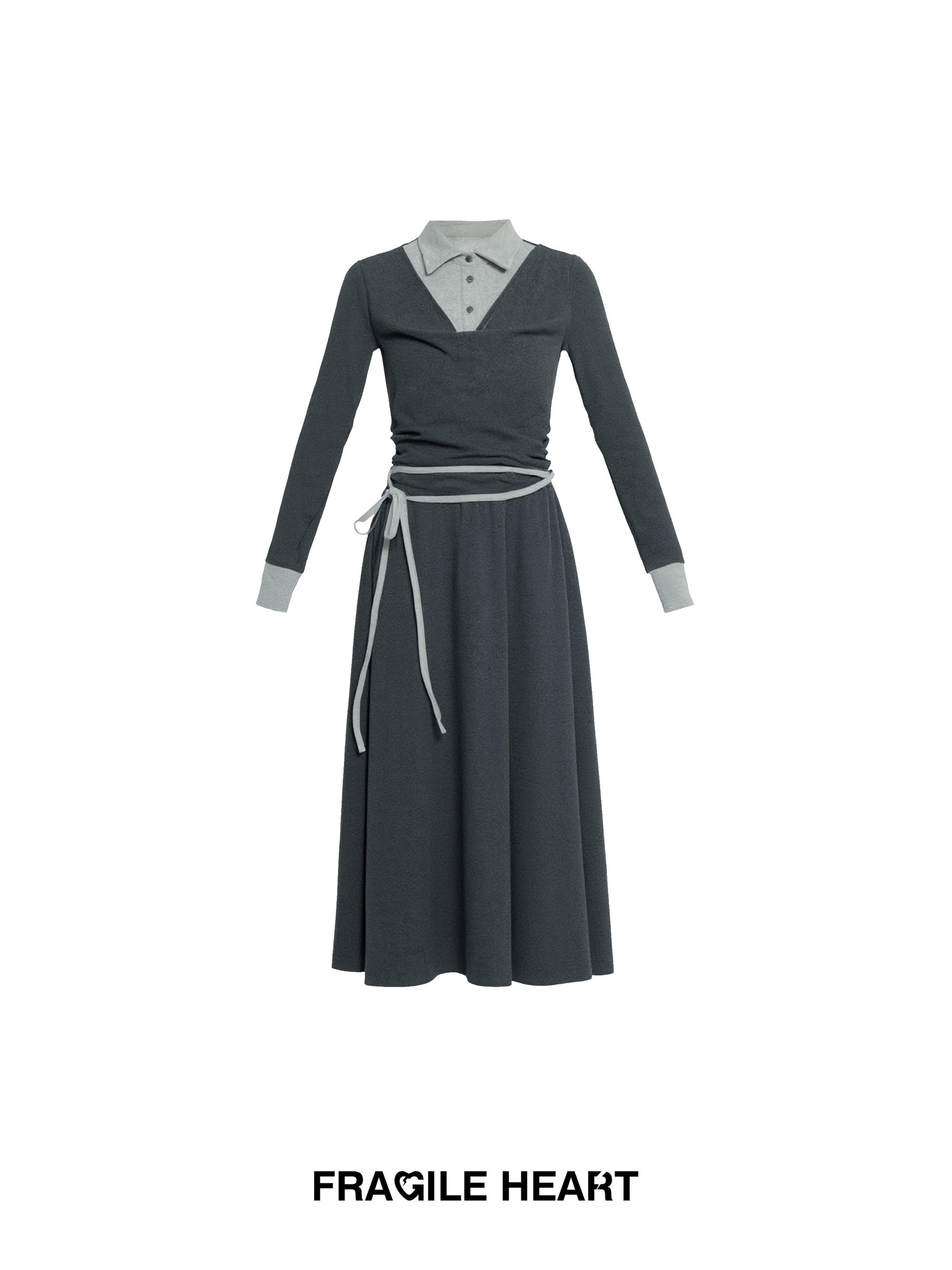Polo Collar Layered-Look Cotton Knit Dress
