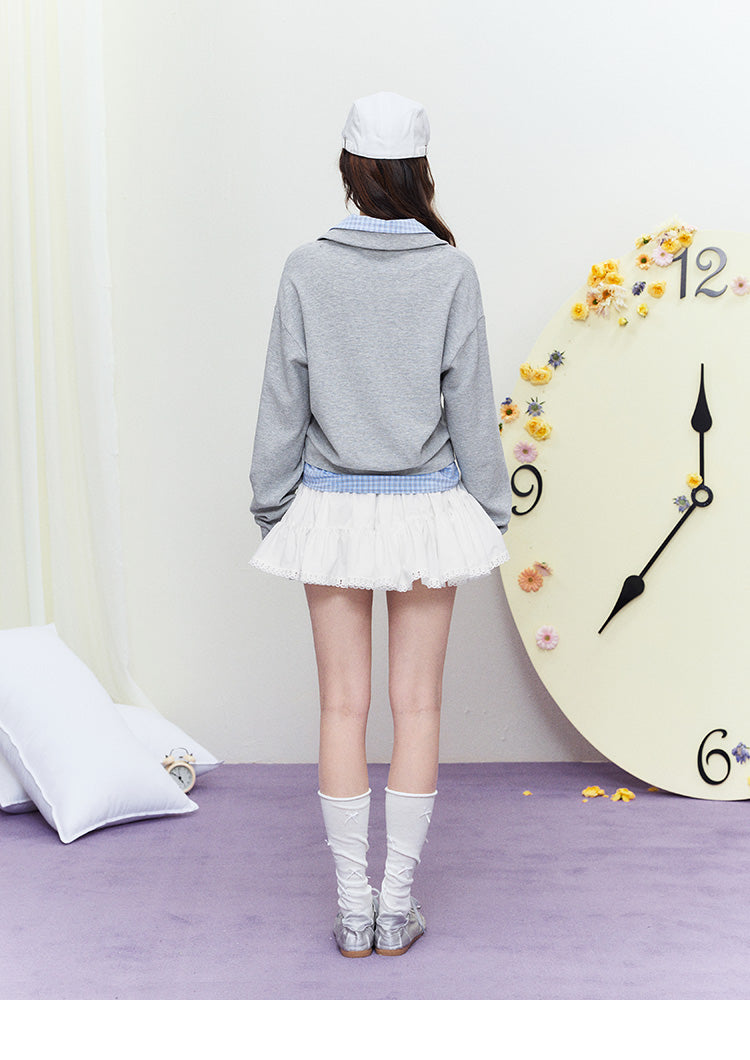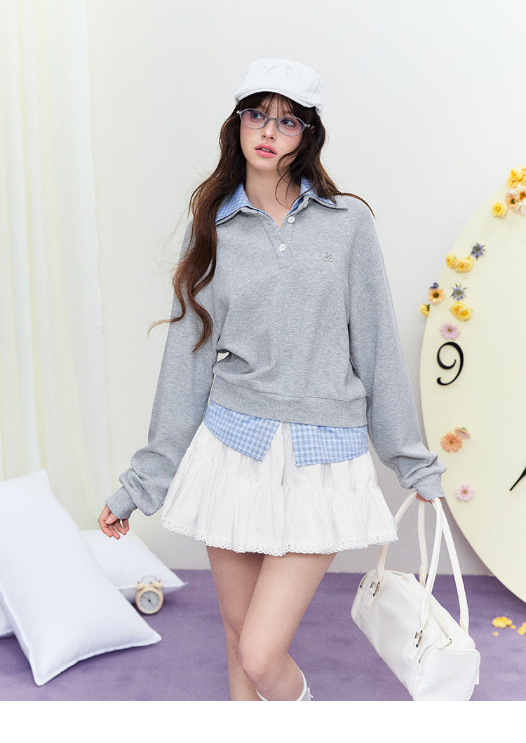 Polo Pullover With Faux Check Layers