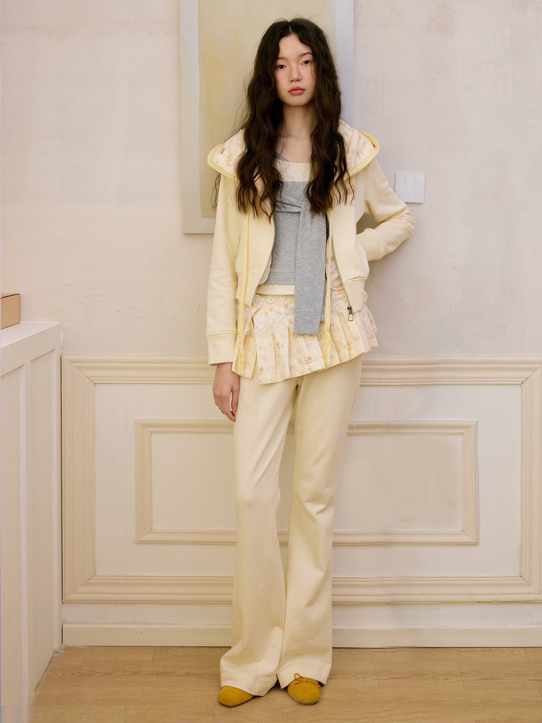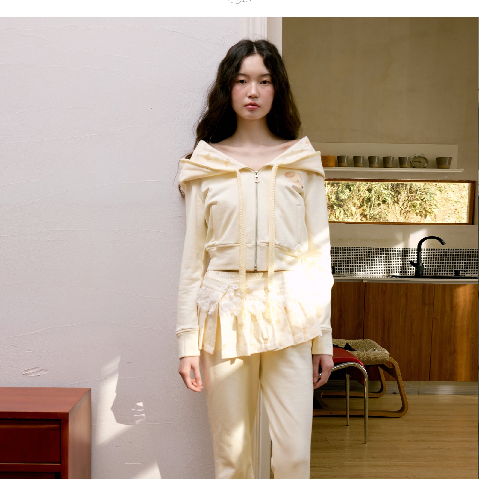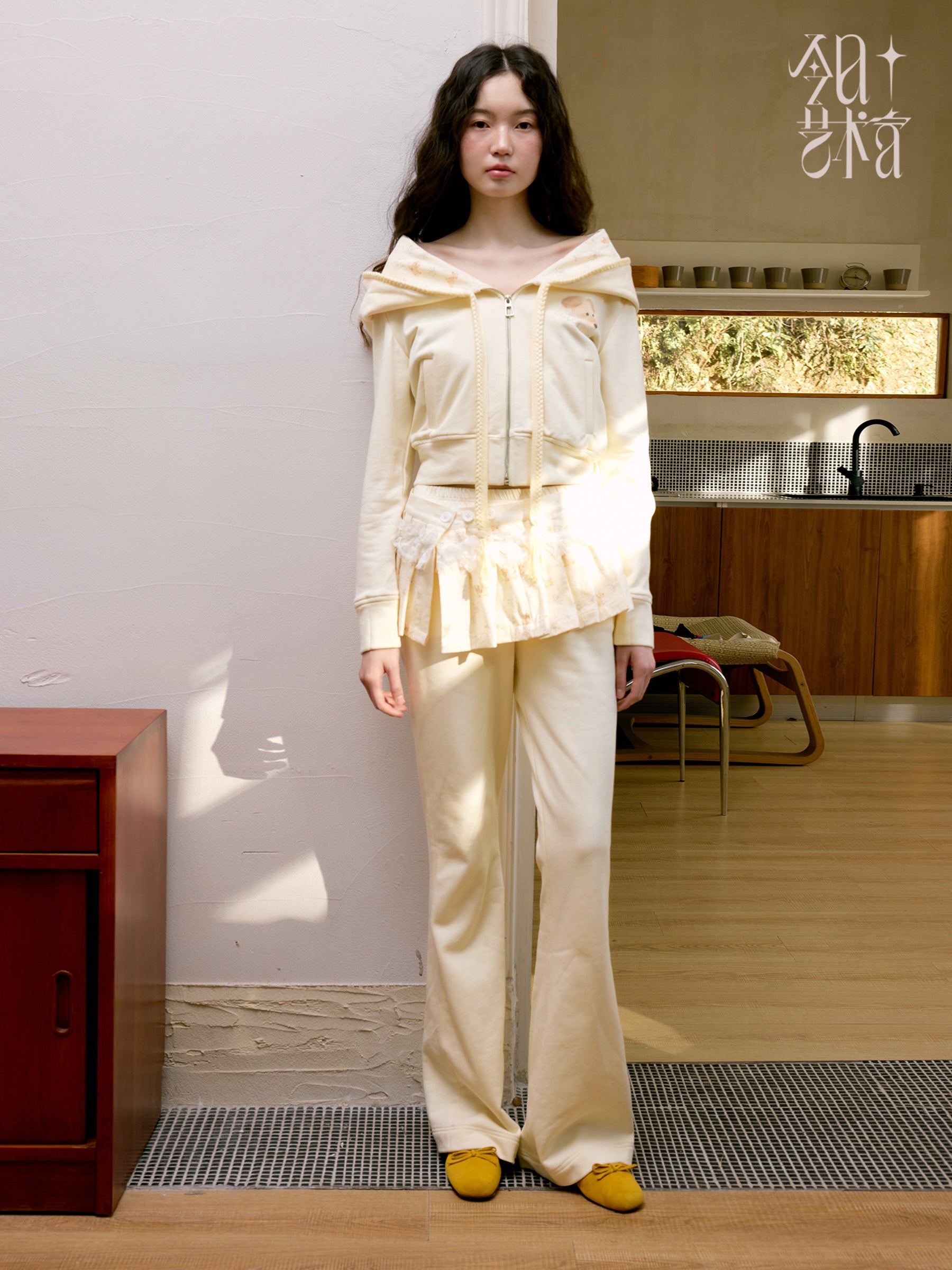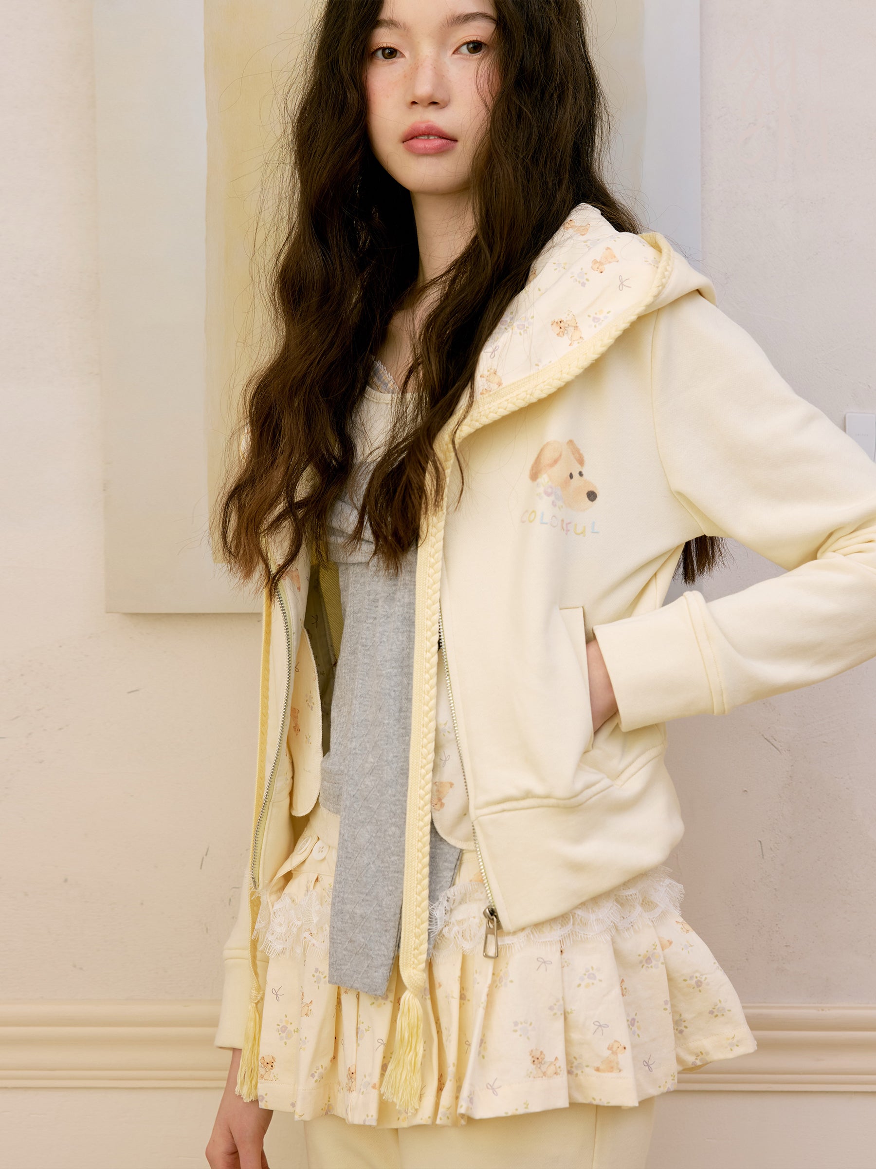 Puppy Print Hoodie & Pants With Removable Skirt Overlay