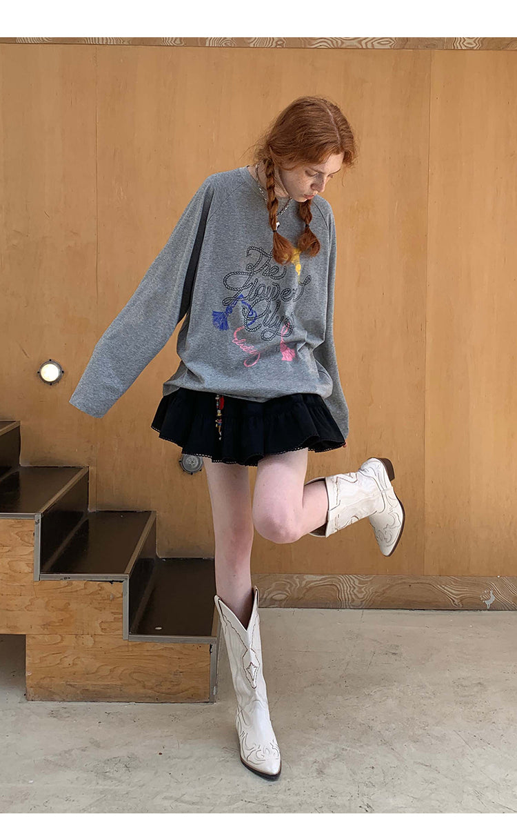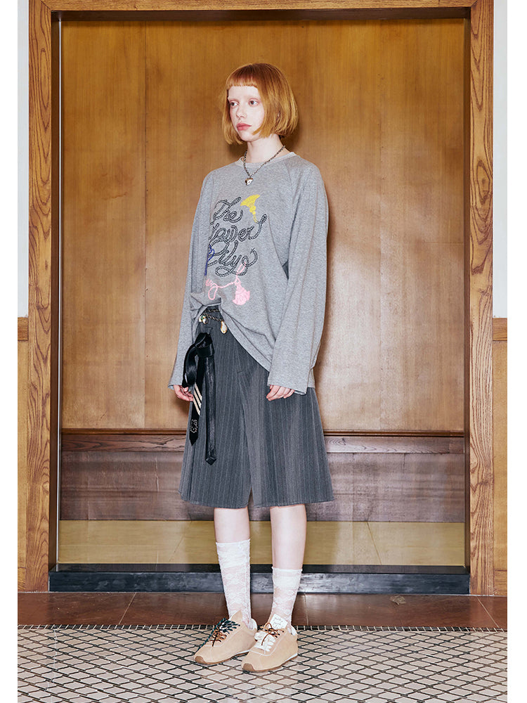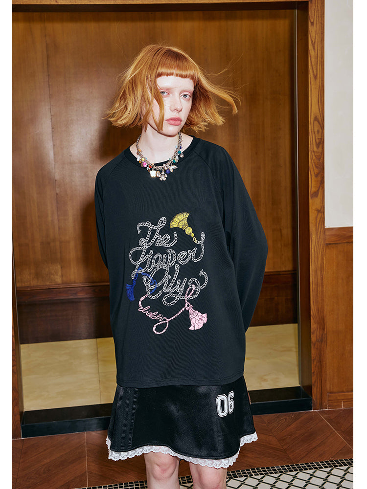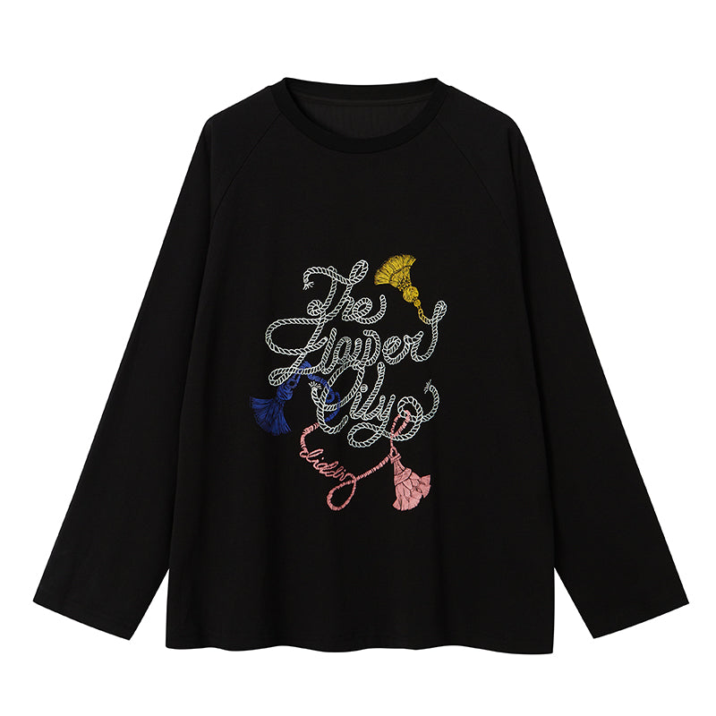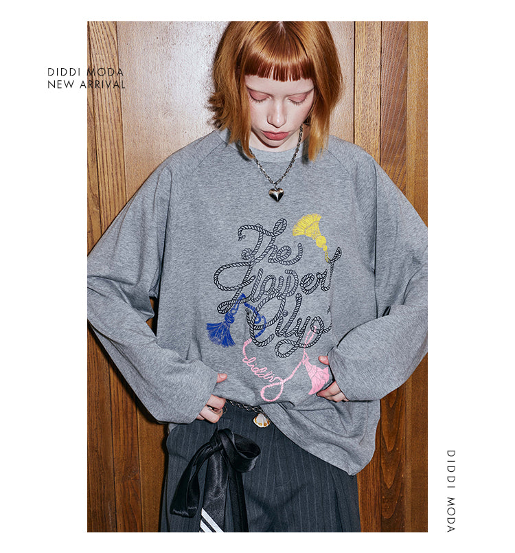 Relax Fit Hemp Rope Letter Print Raglan T-Shirt