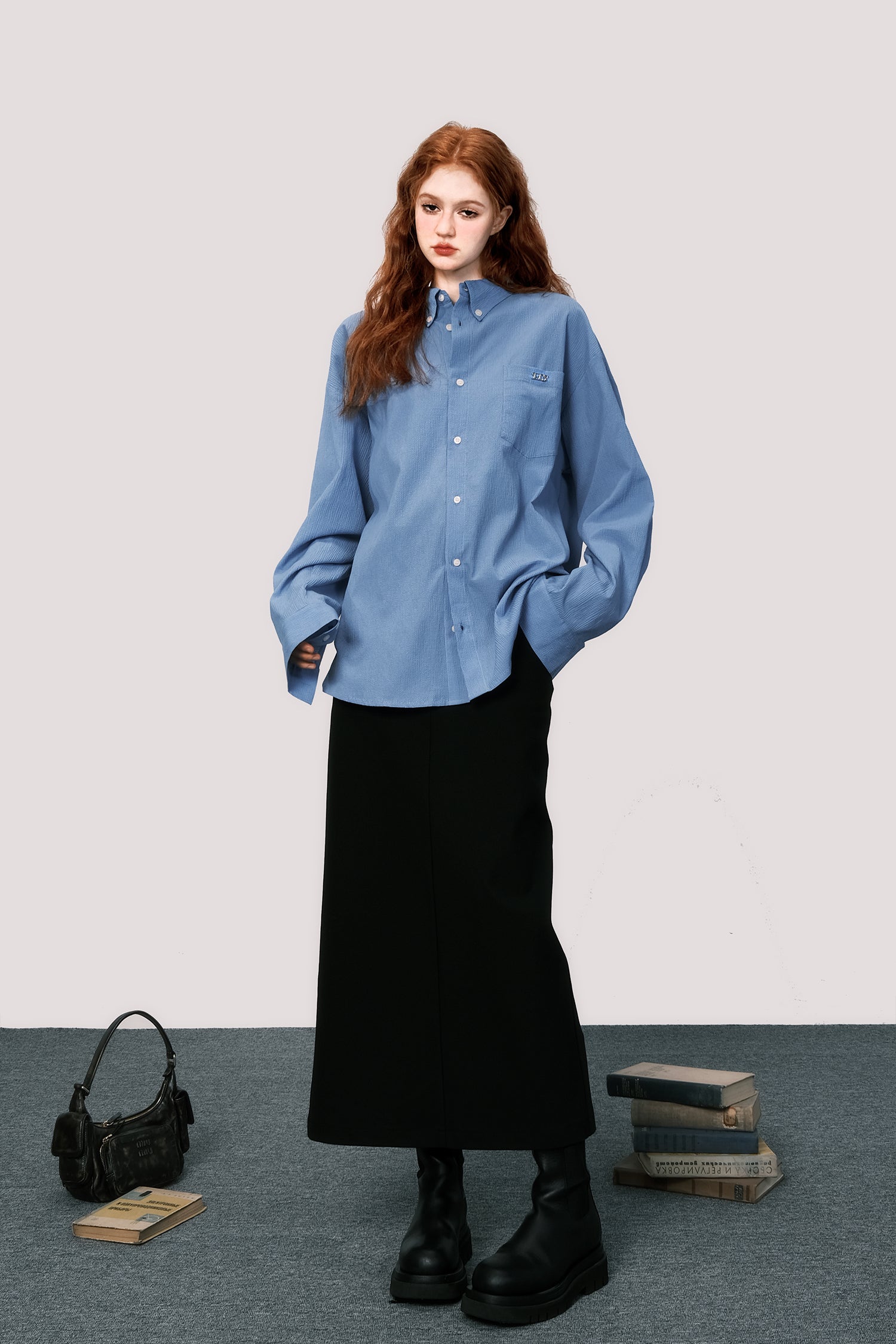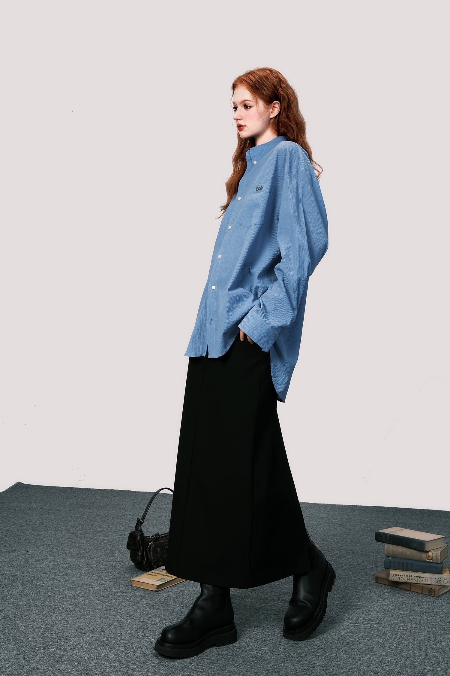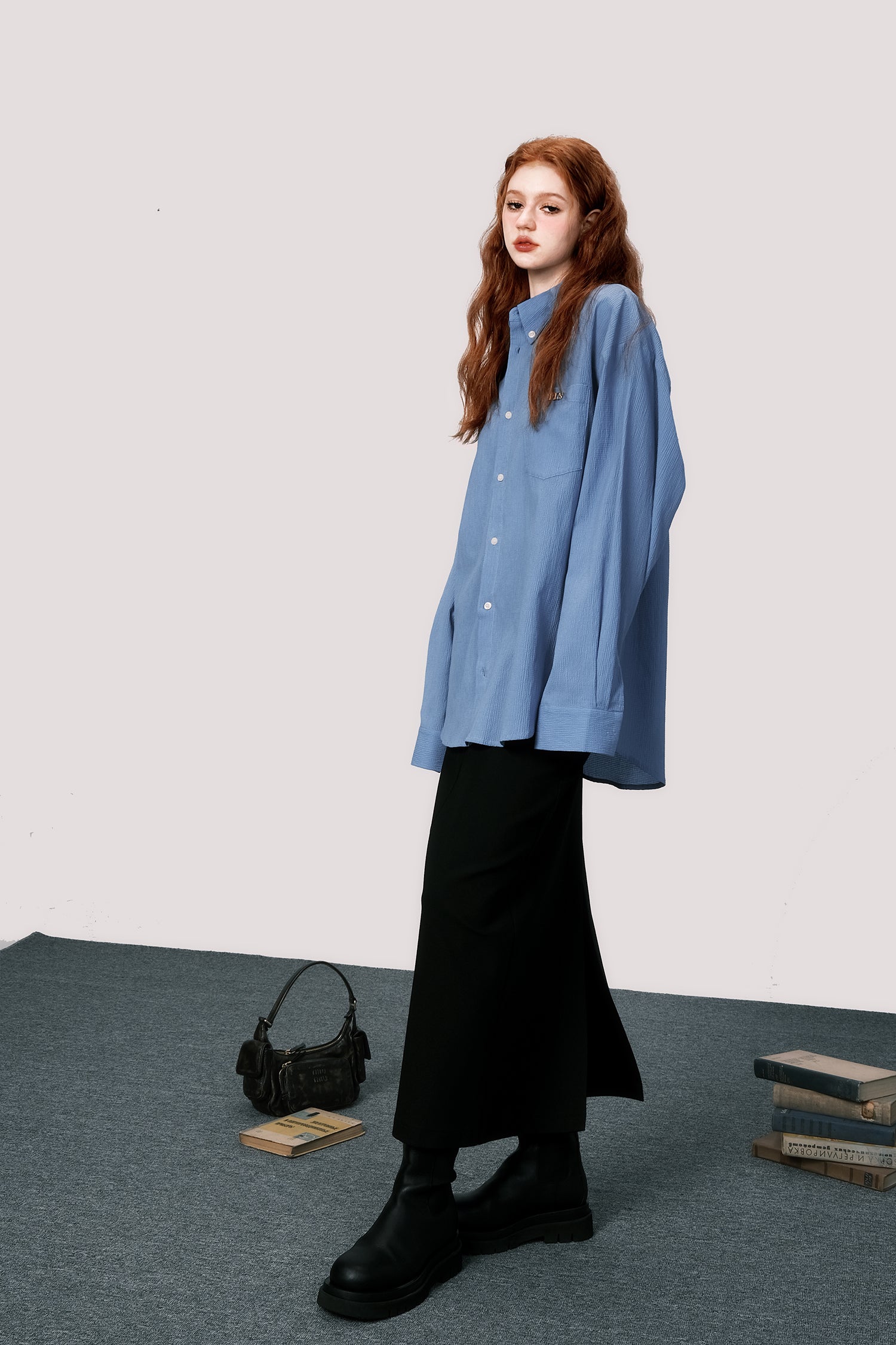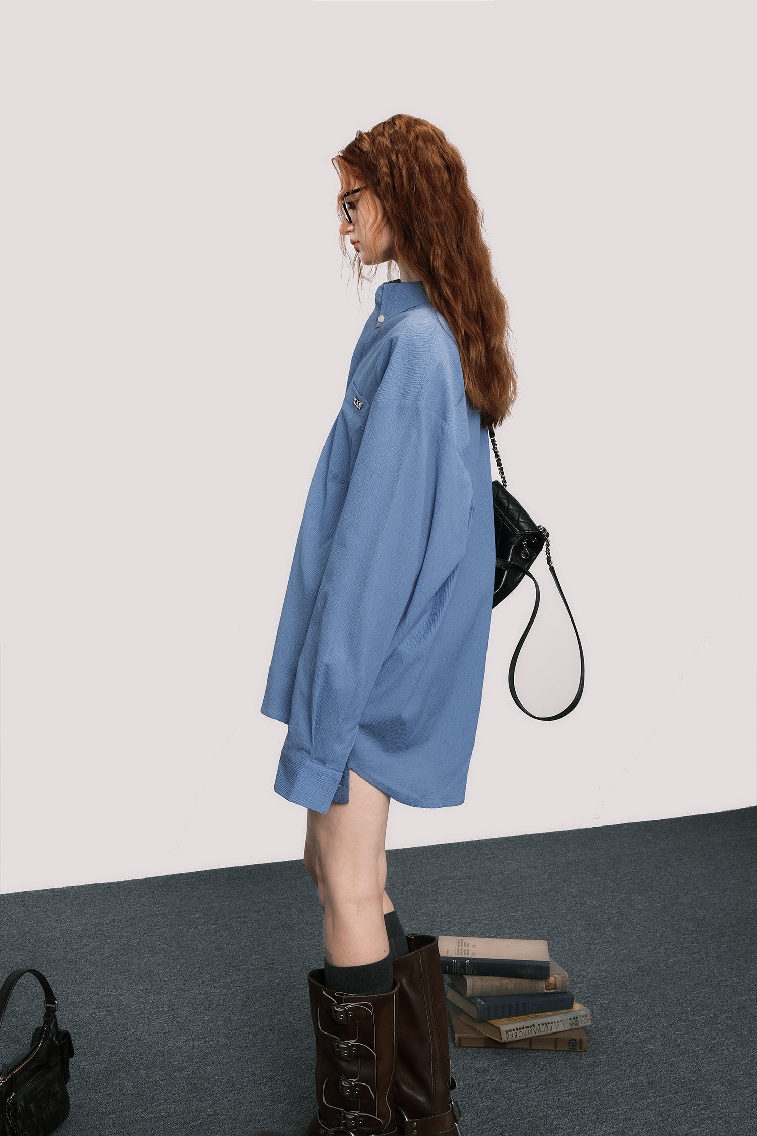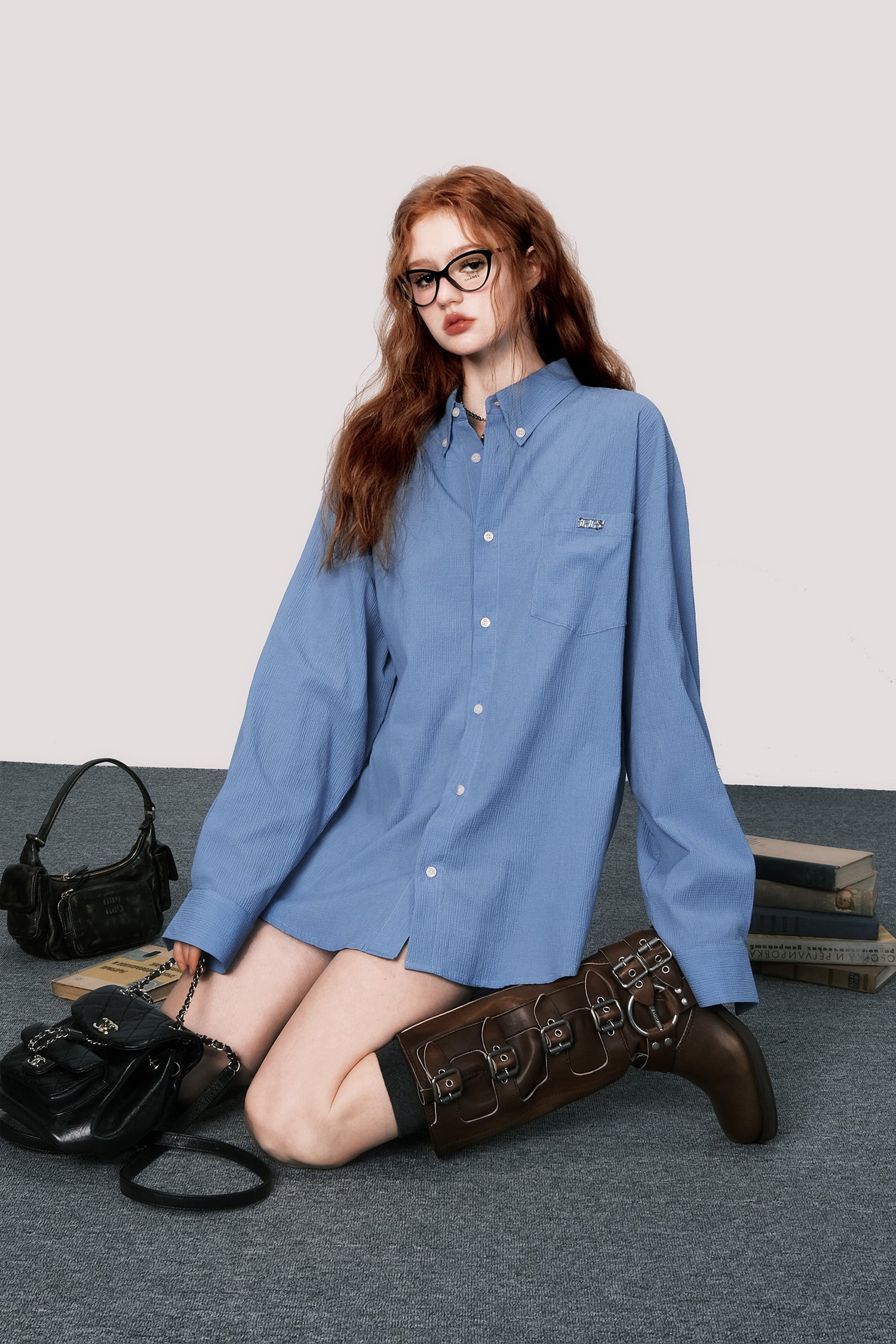 Relaxed Fit Crinkled Cotton Boyfriend Shirt