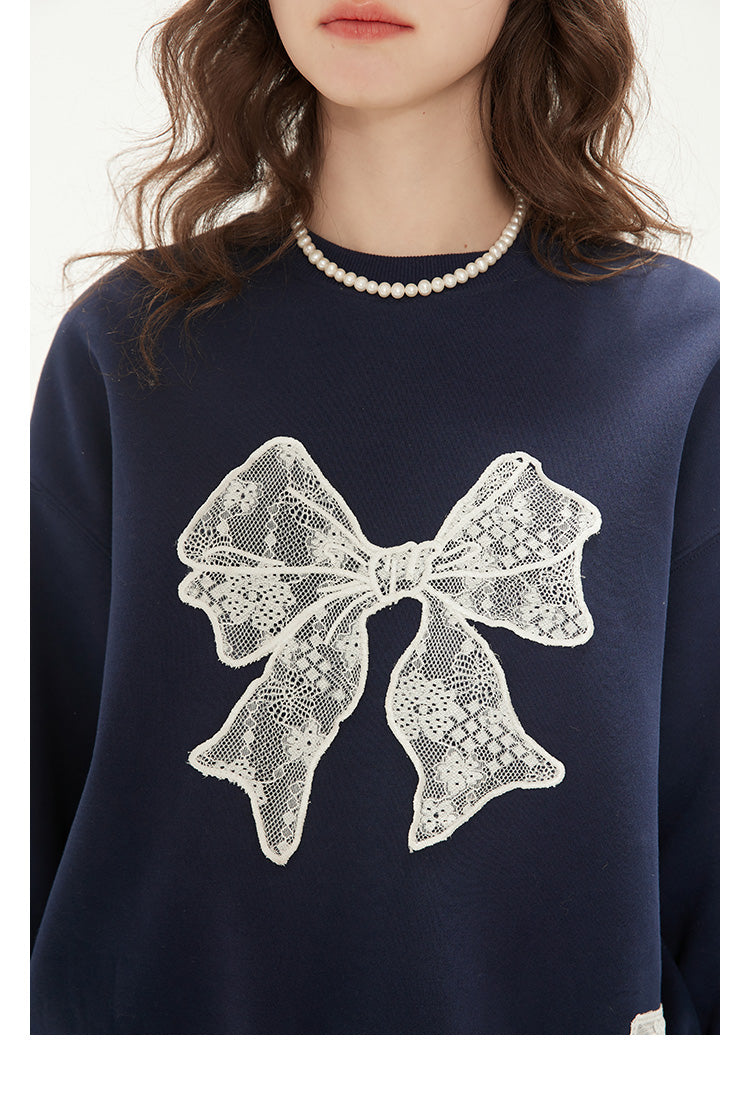 Relaxed Fit Lace Bow Sweatshirt