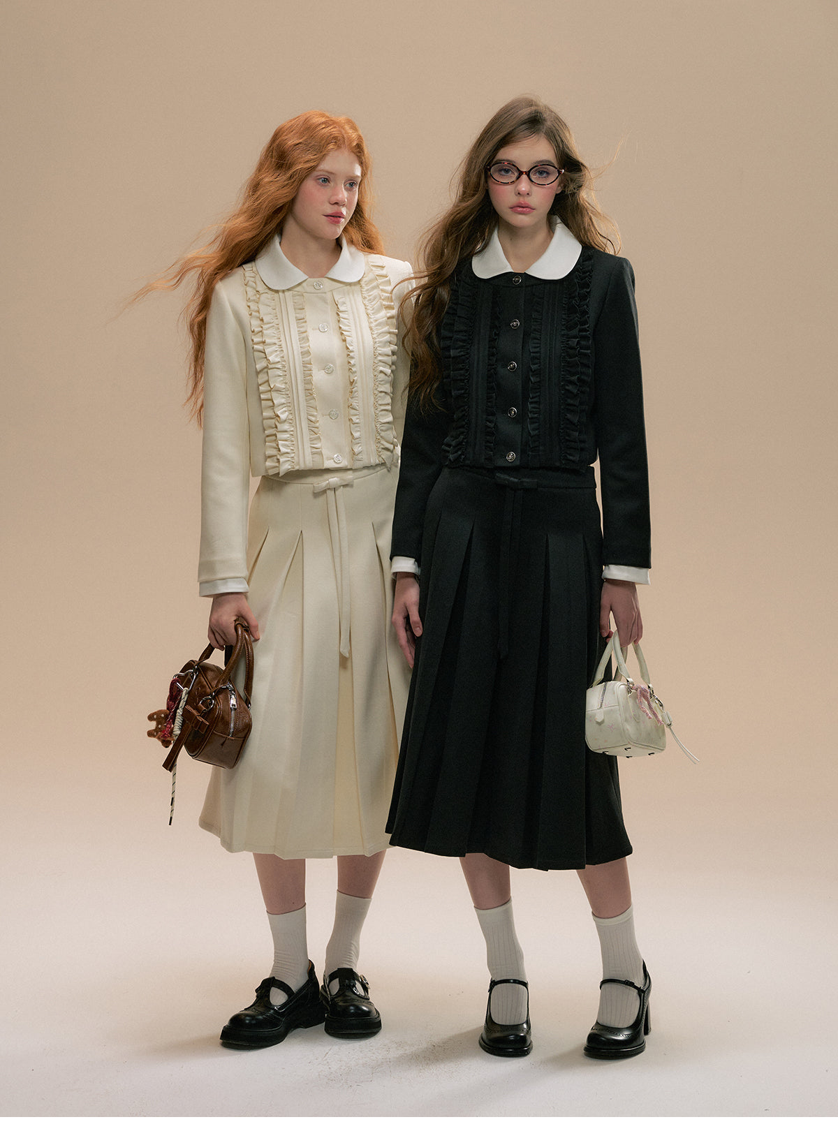 Ruffled Shirt Jacket And Matching Pleated Skirt