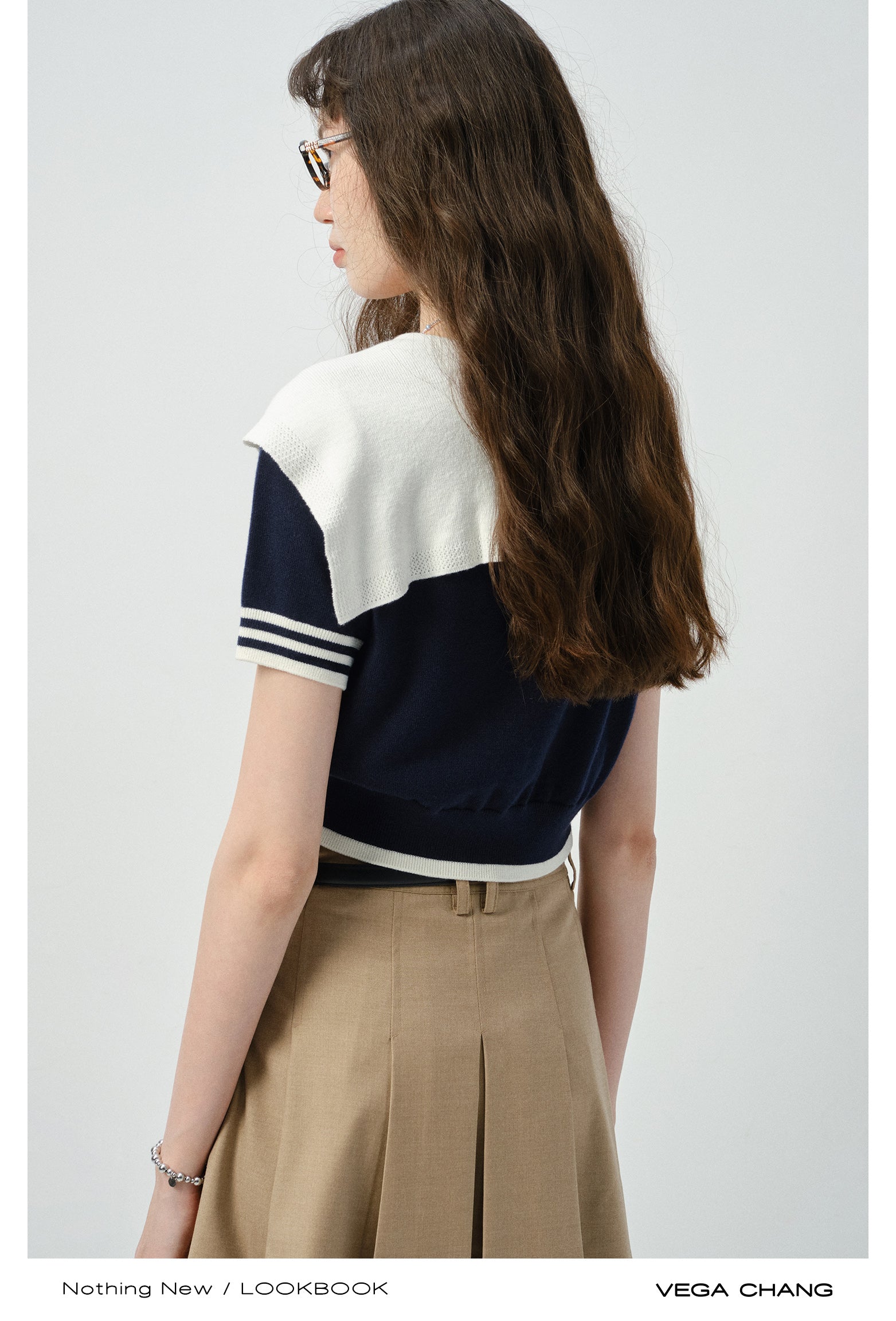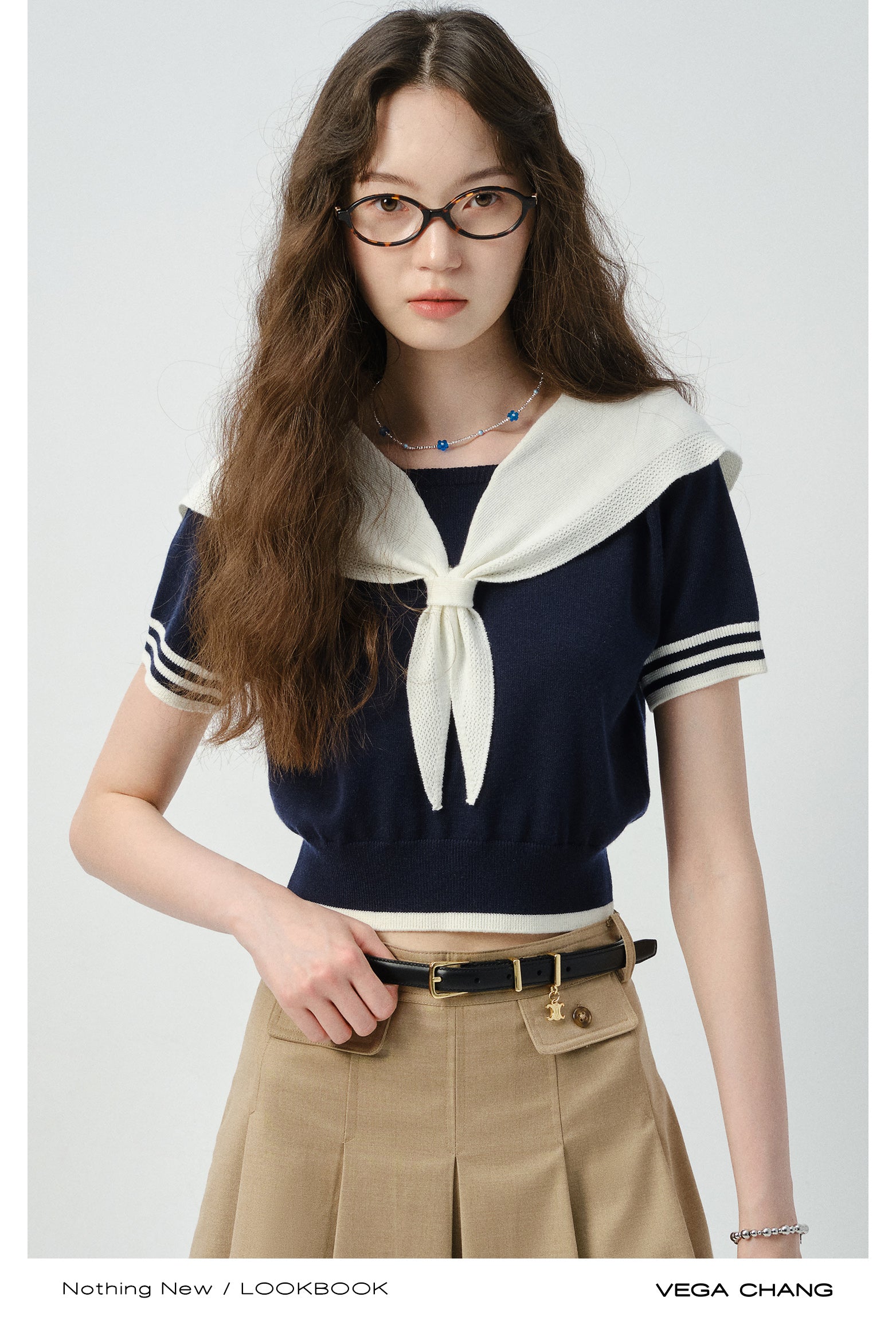 Sailor Collar Knit Top And Pleated Mini Cargo Skirt