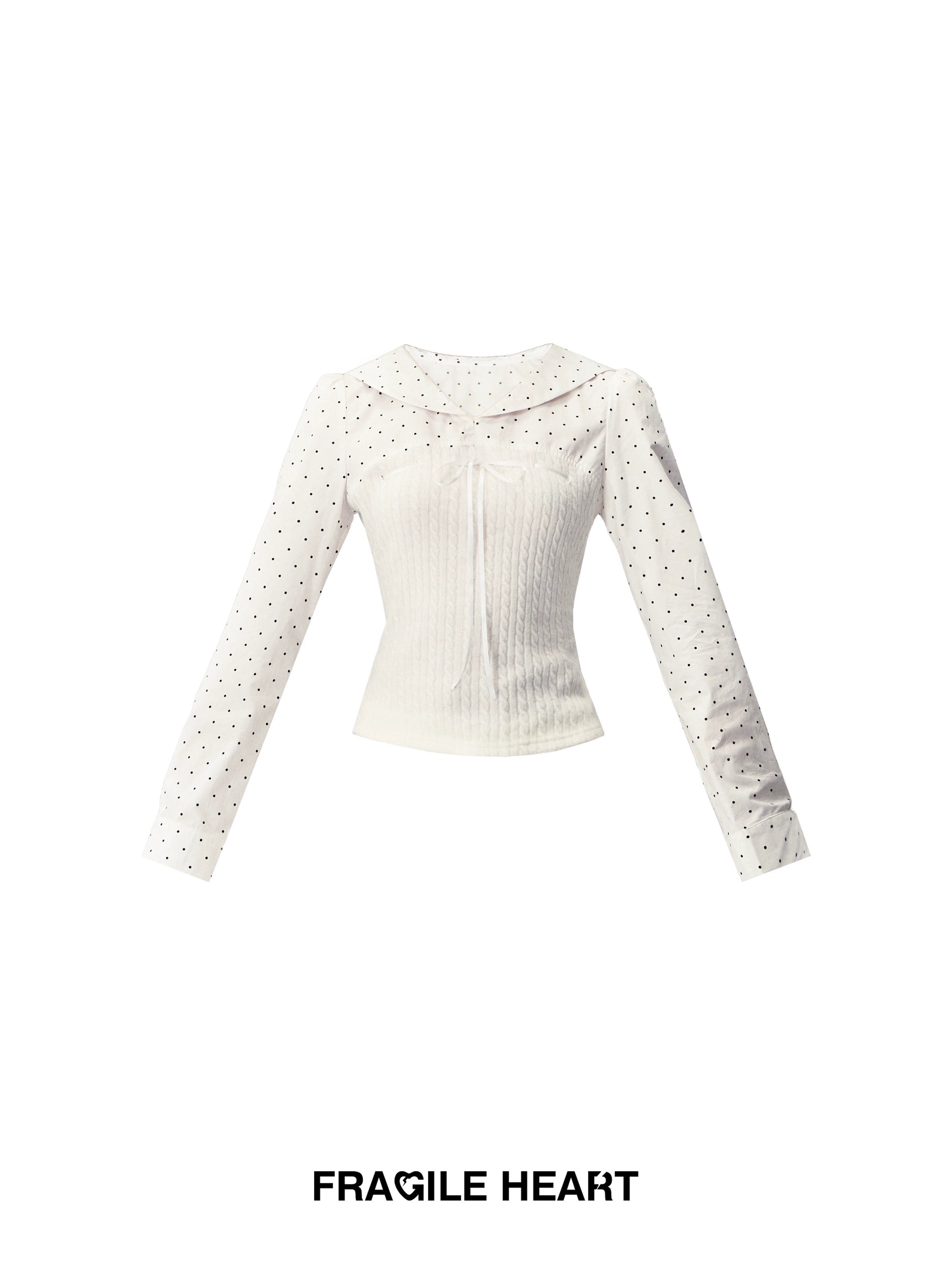 Sailor-Collar Polka Dot Knit-Panel Blouse