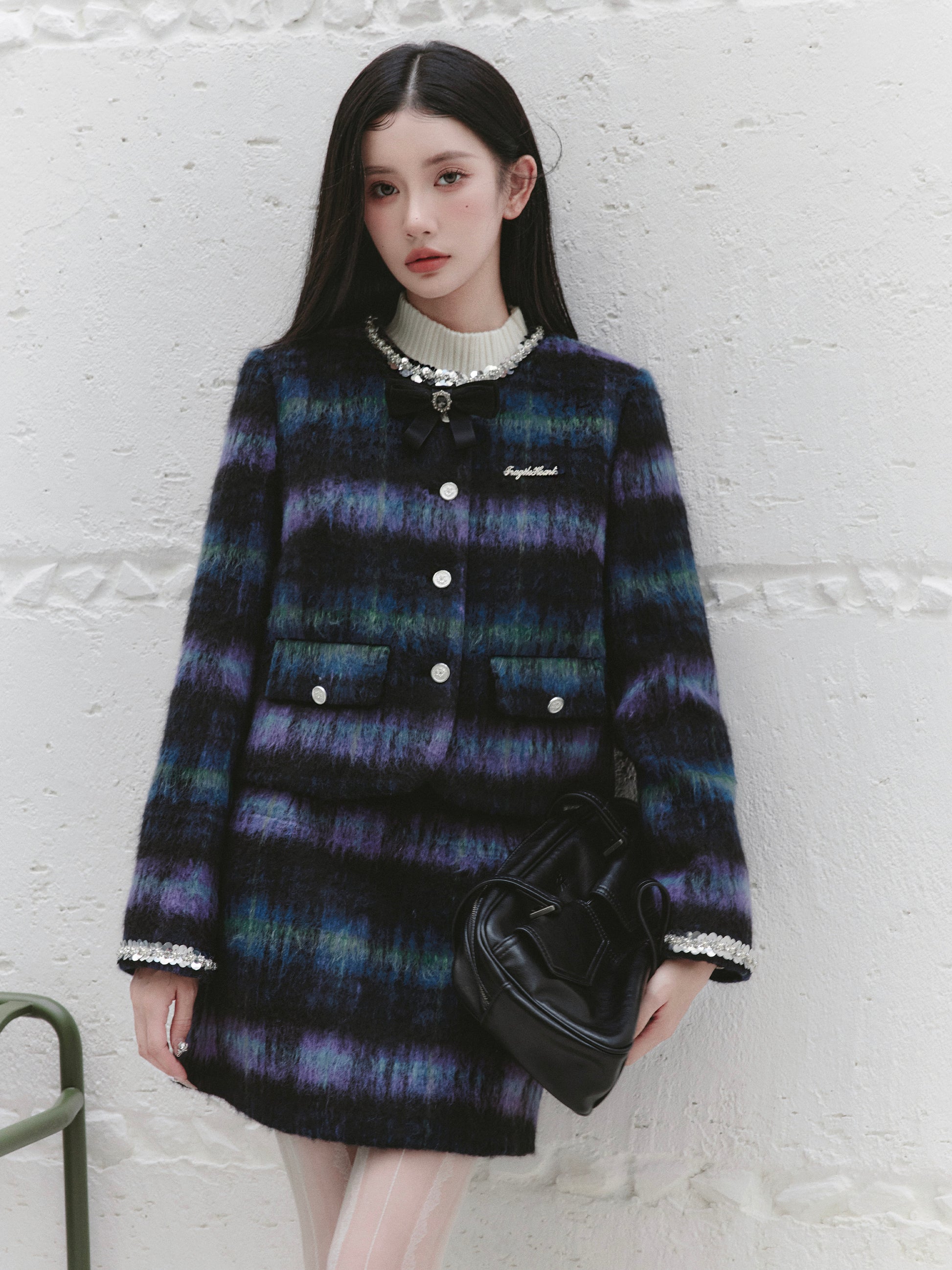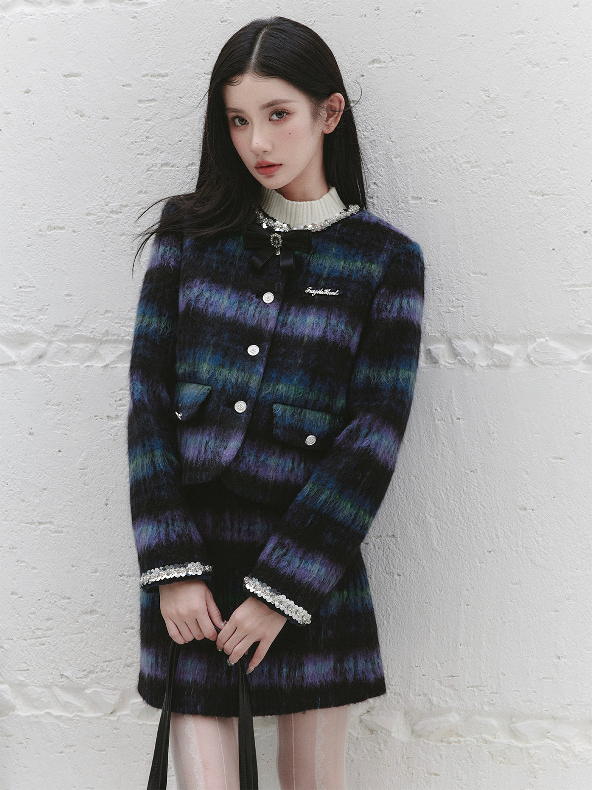 Sequin Detailed Wool Blend Jacket And Skirt Suit