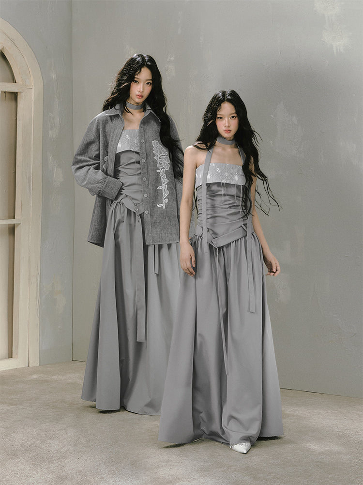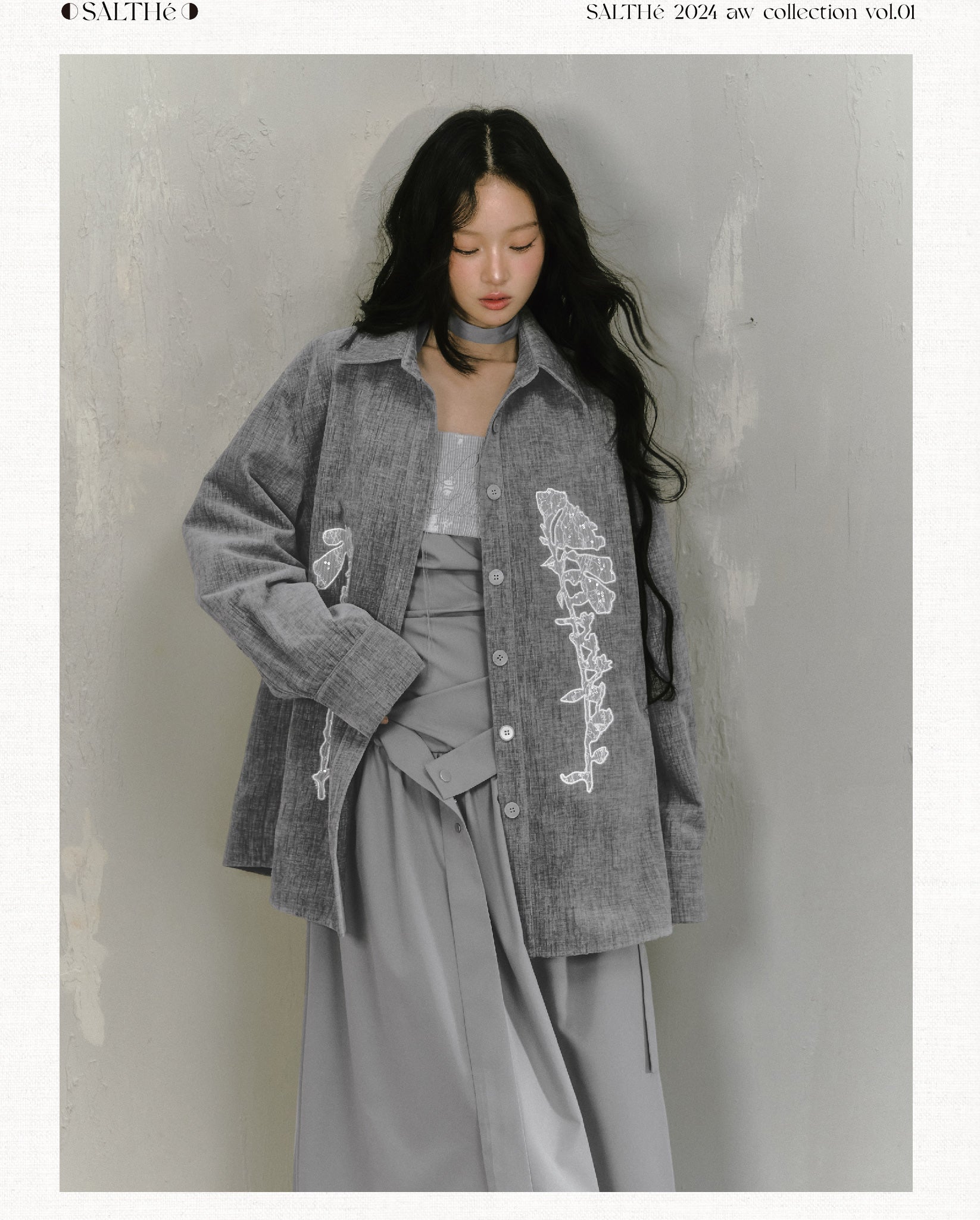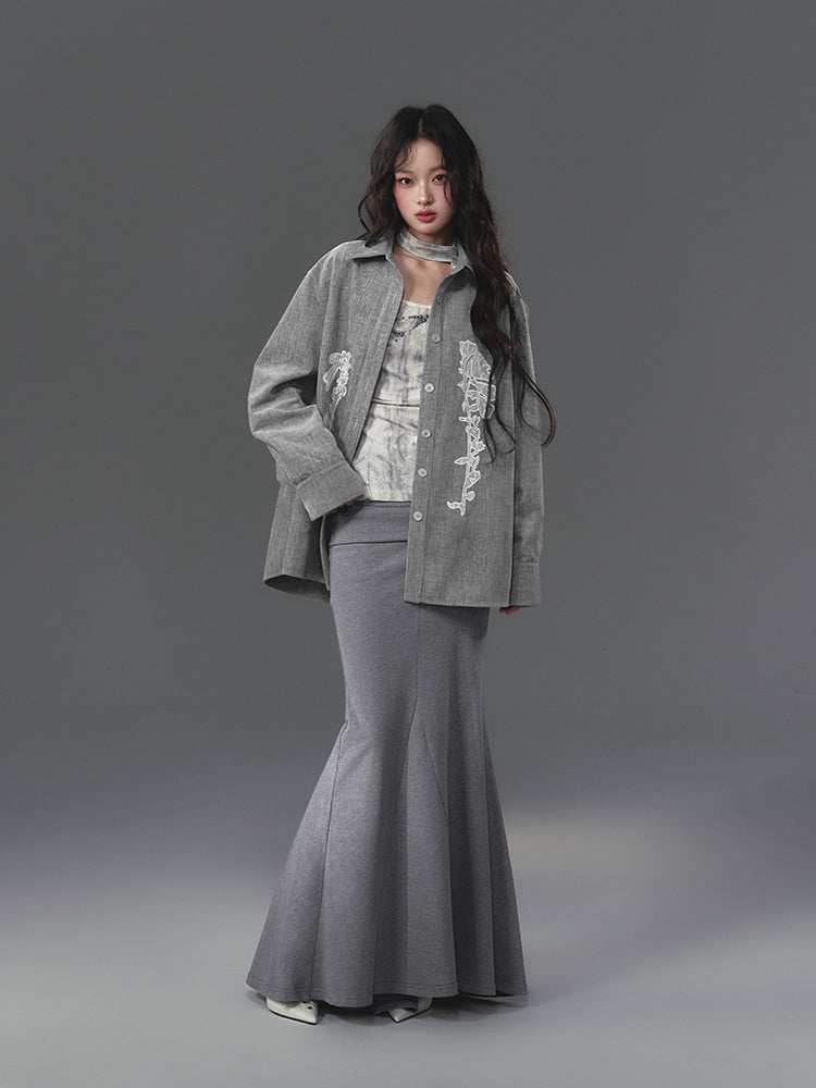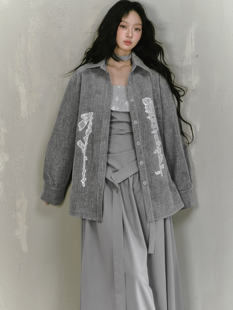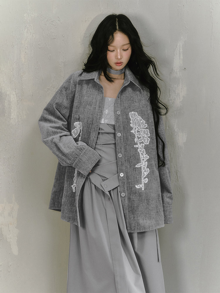 Sequin Lace Applique Oversized Shirt Jacket