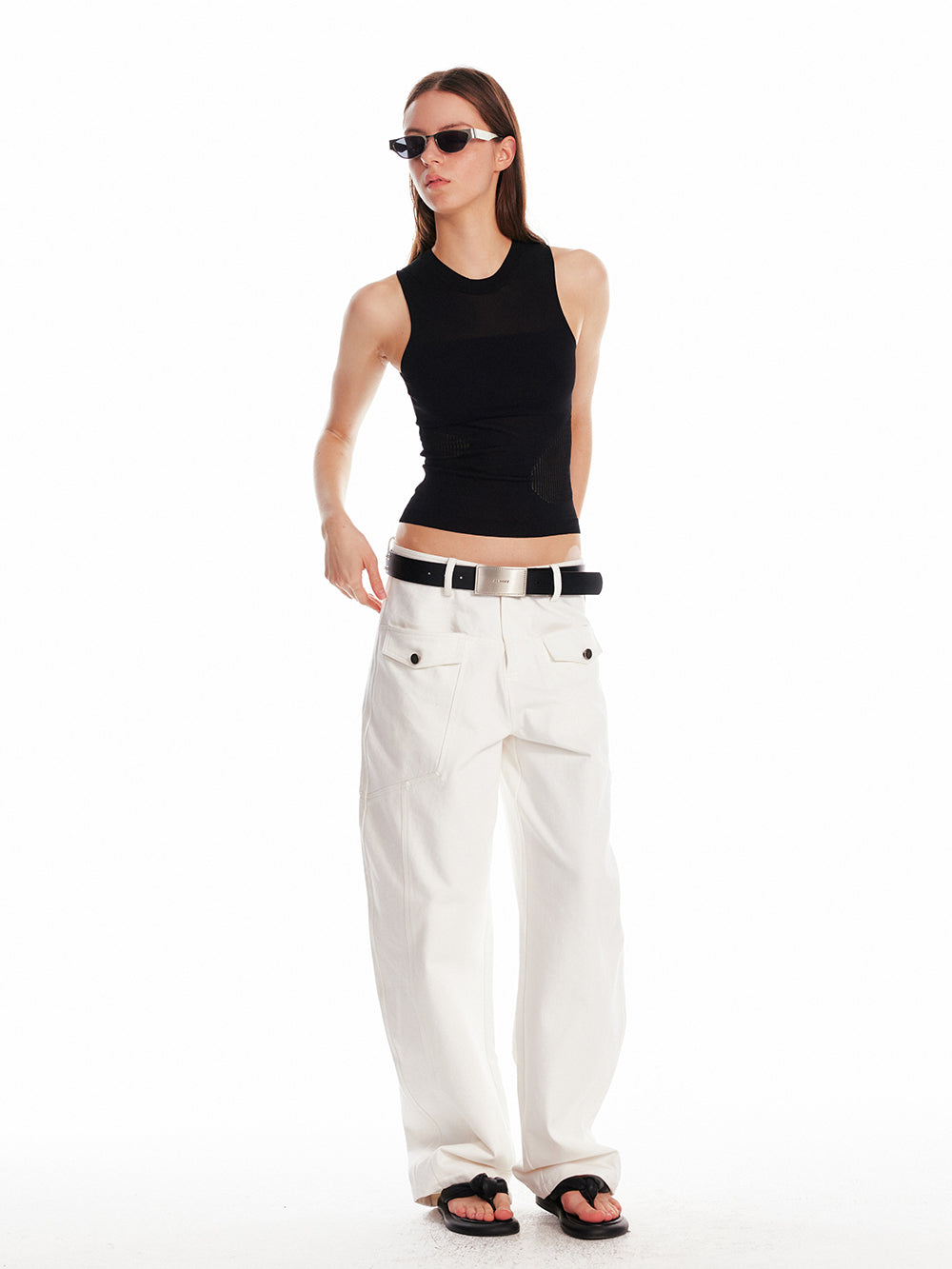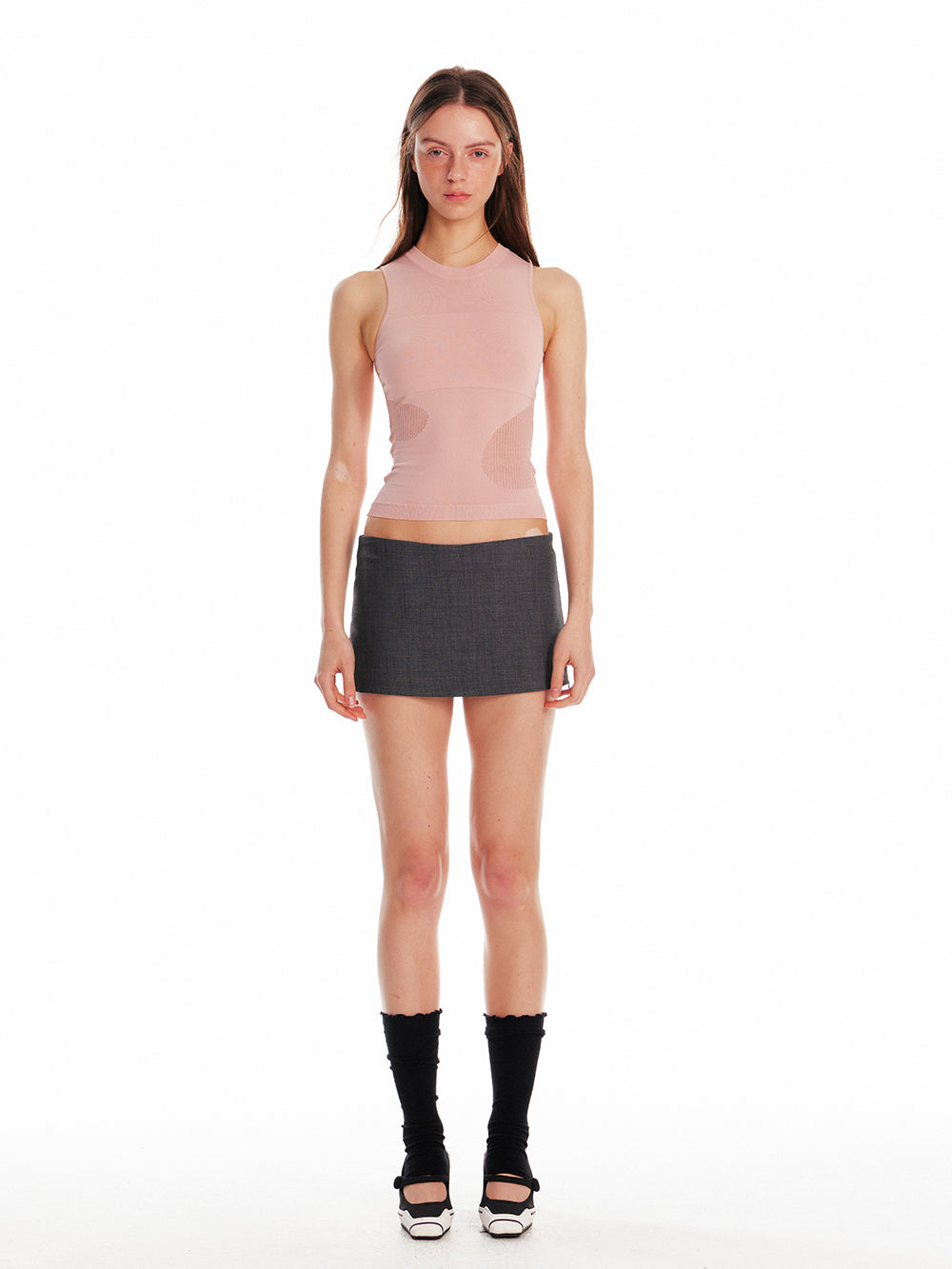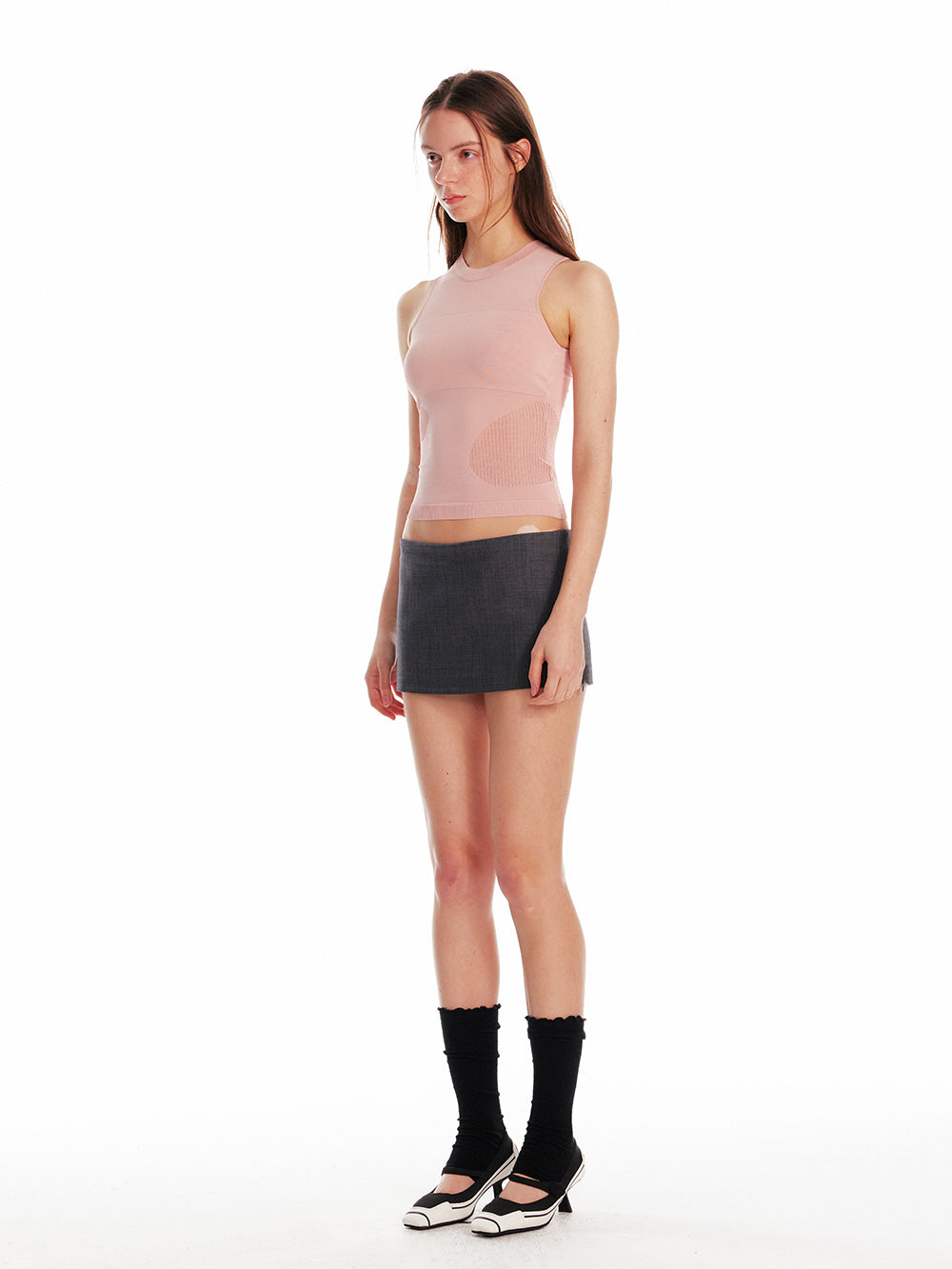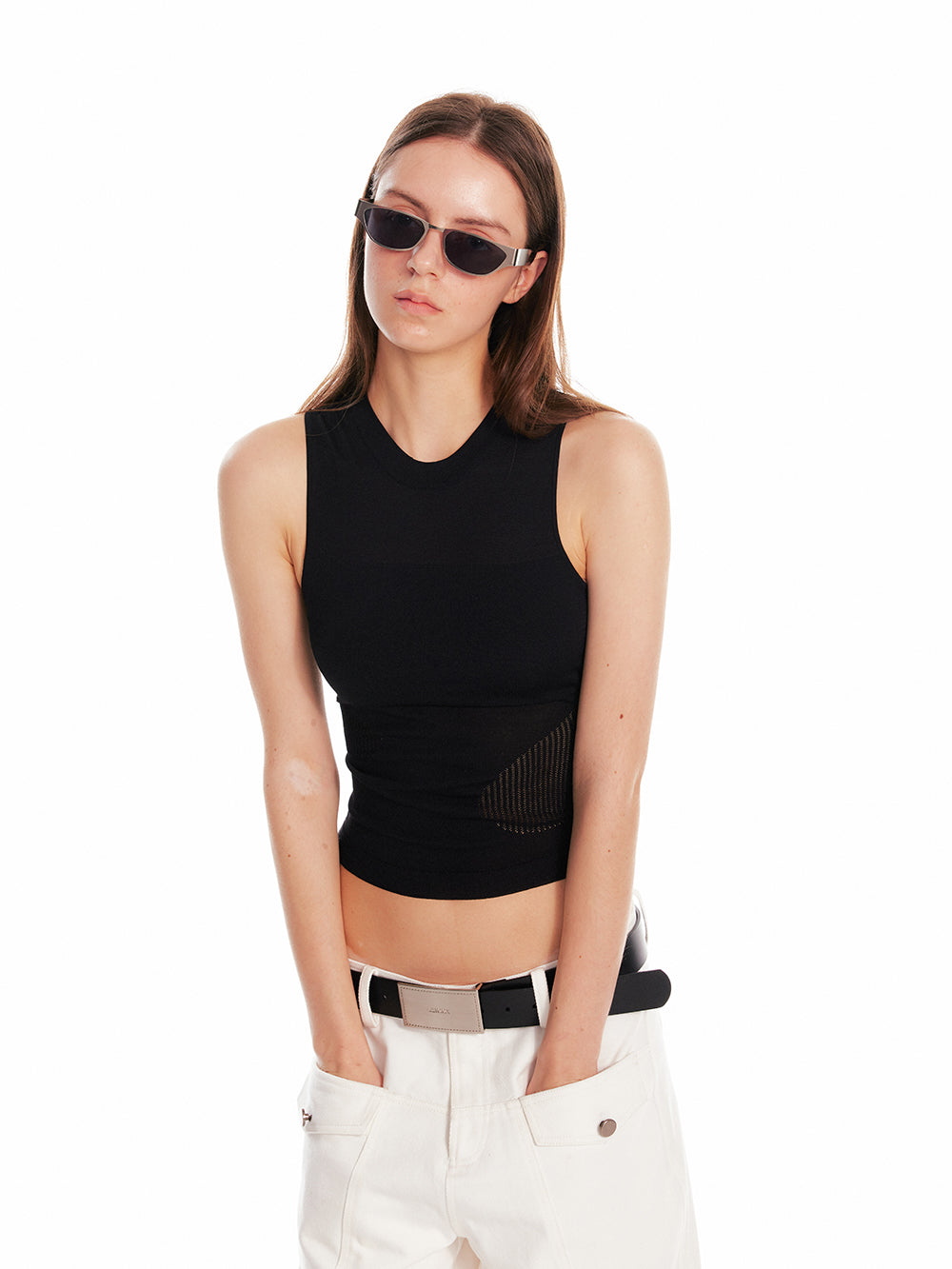 Sleeveless Elastic Top With Mesh Detail