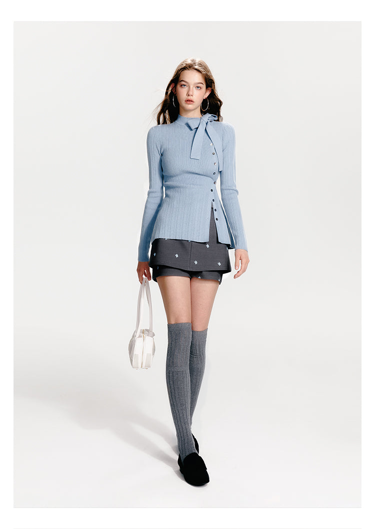 Slim Fit Asymmetrical Knit Top With Tie Neck