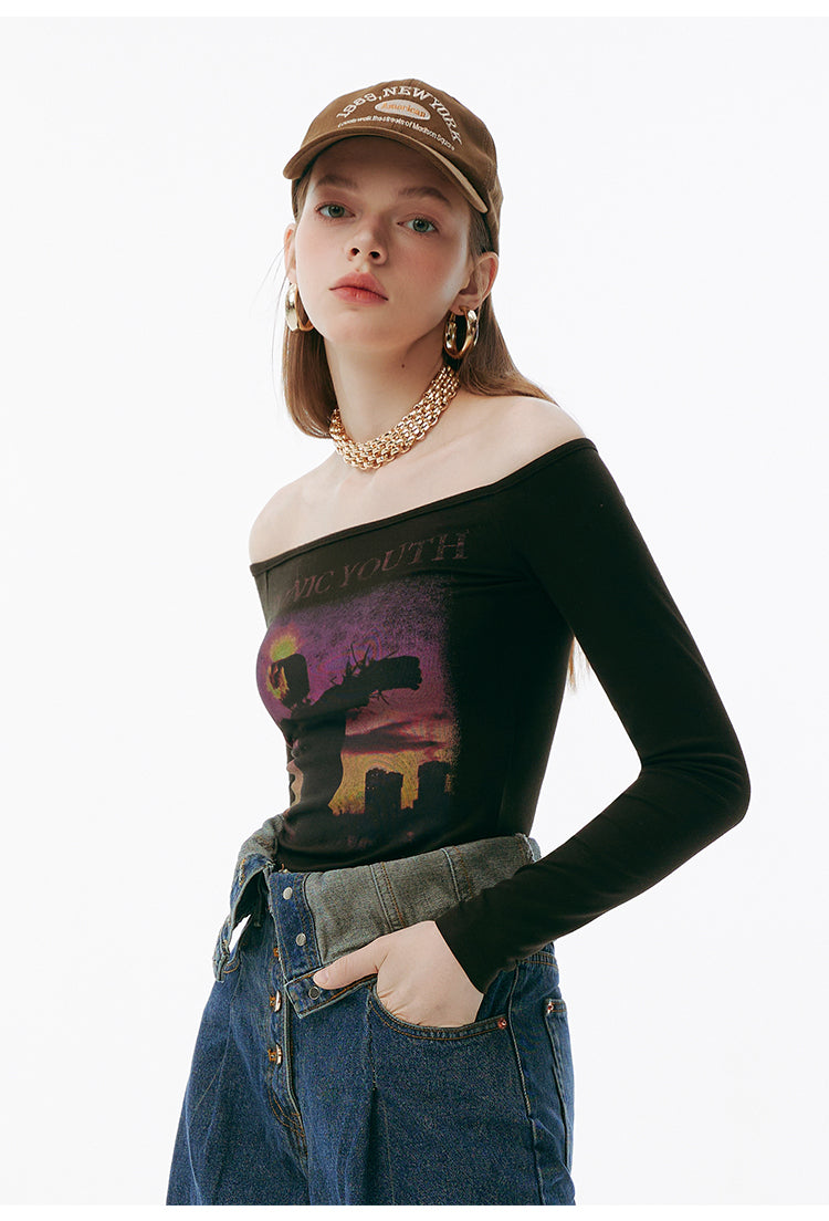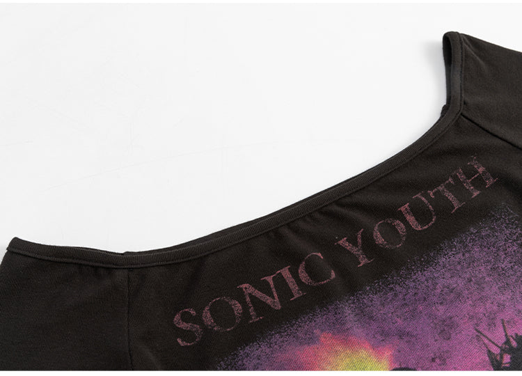 Sonic Youth Off-Shoulder Graphic T-Shirt