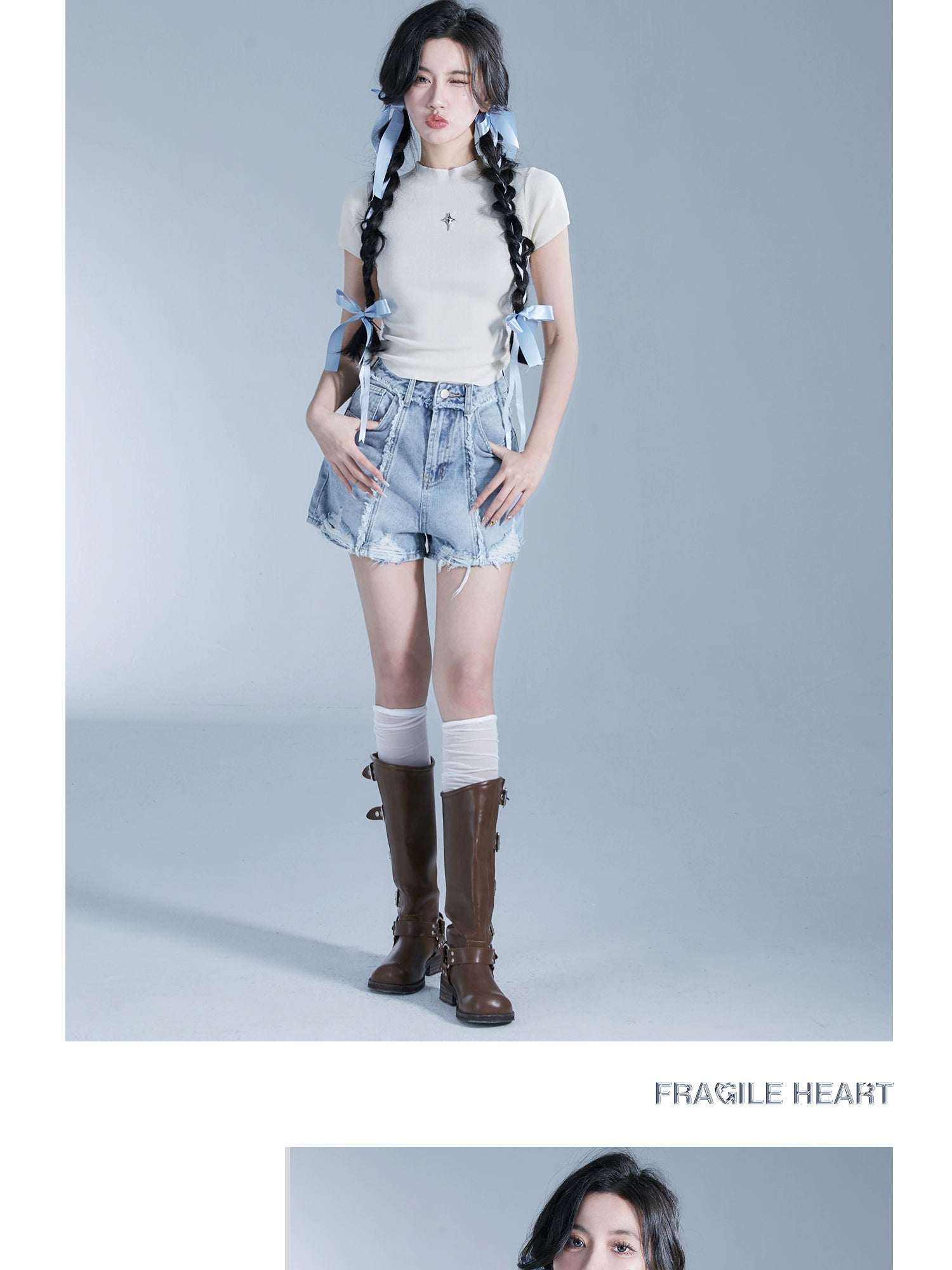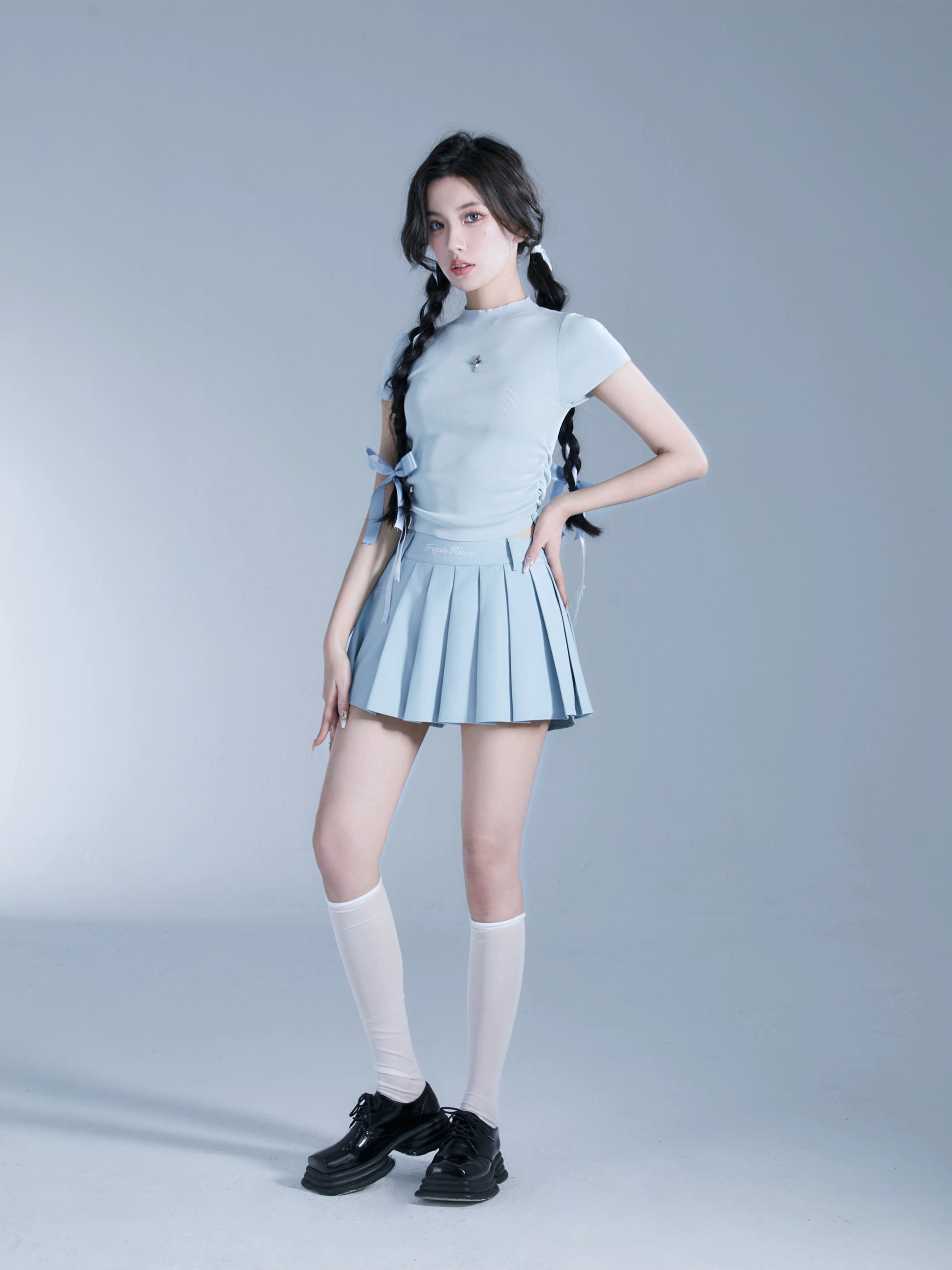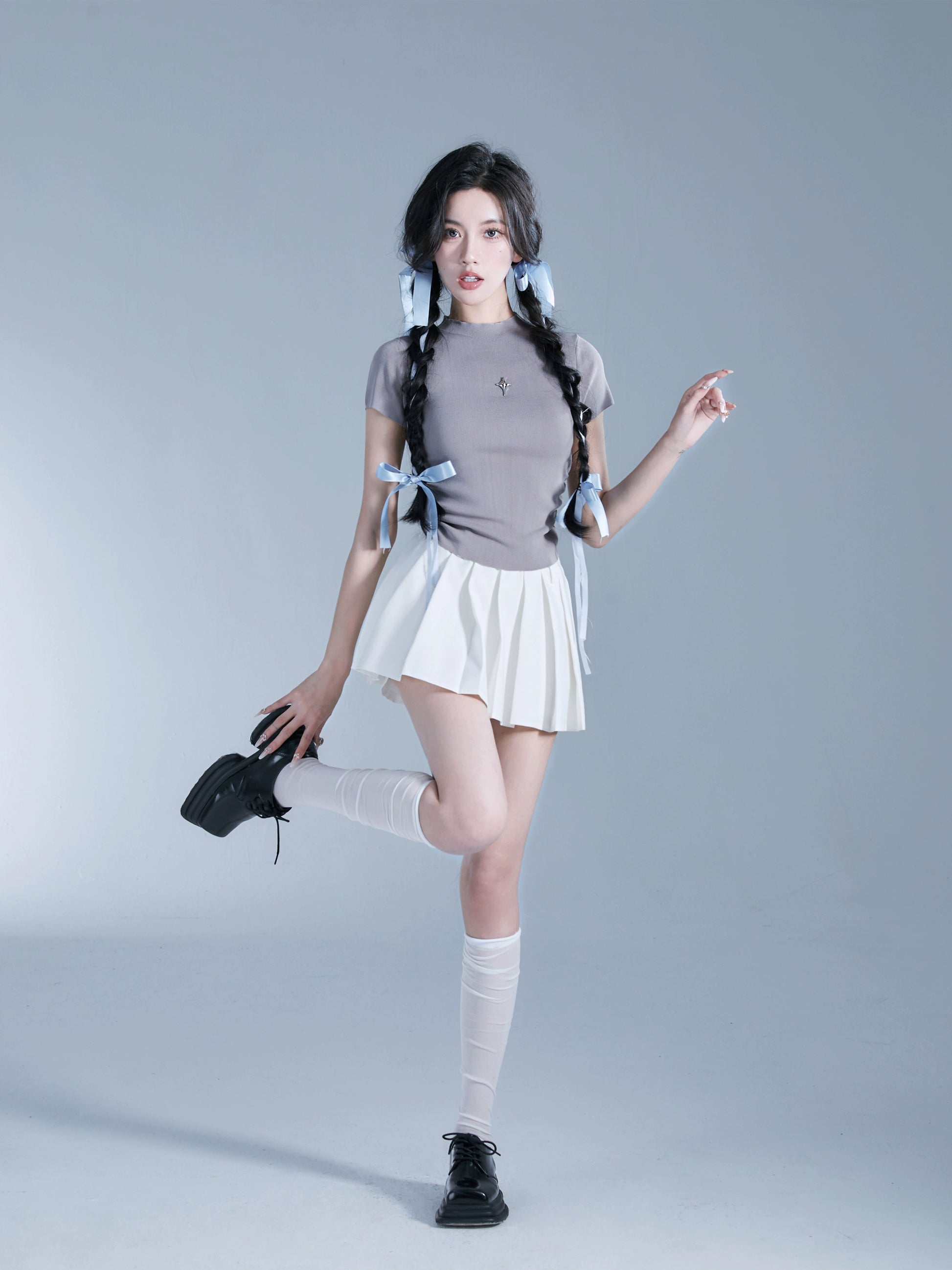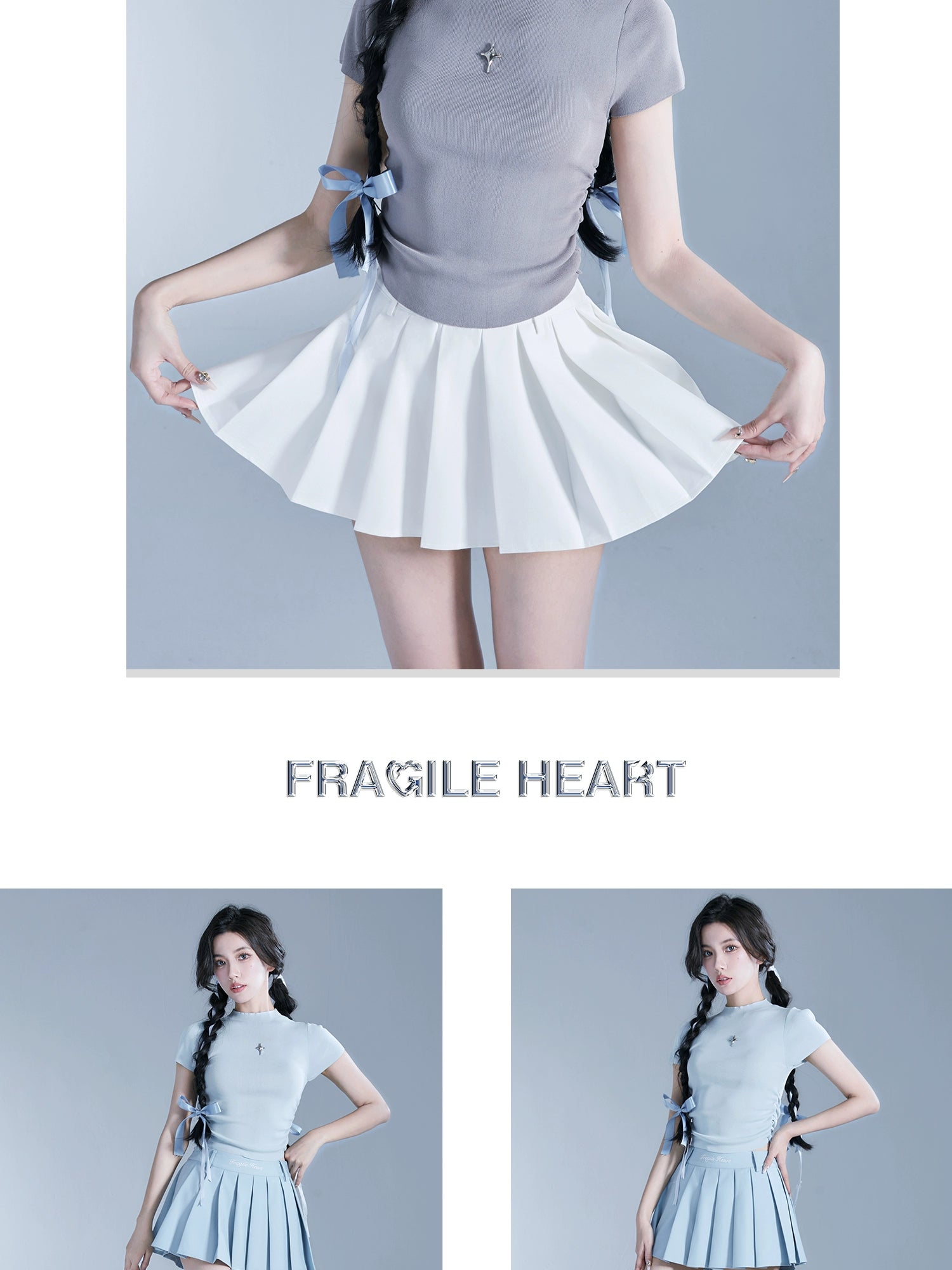 Starburst Charm Knitted Mock Neck Fitted T-Shirt